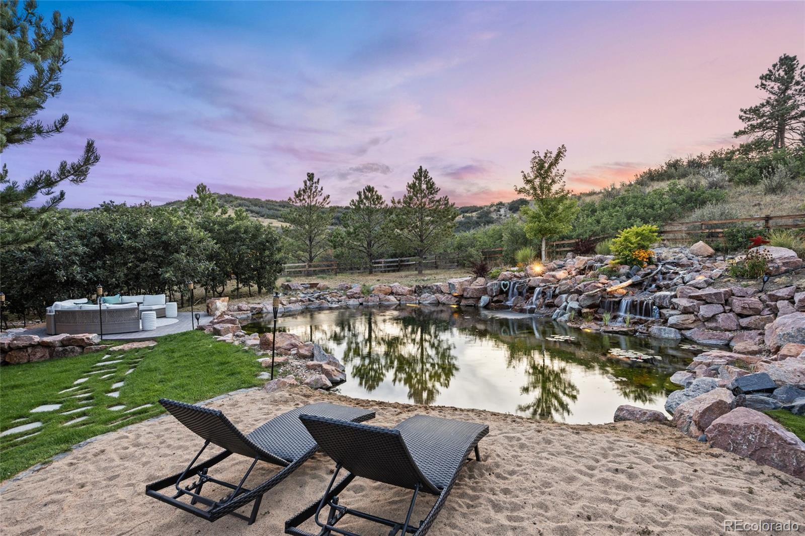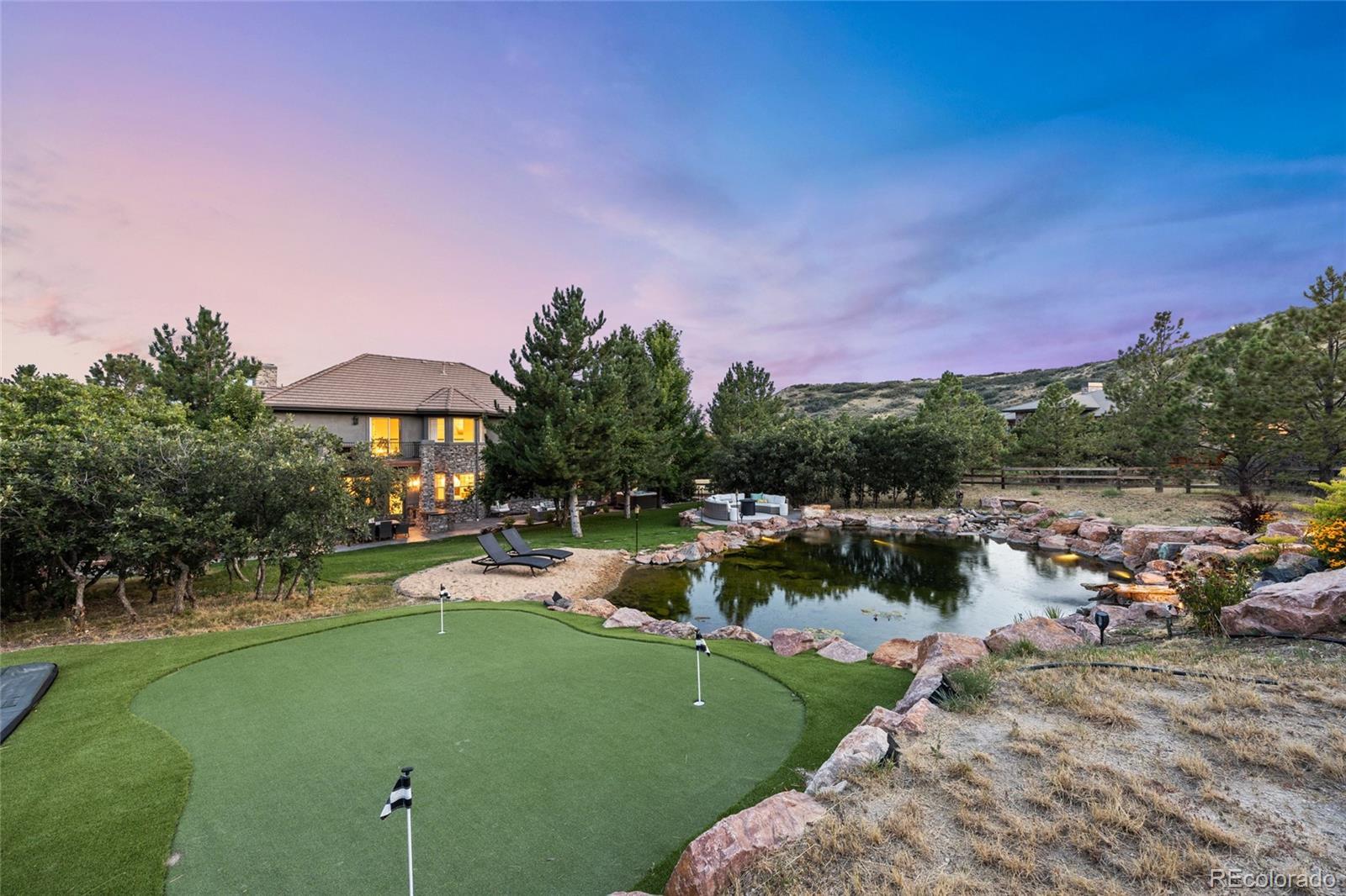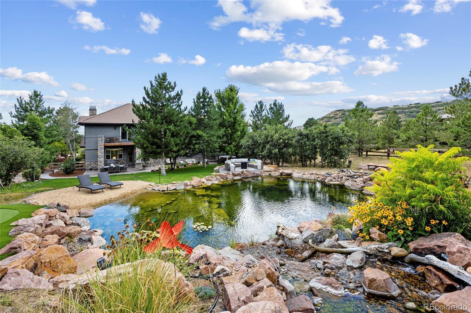 Luxury and style paired with a warm and welcoming vibe! 4875 Wilderness Place is an entertainer’s DREAM - Perfectly situated in the exclusive Pradera community of Parker, Colorado - home of The Club at Pradera, an exclusive private golf community that winds through the peaks and valleys of Parker's unique landscape.. This stunning estate sits on a peaceful and private cul-de-sac, just steps from the golf course, without feeling like you “right-on-the-golf-course”. Every square inch beautifully appointed and updated - This home is truly one of a kind... inside and out! The main level offers a gourmet kitchen with top-of-the-line appliances, a large pantry and laundry room, spacious living areas, a formal dining room, office, elegant formal sitting room, and an inviting family room that flows perfectly off of the main kitchen! Upstairs, boasts a luxurious primary suite featuring a spa-like bath, oversized closet, and a private balcony overlooking the gorgeous back yard with its absolutely unmatched setting! The lower level is built for fun, entertainment and sharping your golf game - complete with a full bar, game room, gym, and even a full-custom golf simulator. Step outside to your own resort-style backyard featuring a swimming pond with beach entry, professional landscaping, with lily ponds, waterfalls, putting green, hot tub, outdoor kitchen, in-ground trampoline and more! This home’s backyard and setting simply will not be matched by any other home at any price-point, in the entire area! 4875 Wilderness Place is not just a home - it’s a lifestyle. You simply will not find another property like it…and you will not want to miss out on the chance to tour the home and make it yours!