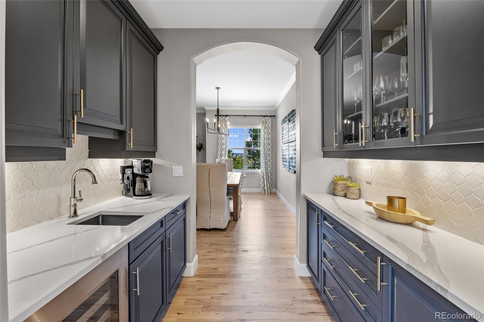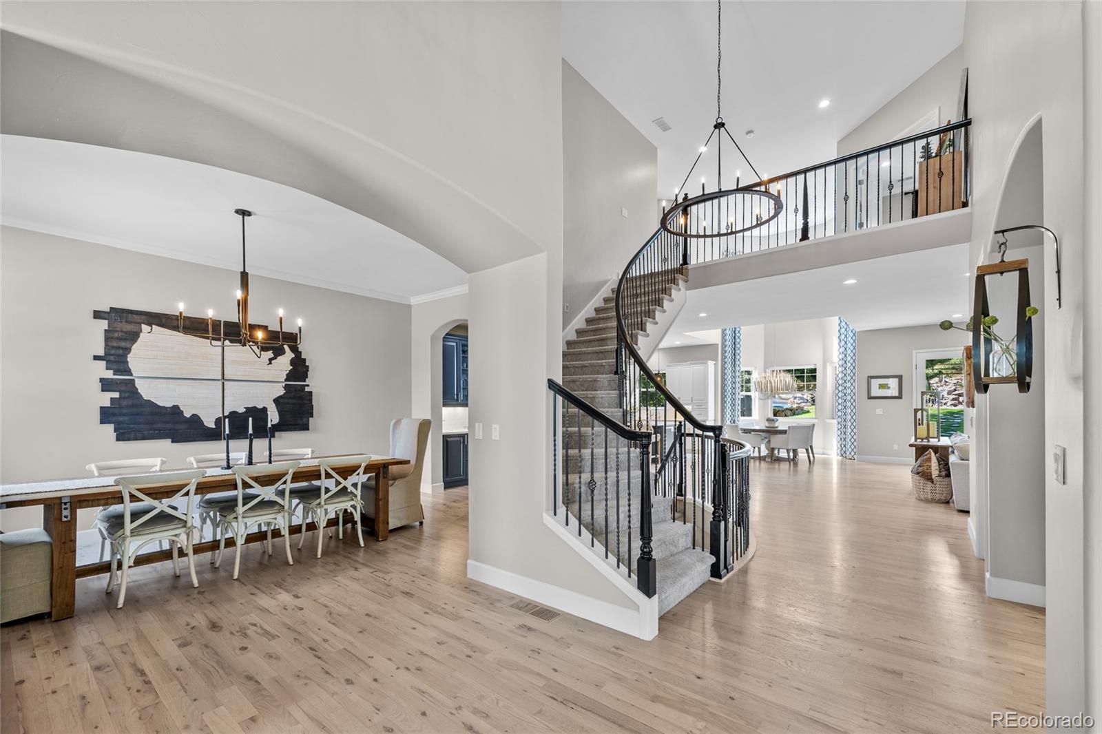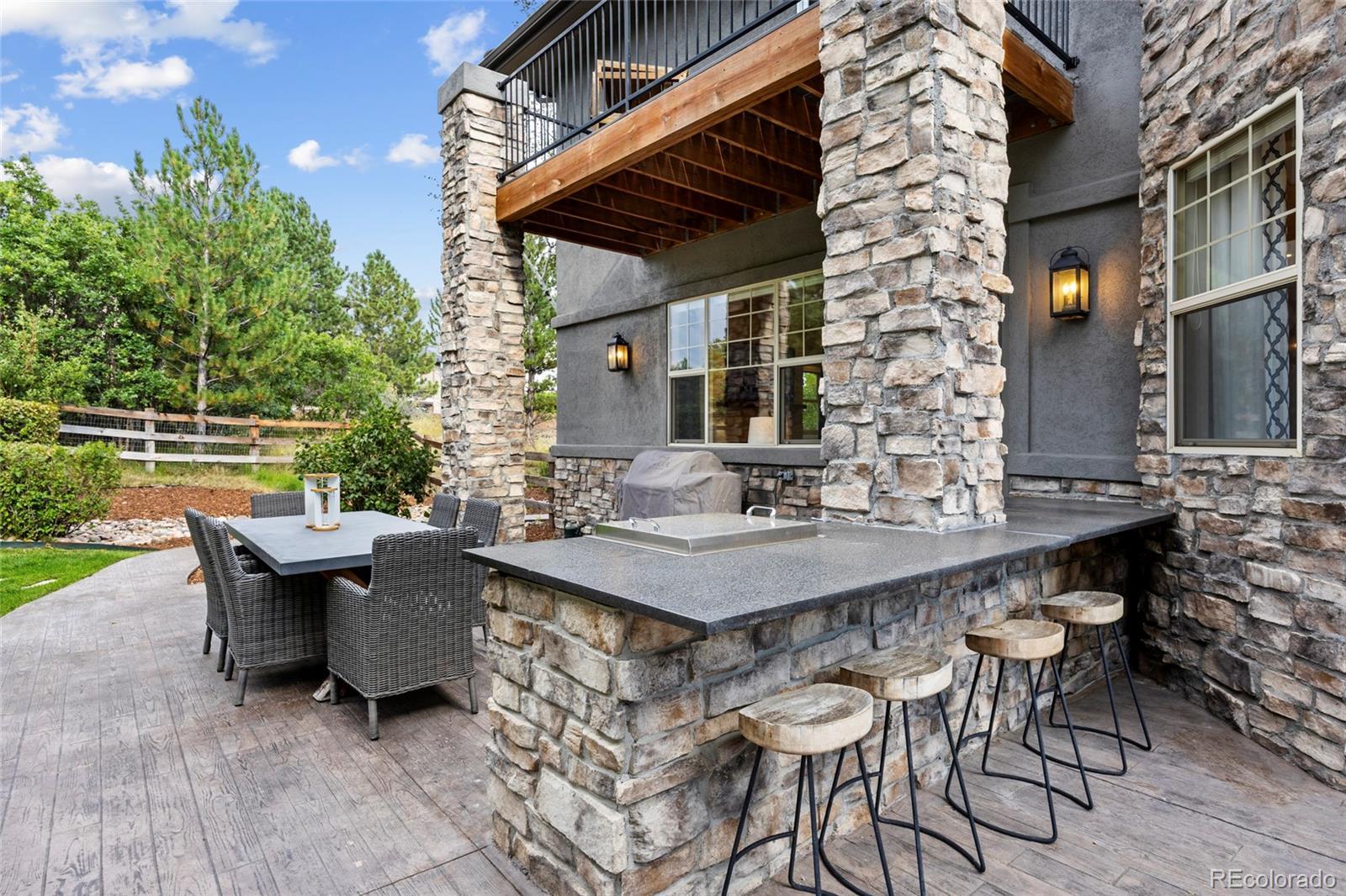 Luxury and style paired with a warm and welcoming vibe! 4875 Wilderness Place is an entertainer’s DREAM - Perfectly situated in the exclusive Pradera community of Parker, Colorado - home of The Club at Pradera, an exclusive private golf community that winds through the peaks and valleys of Parker's unique landscape.. This stunning estate sits on a peaceful and private cul-de-sac, just steps from the golf course, without feeling like you “right-on-the-golf-course”. Every square inch beautifully appointed and updated - This home is truly one of a kind... inside and out! The main level offers a gourmet kitchen with top-of-the-line appliances, a large pantry and laundry room, spacious living areas, a formal dining room, office, elegant formal sitting room, and an inviting family room that flows perfectly off of the main kitchen! Upstairs, boasts a luxurious primary suite featuring a spa-like bath, oversized closet, and a private balcony overlooking the gorgeous back yard with its absolutely unmatched setting! The lower level is built for fun, entertainment and sharping your golf game - complete with a full bar, game room, gym, and even a full-custom golf simulator. Step outside to your own resort-style backyard featuring a swimming pond with beach entry, professional landscaping, with lily ponds, waterfalls, putting green, hot tub, outdoor kitchen, in-ground trampoline and more! This home’s backyard and setting simply will not be matched by any other home at any price-point, in the entire area! 4875 Wilderness Place is not just a home - it’s a lifestyle. You simply will not find another property like it…and you will not want to miss out on the chance to tour the home and make it yours!