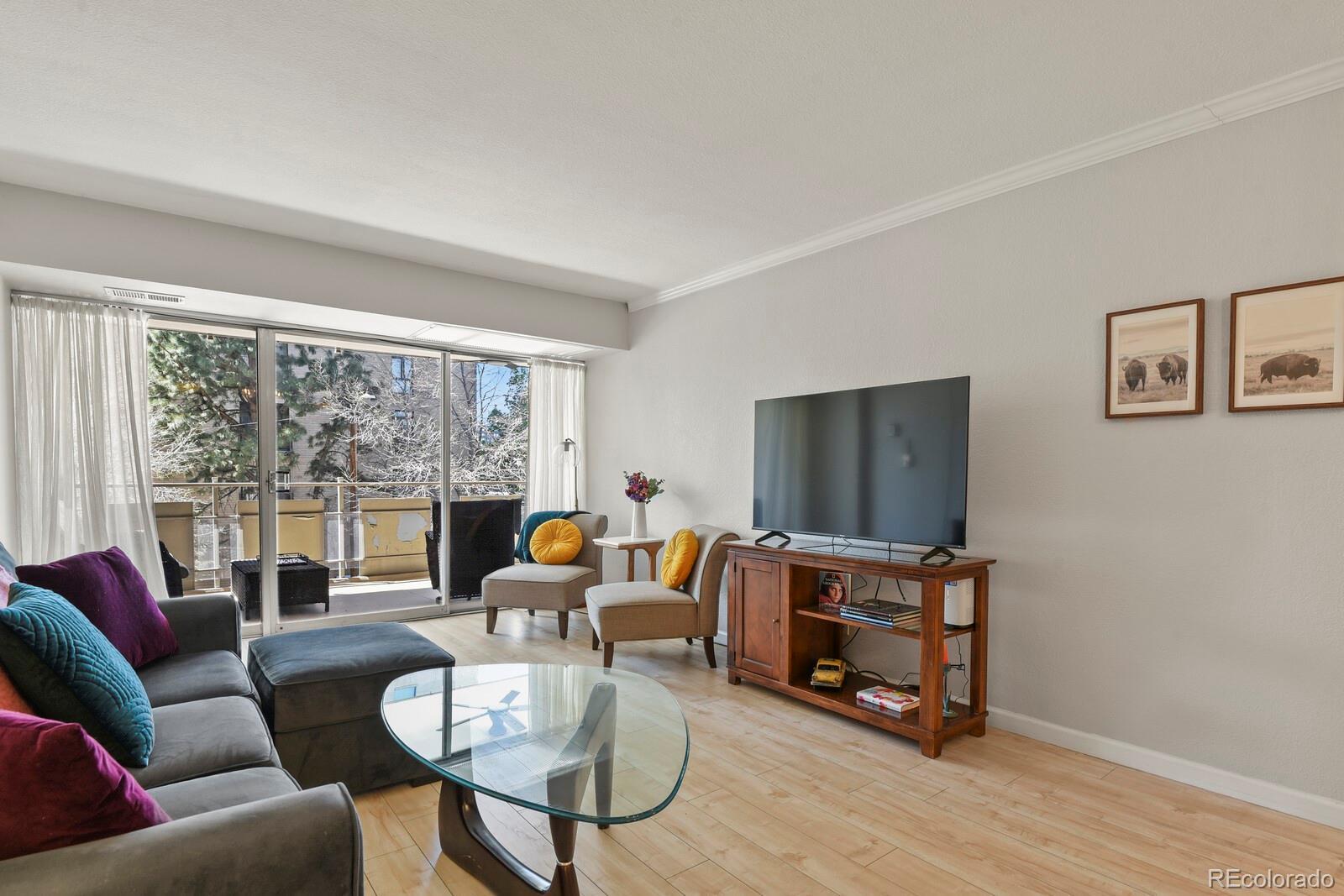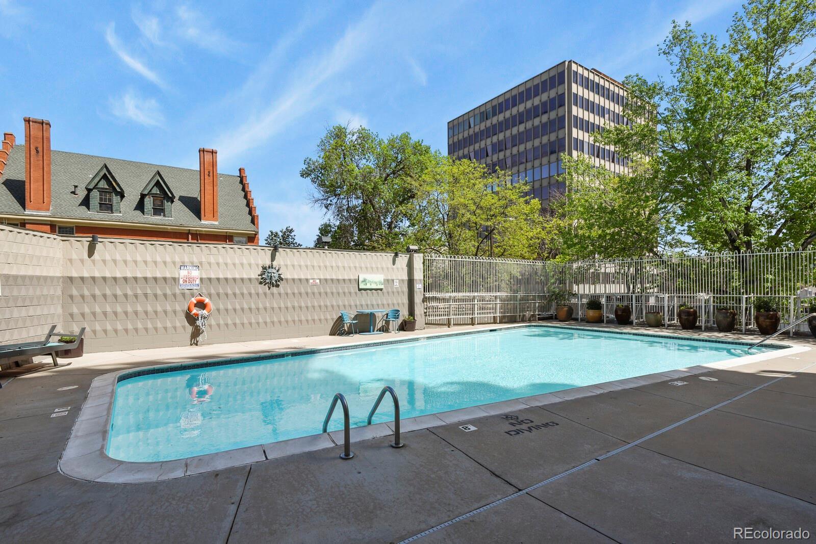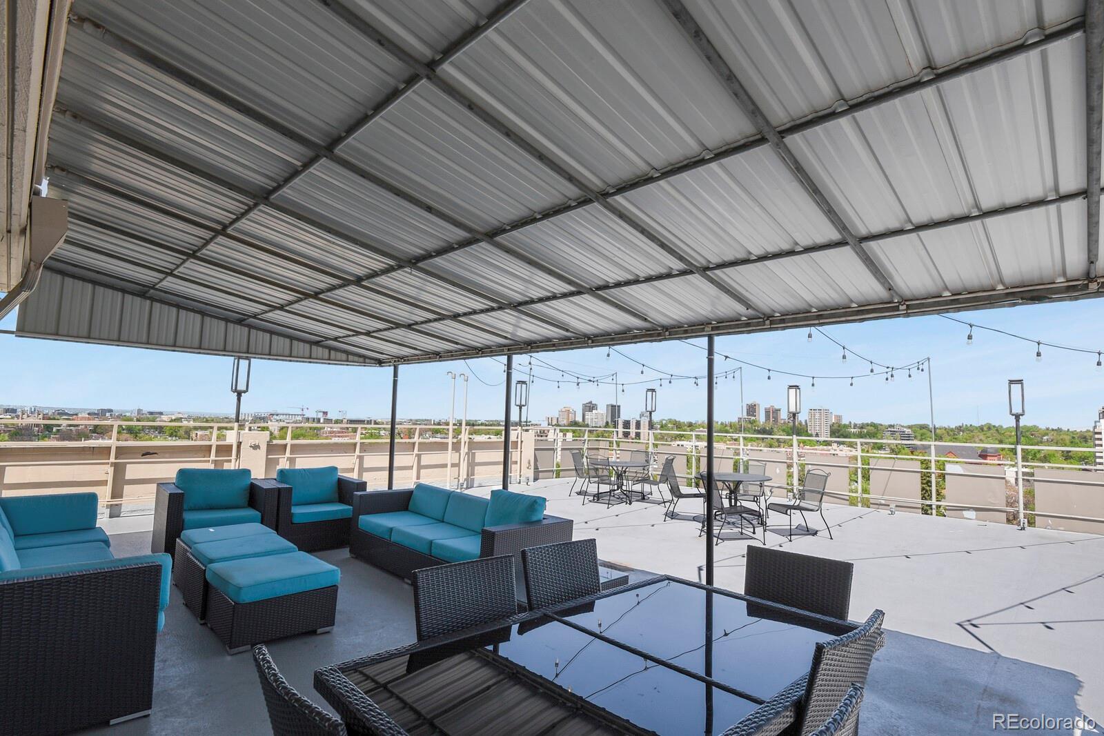 Come home to a beautiful condo in the popular Cap Hill area! This home is incredibly charming-it includes an updated kitchen with granite countertops, a gas range, and a custom built kitchen island with extra storage, a lovely living room and bedroom, which includes a large walk-in closet. Both the living room and bedroom are naturally lit from the unit’s private patio that is accessible from each area. The patio is on the west side of the building which offers plenty of shade from the trees and neighboring building, making it enjoyable all times of day. Also, the unit has newly installed ceiling fans on the balcony, in the bedroom and in the kitchen, making the unit comfortable most of the year. Enjoy delicious water with a triple osmosis water filtration system under the kitchen sink. Never worry about Denver parking, this unit comes with a secured garage parking spot-one of the most valuable commodities in Cap Hill. Also, located in the parking garage is a large storage cabinet, conveniently positioned right at the entrance to the building. Get to know your neighbors because 70% of the units are owner occupied. The walkability is great-King Soopers and Trader Joe’s, and the great local establishments on 6th street, like Pablo’s Coffee, Cigars on 6th, Angelo’s Taverna, Odyssey Italian Restaurant are right down the street. Beautiful green spaces-Governors Park and Cheesman Park are a quick walk. Enjoy high tea and live music at the Brown Palace Hotel or a stroll in the botanical gardens, only 5 minute drives. The amenities offered are fabulous-an exercise room, a party room, a library, an outdoor pool, and a beautiful rooftop deck with grills, tables and stunning mountain views. **Motivated Seller and the potential to be fully furnished if desired**