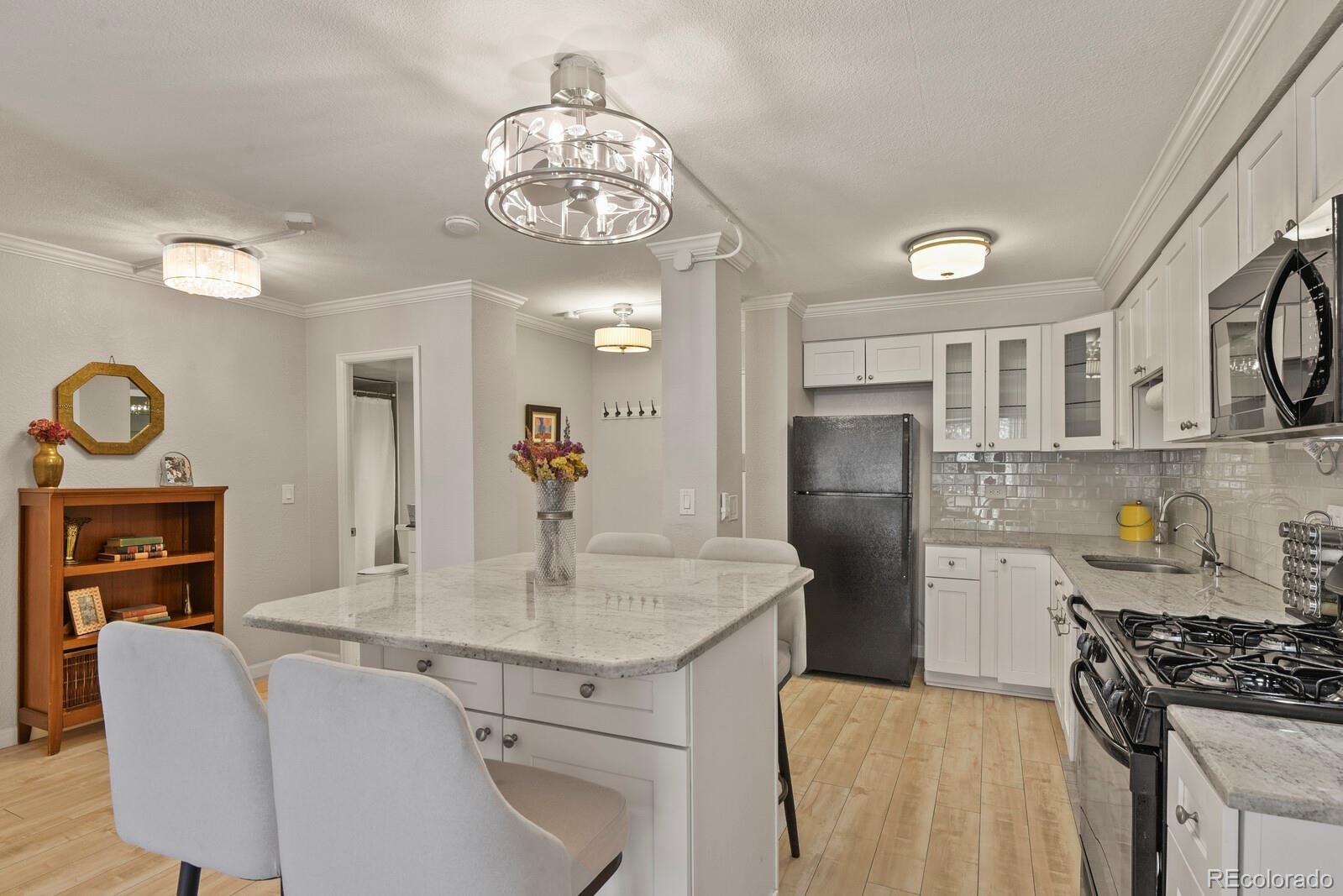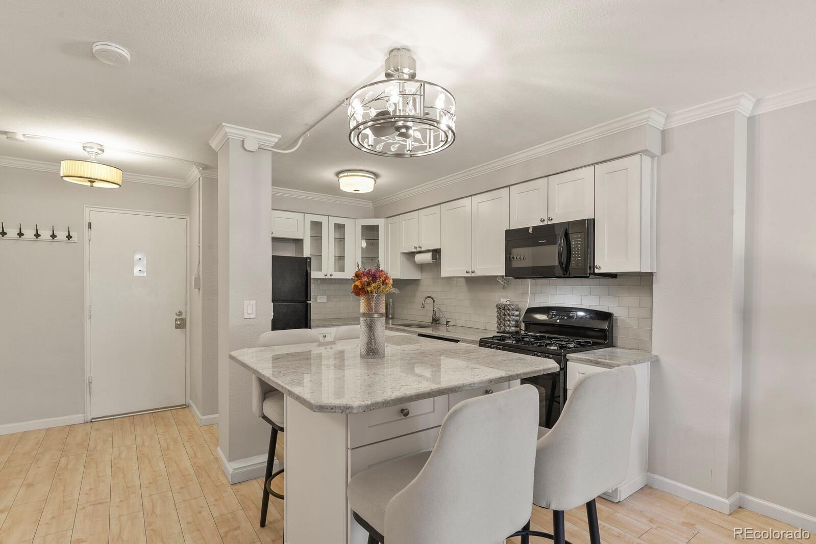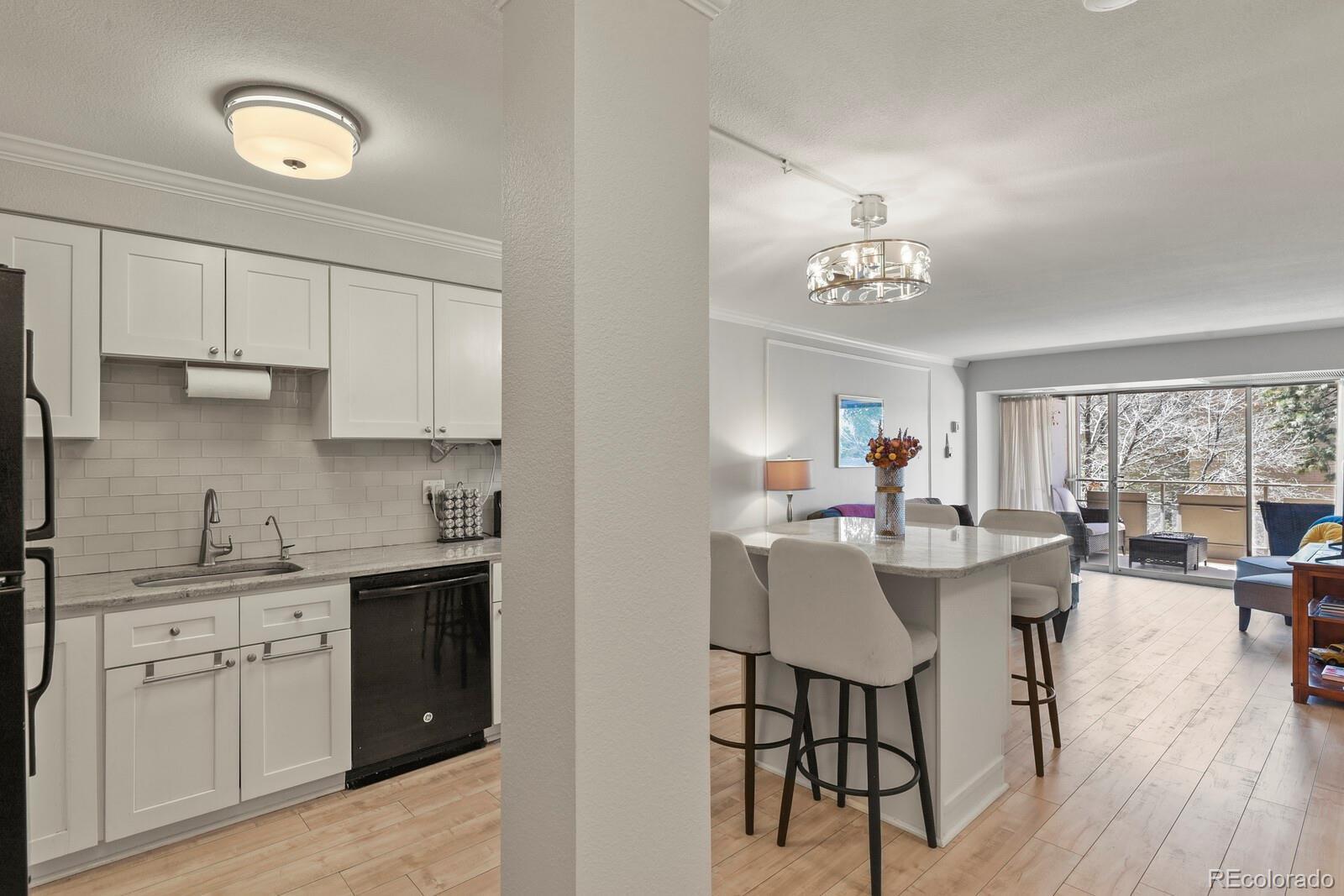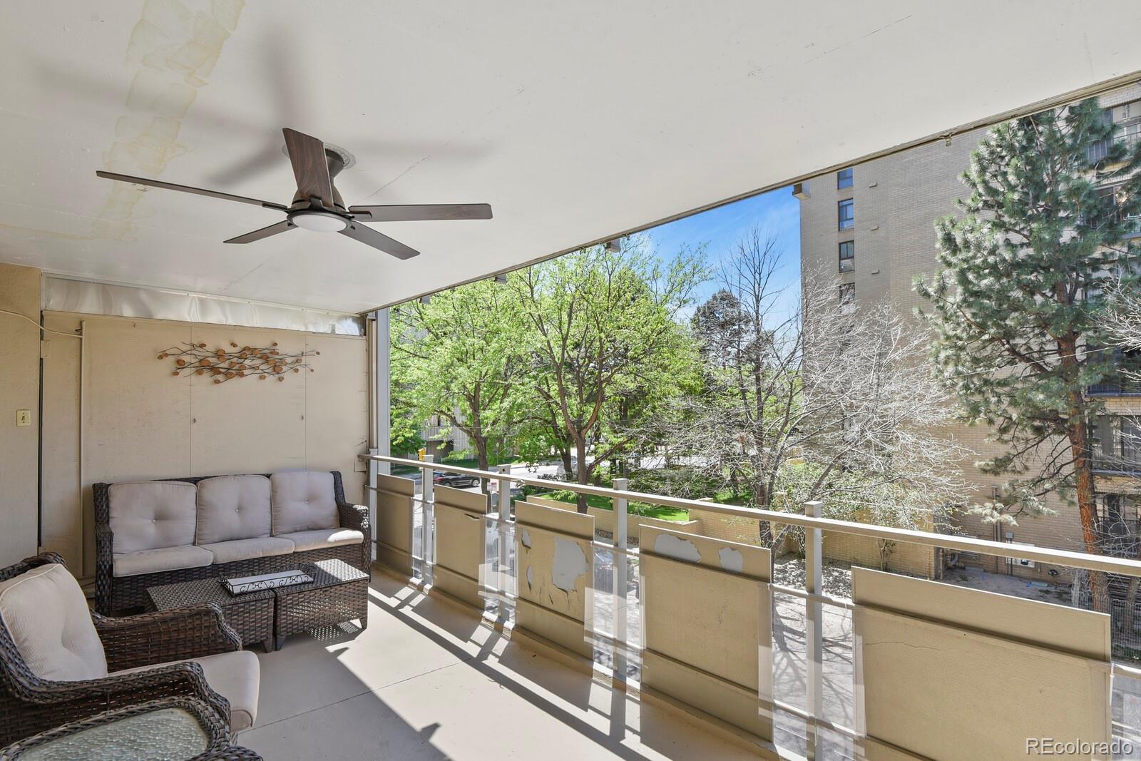 Come home to a beautiful condo in the popular Cap Hill area! This home is incredibly charming-it includes an updated kitchen with granite countertops, a gas range, and a custom built kitchen island with extra storage, a lovely living room and bedroom, which includes a large walk-in closet. Both the living room and bedroom are naturally lit from the unit’s private patio that is accessible from each area. The patio is on the west side of the building which offers plenty of shade from the trees and neighboring building, making it enjoyable all times of day. Also, the unit has newly installed ceiling fans on the balcony, in the bedroom and in the kitchen, making the unit comfortable most of the year. Enjoy delicious water with a triple osmosis water filtration system under the kitchen sink. Never worry about Denver parking, this unit comes with a secured garage parking spot-one of the most valuable commodities in Cap Hill. Also, located in the parking garage is a large storage cabinet, conveniently positioned right at the entrance to the building. Get to know your neighbors because 70% of the units are owner occupied. The walkability is great-King Soopers and Trader Joe’s, and the great local establishments on 6th street, like Pablo’s Coffee, Cigars on 6th, Angelo’s Taverna, Odyssey Italian Restaurant are right down the street. Beautiful green spaces-Governors Park and Cheesman Park are a quick walk. Enjoy high tea and live music at the Brown Palace Hotel or a stroll in the botanical gardens, only 5 minute drives. The amenities offered are fabulous-an exercise room, a party room, a library, an outdoor pool, and a beautiful rooftop deck with grills, tables and stunning mountain views. **Motivated Seller and the potential to be fully furnished if desired**