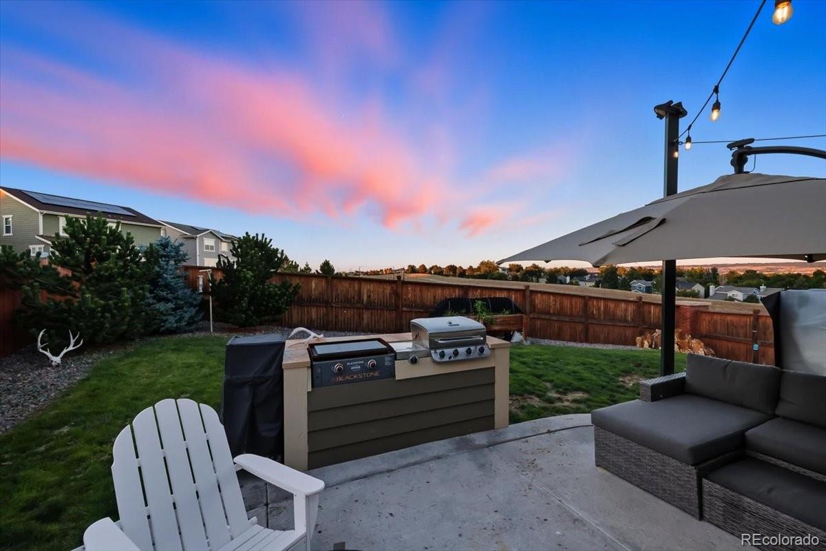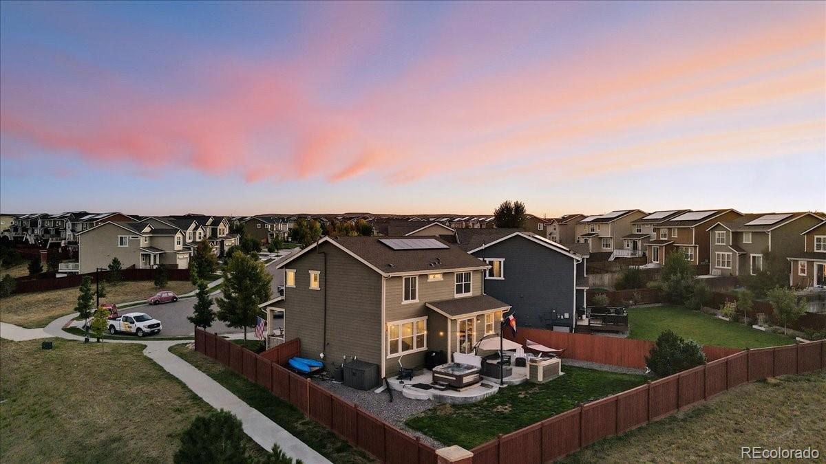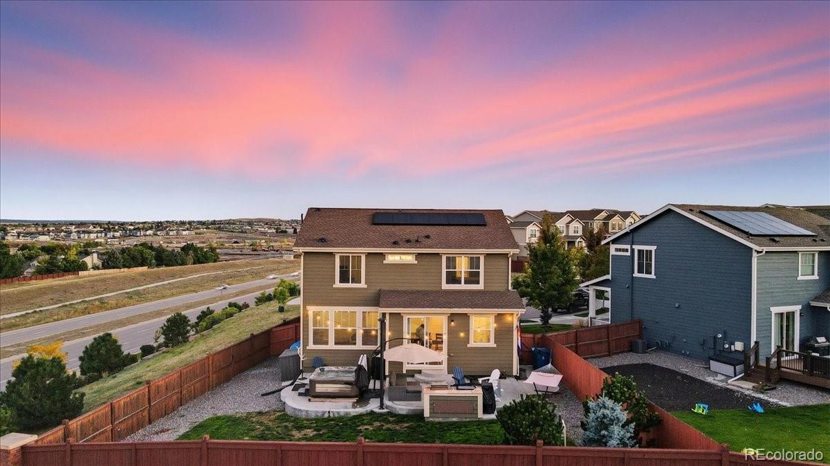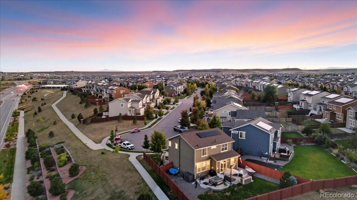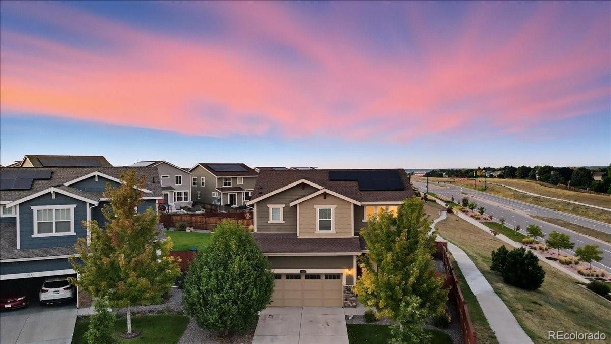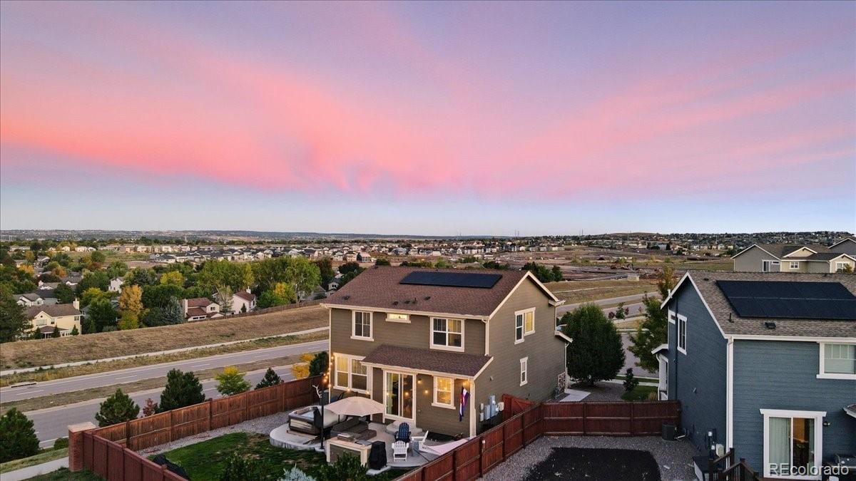 This Sierra Ridge two-story is more than a house — it’s a place to live well. From the moment you walk in, natural light fills the open layout, connecting the kitchen, dining, and living spaces. The kitchen is the heart of it all, with granite counters, stainless appliances, gas range, and a large island that makes gatherings easy. Step outside to the patio and enjoy wide-open views that turn everyday moments into something memorable. Upstairs, the primary suite offers space to recharge with tray ceilings, a spa-like bath, and a walk-in closet. Two more bedrooms and a full bath complete the upper level, while the unfinished basement with tall ceilings is ready for your vision. With owned solar panels lowering your energy bills, this home blends style, savings, and views in a way you won’t want to miss.