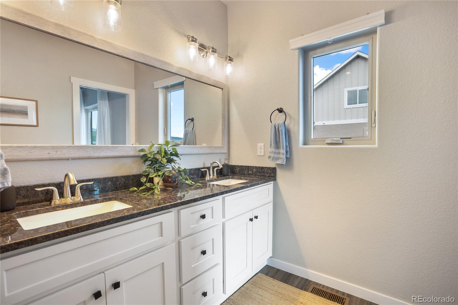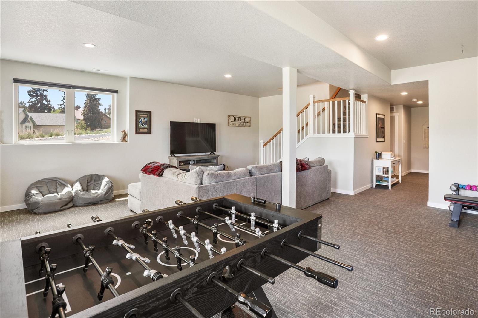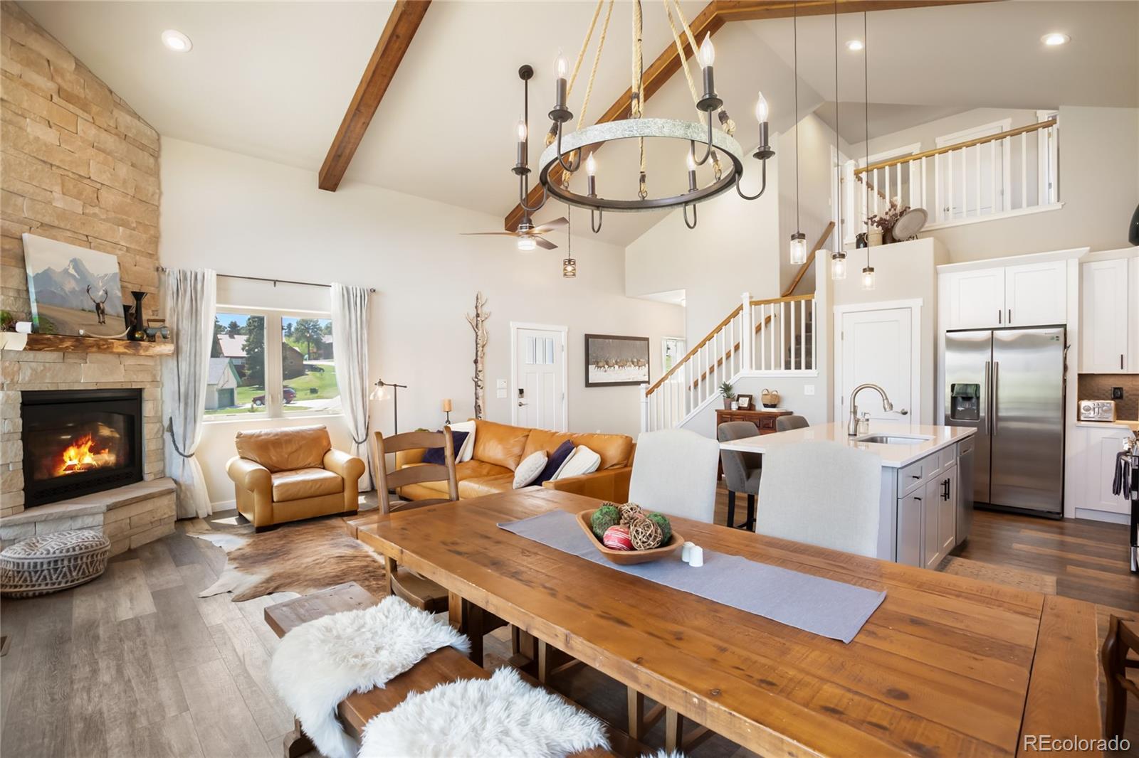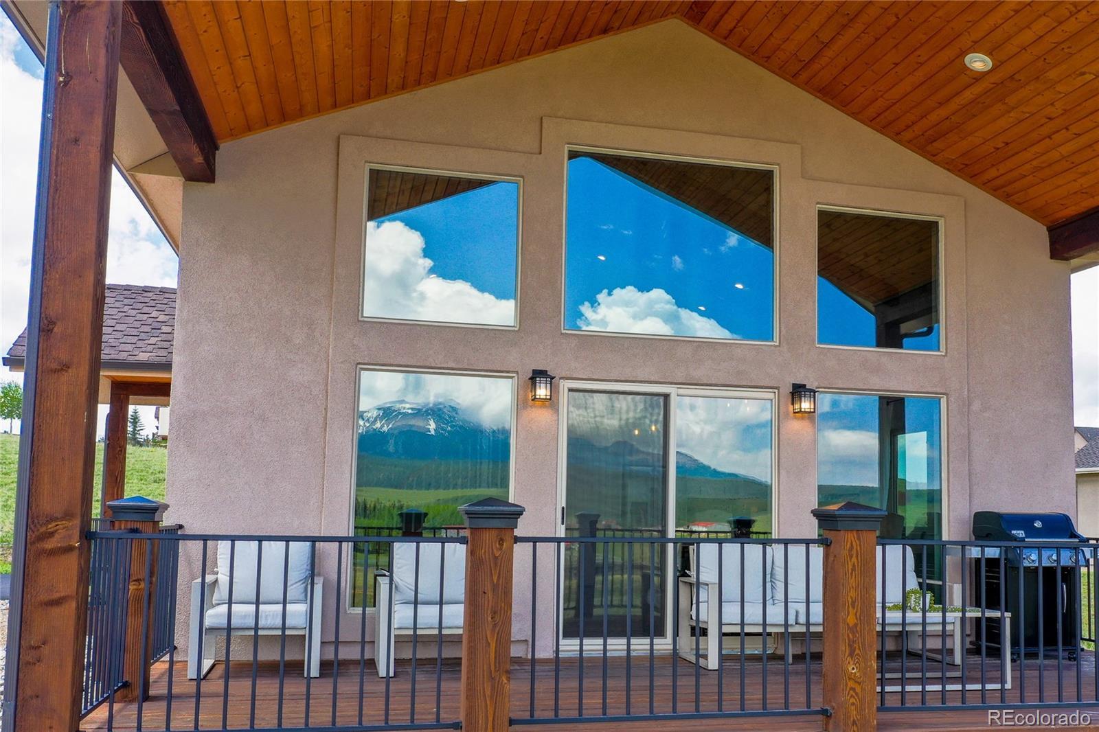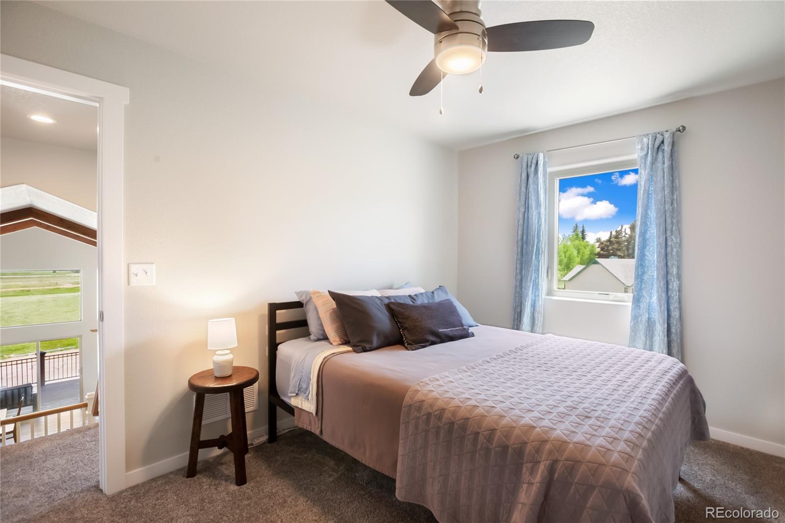 Stunning, like-new custom home, move-in condition! Nestled on over half an acre with unobstructed Pikes Peak views, this gem is just 7 minutes from Woodland Park and 35 minutes from Colorado Springs. Enjoy proximity to adventure—only 1.25 hours from snow-skiing and the Continental Divide, and 20 minutes from gold-medal trout fishing! Soaring south-facing windows, a spacious covered deck, and beamed, vaulted ceilings in the great room. The low-maintenance stucco exterior complements xeriscaped landscaping and wildflower meadows. Inside, discover 5 bedrooms: a main-level owner’s suite, 2 upstairs bedrooms, and 2 in the lower level—perfect for entertaining family and friends. The gourmet kitchen features quartz countertops, stainless appliances, and a center island with bar seating. The great room impresses with a corner gas fireplace, 20-foot ceilings, Cortec vinyl plank floors, and panoramic windows. The owner’s suite offers a private deck, a luxurious 5-piece bath, and dual closets. Upstairs, a lofted den creates a cozy secondary entertaining space, adjacent to two bedrooms and a full bath. The expansive lower-level family room includes another gas fireplace, Pikes Peak views, and a walk-out patio under the deck, plus two bedrooms, a bath, and a secondary laundry area. Thoughtfully designed with three distinct living areas, this home ensures privacy for guests. Upgraded features include: Pella windows; spray foam insulation; 2 x 6 inch construction; covered "outdoor" living space; tankless on demand hot water heater; Views of Pikes Peak! Conveniently located with easy access to schools, shopping, paved county roads, and municipal water and sewer, this Divide retreat is worth the short 7-minute drive from Woodland Park!