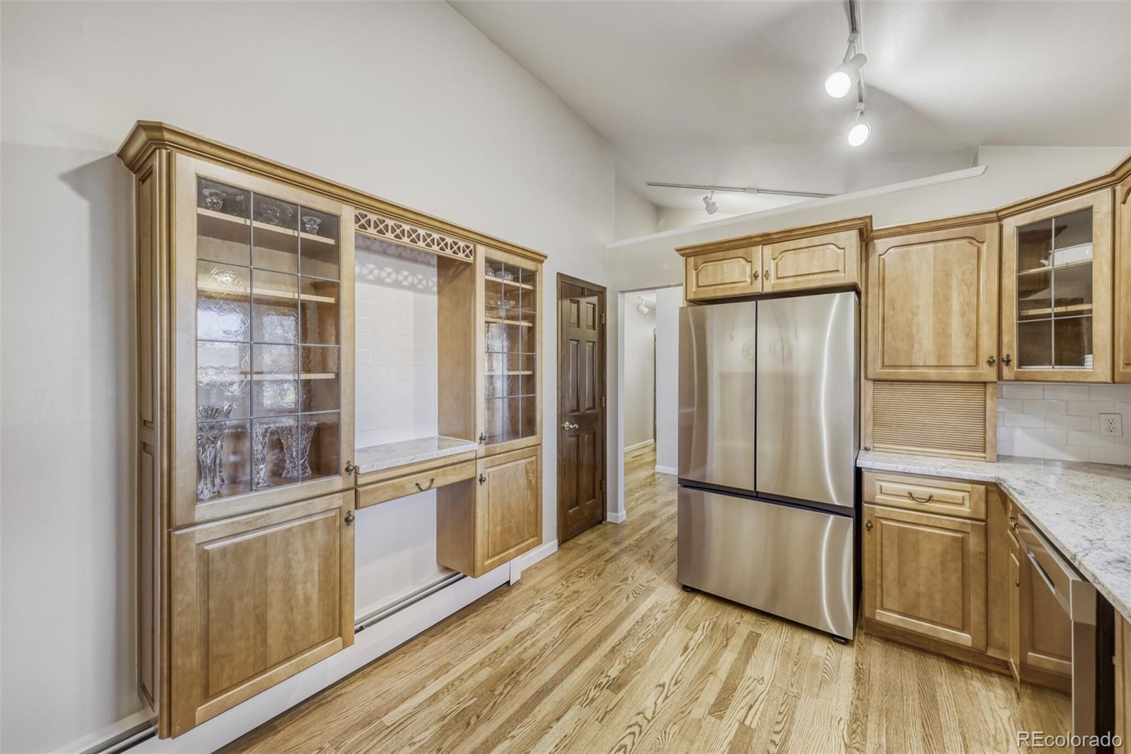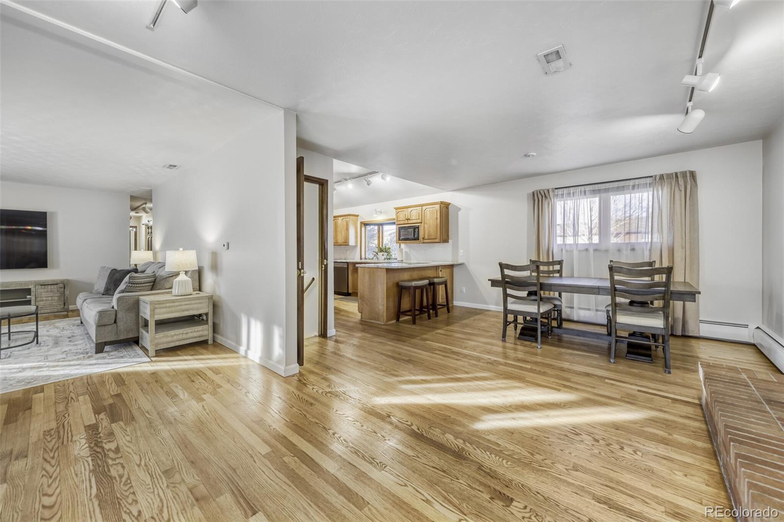 Nestled on a quiet street in one of Littleton’s most established neighborhoods, this beautifully maintained home features timeless finishes, thoughtful updates, and a peaceful connection to the outdoors. A two-year-old roof offers enduring peace of mind. Inside, genuine hardwood floors add warmth and sophistication to the main living areas, while abundant natural light boosts the home’s inviting atmosphere. The kitchen is both stylish and practical, with granite countertops, ample cabinetry, and a layout designed for easy everyday living and entertaining. The walkout basement provides exceptional versatility and natural light, making it an ideal space for a secondary living area, guest suite, private office, or recreation room with direct access to the backyard. Outside, a low-maintenance Trex-style deck overlooks a serene waterfall and beautifully landscaped, tree-lined yard, where tall, mature trees offer privacy, shade, and a peaceful, park-like setting—perfect for entertaining or relaxing at home. Conveniently located near downtown Littleton, shopping, dining, and light rail, this home presents a rare combination of privacy, quality, and accessibility.