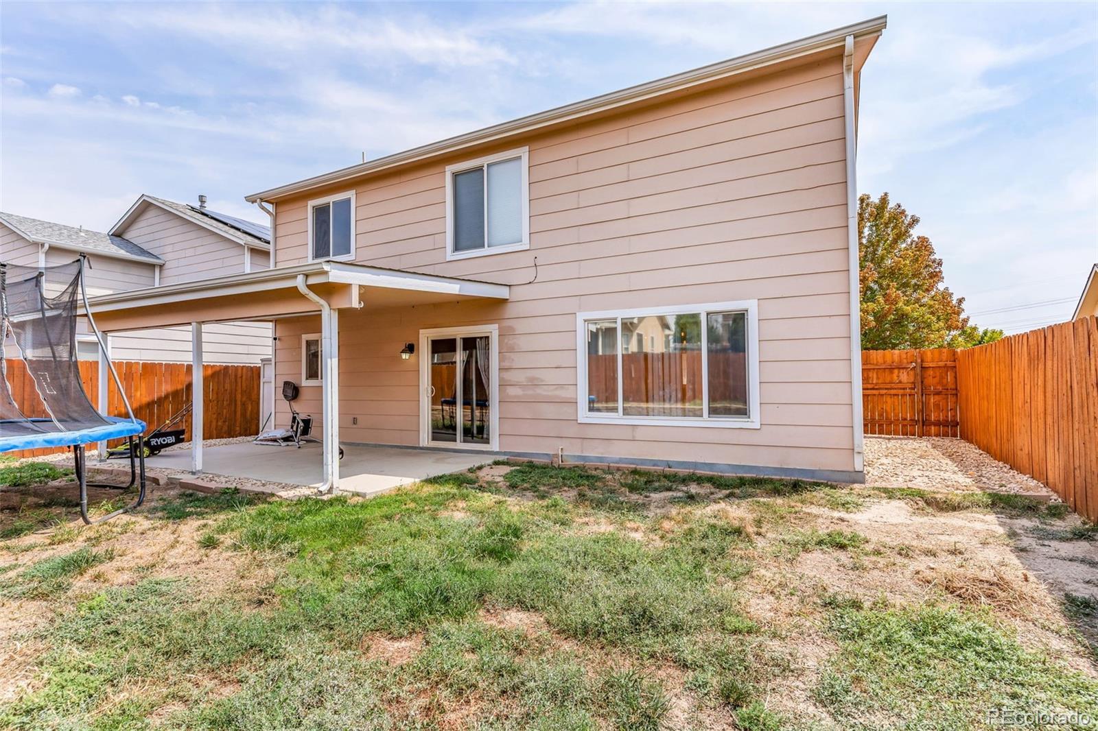 5043 Thrush Dr. offers a well-designed two-story layout with 4 bedrooms, 3 bathrooms, and an attached two-car garage. The home comes with a fully paid solar system, helping reduce energy costs while adding long-term value. Inside, the main level includes a living room and dining area connected to the kitchen, which features included appliances and access to a covered patio, perfect for outdoor cooking and gatherings. A bedroom, half bath, and convenient laundry area complete the first floor. Upstairs, the primary suite includes a walk-in closet and spacious bathroom with double vanity, soaking tub, and walk-in shower. Two additional bedrooms and a full bathroom provide comfortable space for family or guests. Durable laminate flooring extends through much of the home for easy upkeep. Central air. Washer & Dryer are included. Outside, the backyard is enclosed with a privacy fence and ready to be customized to your vision, while a mature front yard tree adds curb appeal. Located near Pueblo’s walking trails, Lake Pueblo State Park, golf courses, and local dining, this property combines everyday function with access to recreation and community.