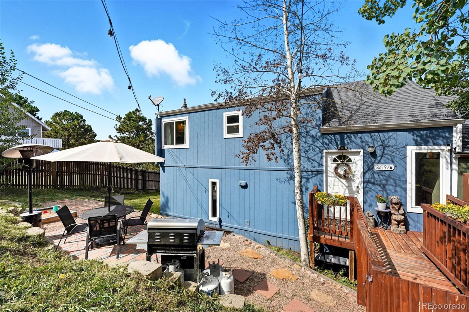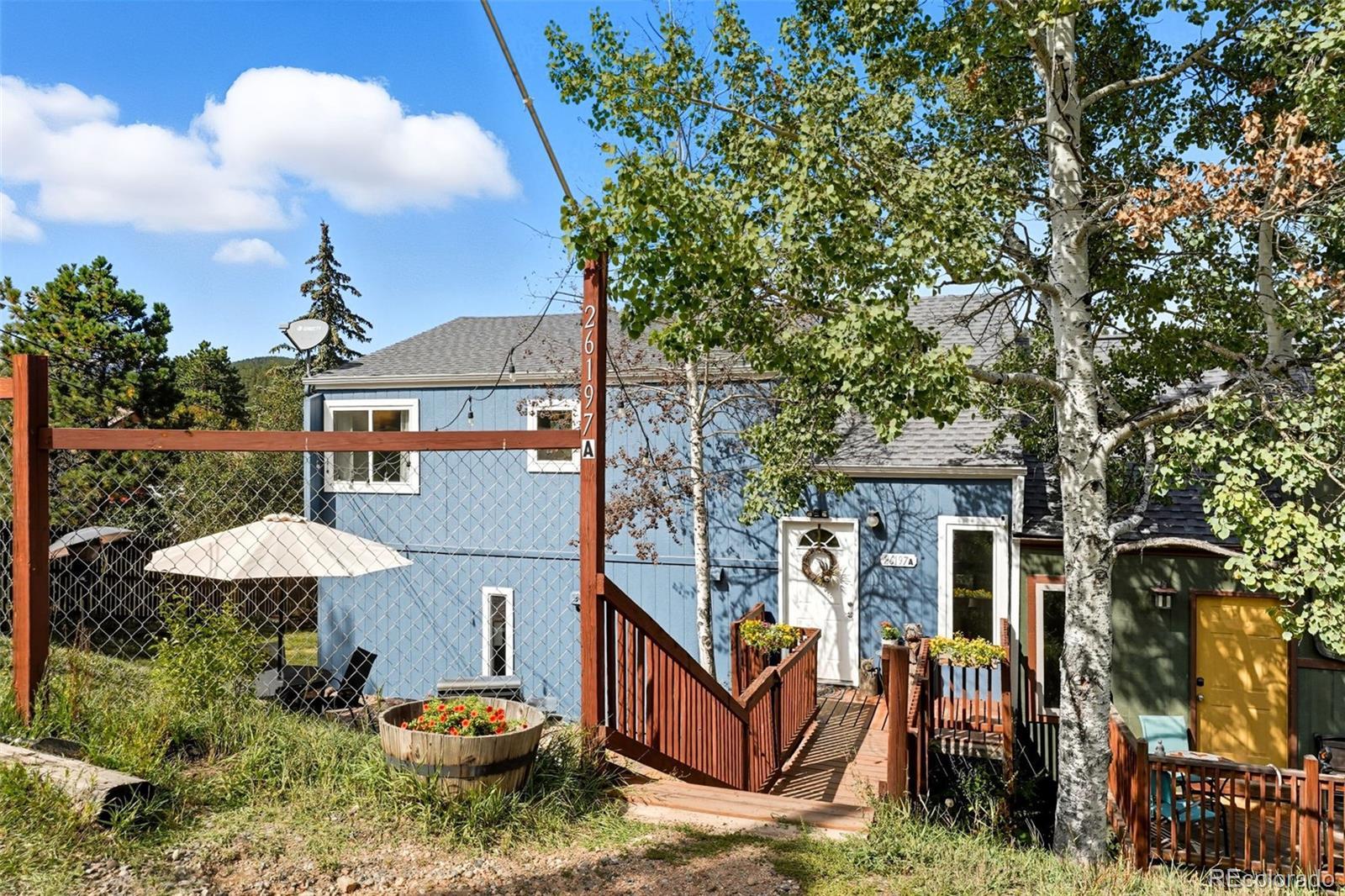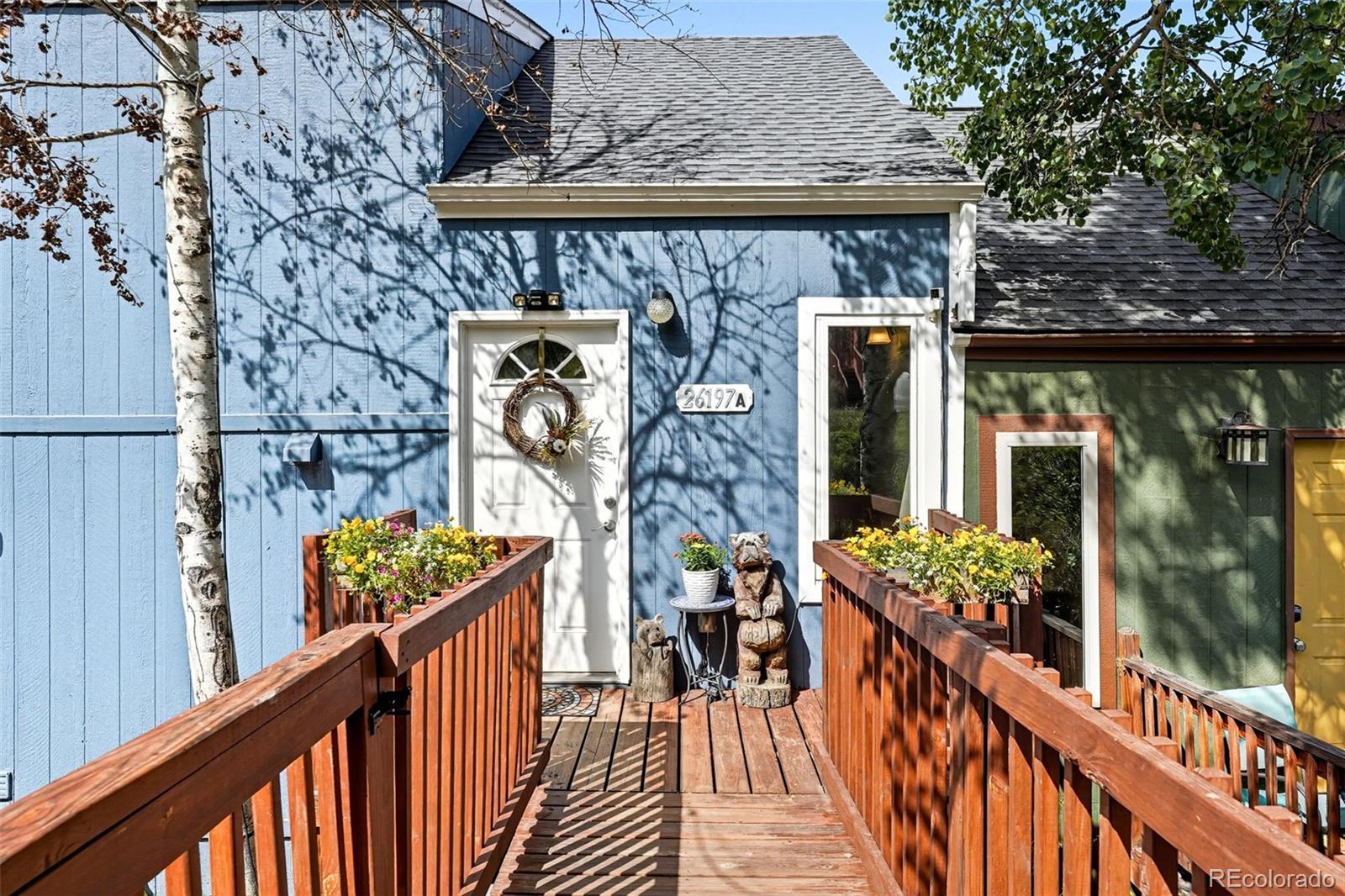 Welcome to your mountain retreat in the heart of Kittredge! This move-in ready charming duplex offers the perfect blend of rustic Colorado living and modern convenience. With nearby parks, hiking trails, and charming local eateries, this location is ideal for those who love both adventure and small-town living. Just minutes from Evergreen, Morrison, and quick access to Hwy 285, I-70, and C-470. This 3 bedroom, 2 bath home boasts light-filled, open concept design that’s perfect for everyday living and entertaining. Head inside to discover gorgeous new flooring that creates a warm and welcoming atmosphere. The updated kitchen is a true showpiece, featuring rich cherry cabinets, sleek granite countertops, and a generous island that provides both prep space and casual seating. This home features a walk-out lower level with flexible living space, perfect for a home office, gym, guest suite, or an additional family room. The convenient mudroom provides extra storage and helps keep the home organized. The fully fenced-in backyard, complete with a dog door and a spacious new storage shed, offers plenty of room for kids and pets to run and play while you unwind around the fire pit or enjoy a barbecue. Enjoy the privacy of a stand-alone home with the convenience of a duplex—each unit has its own roof and only shares a portion of one wall. Additional features of the home include a new roof in 2023, new exterior paint in 2024, water heater installed in 2020, updated electrical panel in 2019. The home passed an energy audit in 2020. South End Road—county maintained and snow plowed for reliable access. Whether you’re searching for a full-time residence or a weekend getaway, this property offers the perfect opportunity to embrace the Colorado lifestyle.