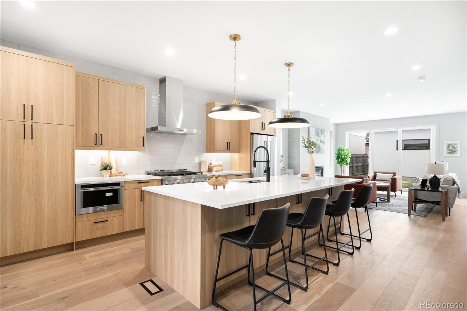 Step into this stunning new construction duplex by MAG Builders, ideally located in the heart of Sloan’s Lake. Designed with warm, modern finishes and a smart, functional layout, this home offers the perfect balance of luxury and everyday comfort. The open-concept main level welcomes you with 7" European white oak engineered flooring and an abundance of natural light. A chef-inspired kitchen anchors the space, featuring stainless steel appliances, a gas range, quartz countertops, and an expansive island - ideal for both casual meals and entertaining. The family room, complete with a cozy gas fireplace, flows seamlessly to the outdoors. Large sliding glass doors open to a private rear patio, complete with a gas valve for future grilling or outdoor heating - perfect for year-round indoor-outdoor living. Upstairs, you’ll find three well appointed bedrooms, including a tranquil primary suite with a spa-like ensuite bath and walk-in closet. Two additional bedrooms, a full bathroom, and a conveniently located laundry room provide flexibility for modern living. The finished basement expands your living space with a versatile rec room, plus a private guest bedroom and full bathroom. A detached two-car garage offers secure parking and additional storage. All of this, just steps from Sloan’s Lake, where you can enjoy Denver’s vibrant dining, shopping, and entertainment—wrapped in the charm of a walkable neighborhood that truly feels like home.