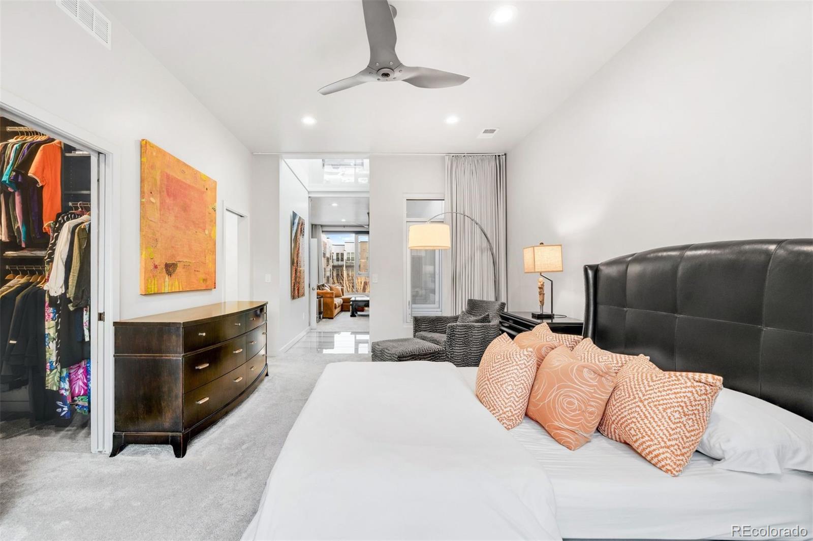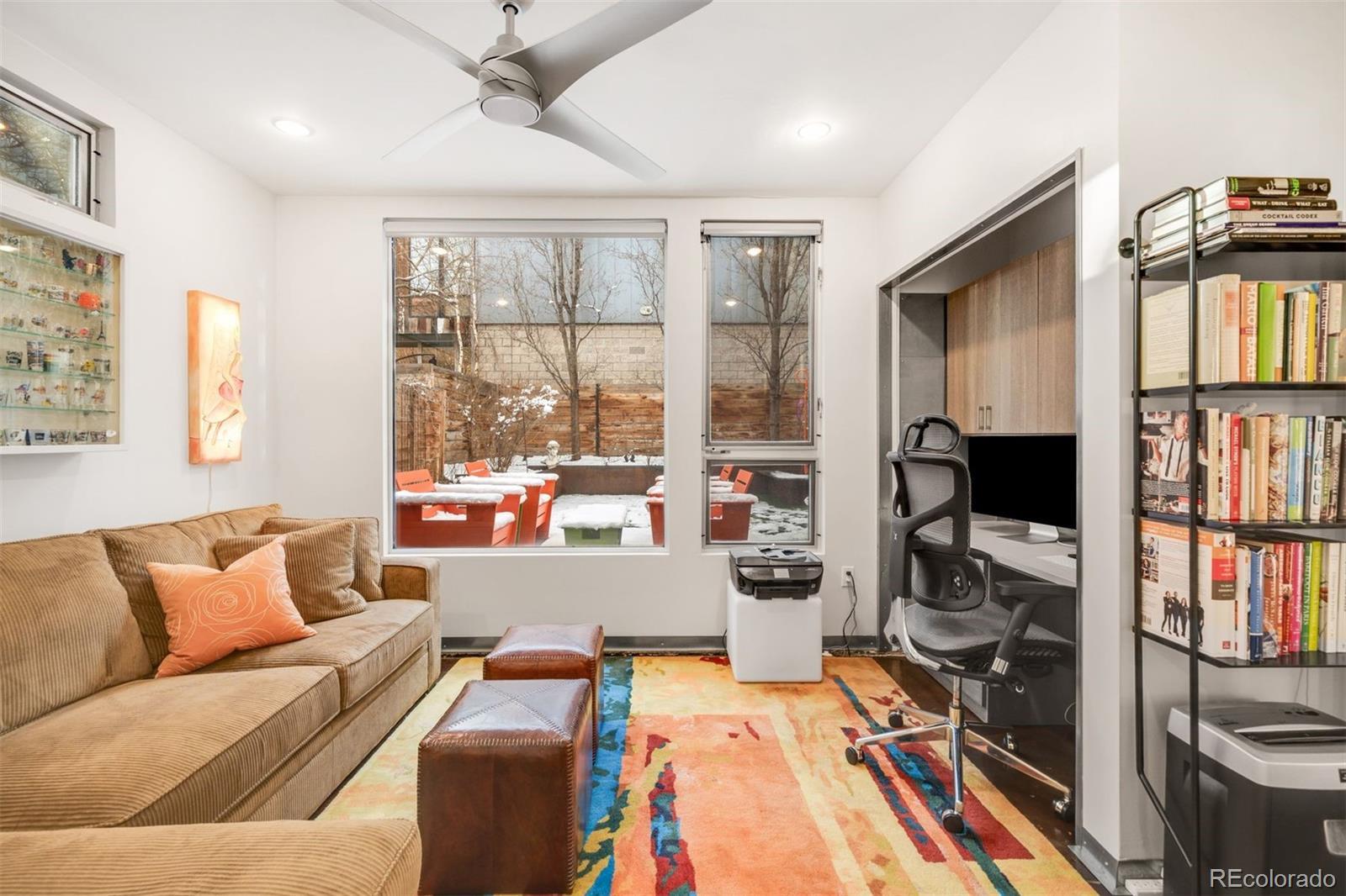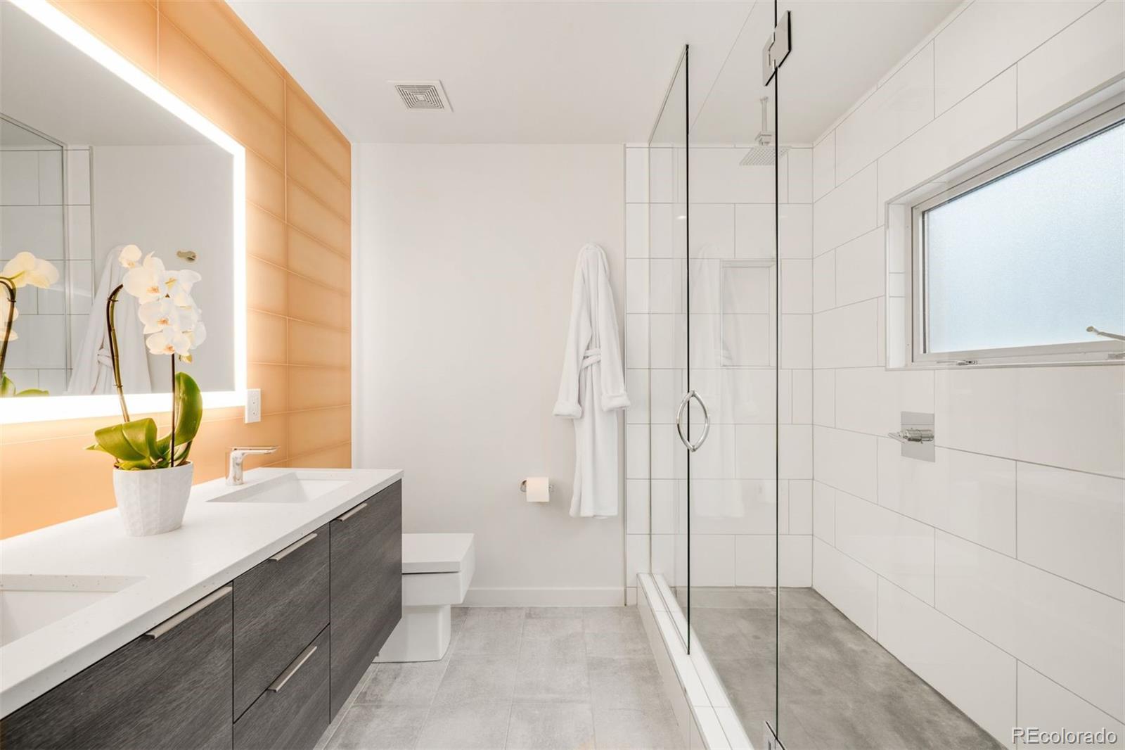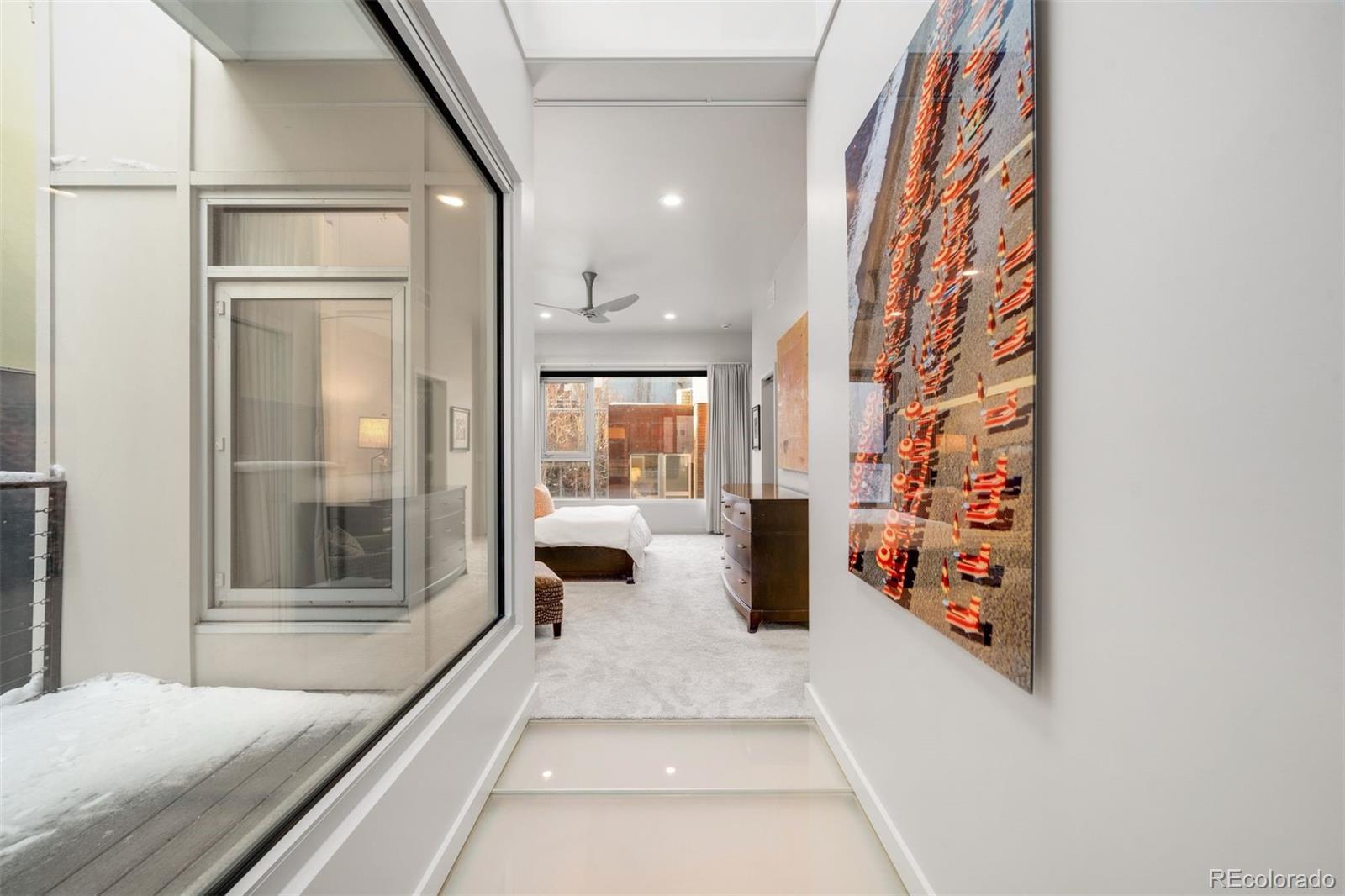 Located in the heart of Denver’s Lower Highlands, 1815 Boulder Street is one of two seminal architectural homes that helped catalyze LoHi’s evolution. Set among award-winning restaurants, coffee shops, boutiques, parks, and direct pedestrian bridge access to Downtown Denver, this single-family residence features a magazine-worthy backyard in one of the city’s most vibrant neighborhoods. A dramatic front porch with sweeping overhang offers a welcoming arrival, complemented by raised garden beds in front/back yards. Inside, the main level is filled with natural light from soaring ceilings and storefront-style windows, creating spaces that feel more gallery than residence. The eat-in kitchen is designed for daily living and entertaining, featuring integrated refrigerator and freezer columns, a waterfall concrete island with built-in wine storage, and open shelving. The dining area is anchored by statement lighting and custom built-ins, with lush front yard views, while the living room opens to custom bamboo-lined courtyard, extending indoor-outdoor living and connecting to a main-level bedroom. Main-floor bedrooms offer flexibility, including one currently used as an office with custom built-ins. Both share a remodeled Jack-and-Jill bath, complemented by a dramatic powder room. A separate staircase leads to an additional upper-level bedroom, creating separation from the primary suite. The primary suite lives like a private level, featuring a custom walk-in closet and refreshed bath with soaking tub, dual vanities, and steam shower, connected by a striking glass bridge to a private living area. The top-floor loft opens to a wraparound rooftop deck with sweeping city views. The backyard, a six-figure redesign by Designs by Sundown, offers a sculptural outdoor retreat. An oversized 2-car tandem garage with 600+ SqFt of storage and private driveway complete the home. Moments from Avanti and Michelin-recognized Alma Fonda Fina, 1815 is a one-of-a-kind work of art.