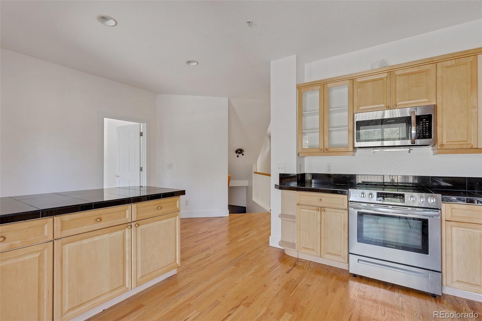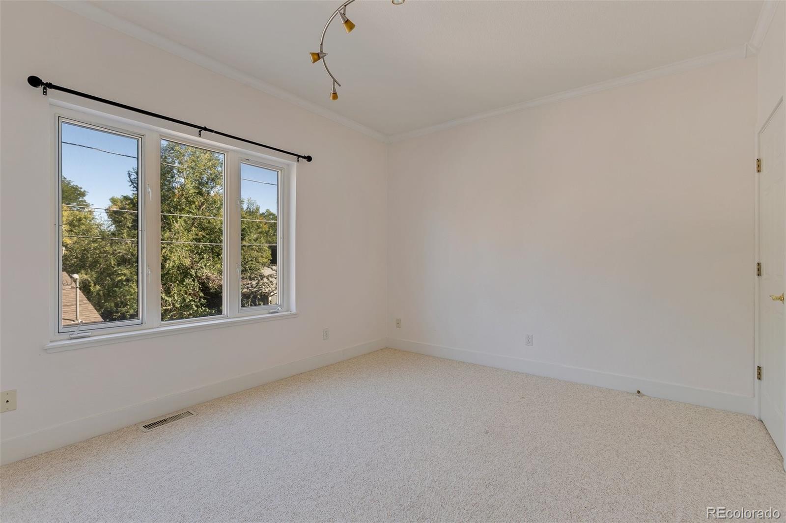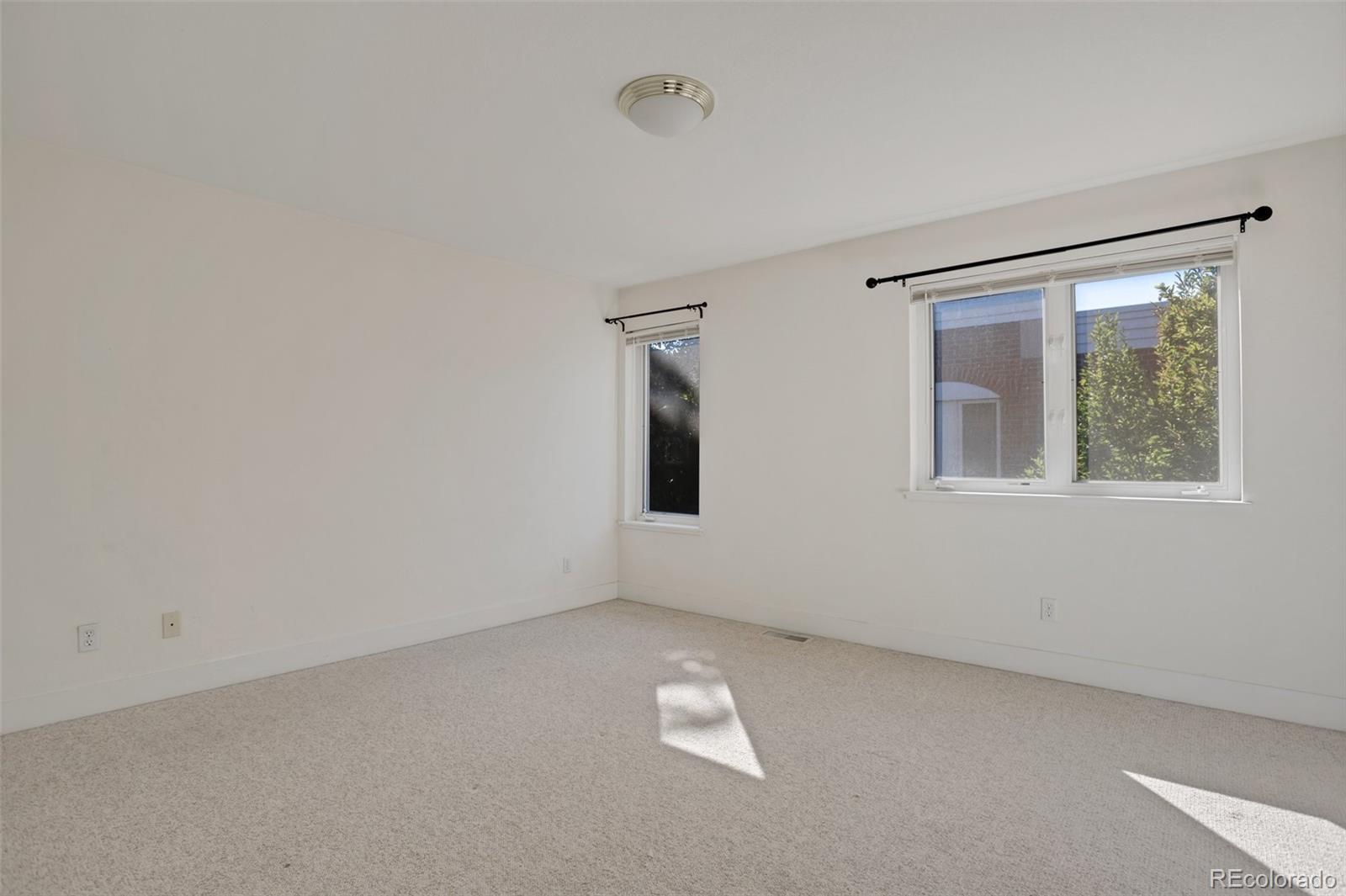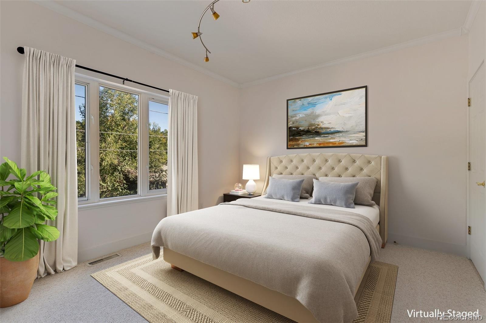 Beautifully Updated Brick Townhome Near University of Denver Tucked away on a quiet street just steps from the University of Denver, this spacious and stylish 4-bed, 3-bath brick townhome blends comfort, convenience, and modern updates. Freshly painted interiors and newly refinished hardwood floors set a warm tone, while large north-facing windows fill the home with natural light and offer views of Harvard Gulch. The main floor features a welcoming living room with a cozy gas fireplace, a formal dining room perfect for entertaining, and a spacious kitchen with newer stainless steel appliances, a center island, and ample cabinet space. A versatile main-floor bedroom with a full bath and large closet could easily serve as a primary suite, guest room, home office, or family room. Upstairs, you'll find two generous en-suite bedrooms. The oversized primary retreat offers space for two queen beds and a sitting area, plus a spa-like bath with a jetted tub. A large laundry room with washer and dryer completes this level. The garden-level bedroom (or flex space) includes a roughed-in bathroom, ideal for future expansion. Outside, enjoy the oversized 2-car garage with private entry and built-in storage. Recent updates include a newer HVAC system and water heater. Walkable to shops, restaurants, parks, DU, Porter Hospital, light rail, and bus stops. Just a 5-minute drive to Washington Park and Cherry Creek Mall. This home truly offers the best of urban living in a serene, tree-lined setting.