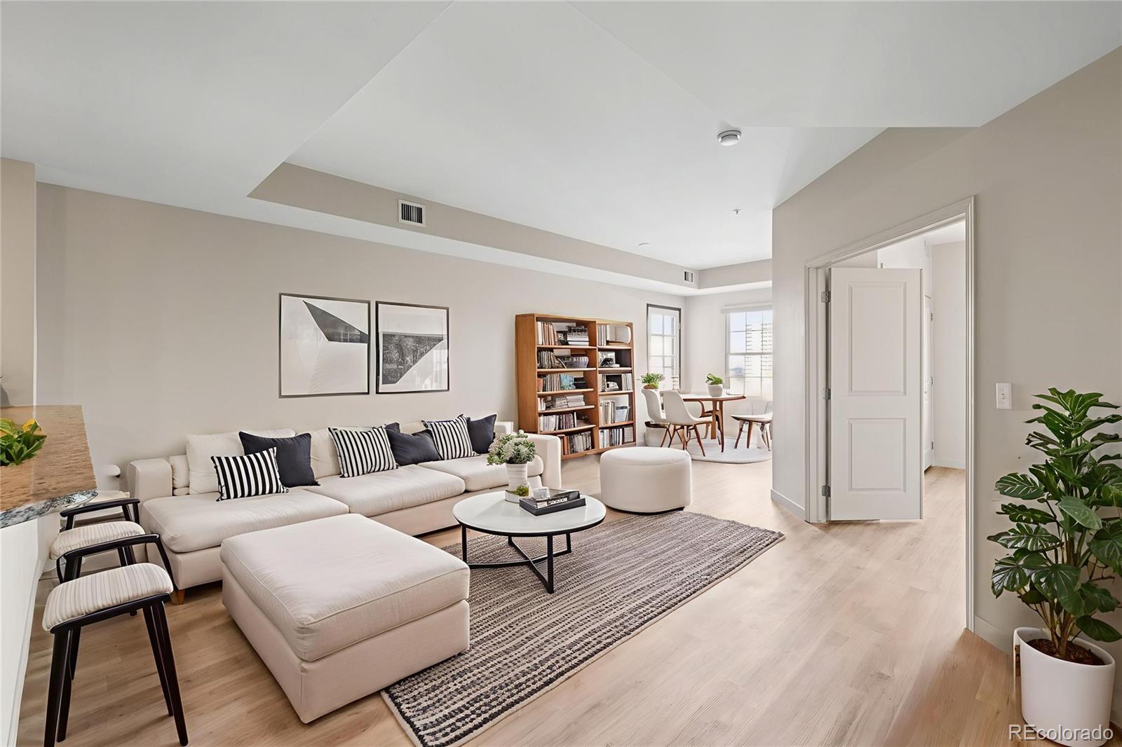 Welcome to 975 N Lincoln Street, Unit 8B, perfectly positioned in the heart of Denver’s iconic Capitol Hill and Golden Triangle neighborhoods. Located in the highly sought-after Beauvallon community, this secure 8th-floor residence delivers the ultimate blend of modern comfort, city views, and unbeatable walkability true Denver city living at its finest. This thoughtfully designed condo offers exceptional privacy and quiet. Inside, you’ll find a bright, open floor plan featuring brand-new luxury vinyl flooring, updated bathroom tile, and fresh paint throughout. An in-unit washer and dryer adds everyday ease, making the space ideal for both daily living and entertaining. Step out onto your private balcony to take in beautiful city vistas and enjoy Colorado’s fresh air year-round. The Beauvallon elevates condo living with resort-style amenities, including a stunning 5th-floor rooftop pool deck with BBQ areas, a year-round hot tub, lush landscaped gardens, concierge services, and 24/7 security. Owners the convenience of one reserved parking space and a private storage unit. With a near-perfect Walk Score, this location puts Denver’s best right outside your door. Explore the cultural heartbeat of the Golden Triangle, home to the Denver Art Museum, Clyfford Still Museum, and History Colorado Center. Savor local favorites like The 9th Door, DiFranco’s, and nearby Capitol Hill dining and nightlife, or grab your morning coffee at Sky Tea & Coffee. Fitness and wellness are easy with Summit Strong, yoga studios, and downtown athletic clubs close by. Outdoor lovers will appreciate quick access to Governor’s Park, Quality Hill Park, and the Cherry Creek Trail for walking, biking, and fresh air escapes. From the elegant, welcoming lobby to the attentive on-site staff, the Beauvallon offers a lifestyle that’s both refined and effortless. Homes in this building move quickly don’t miss your chance to own a piece of one of Denver’s most vibrant and connected communities.