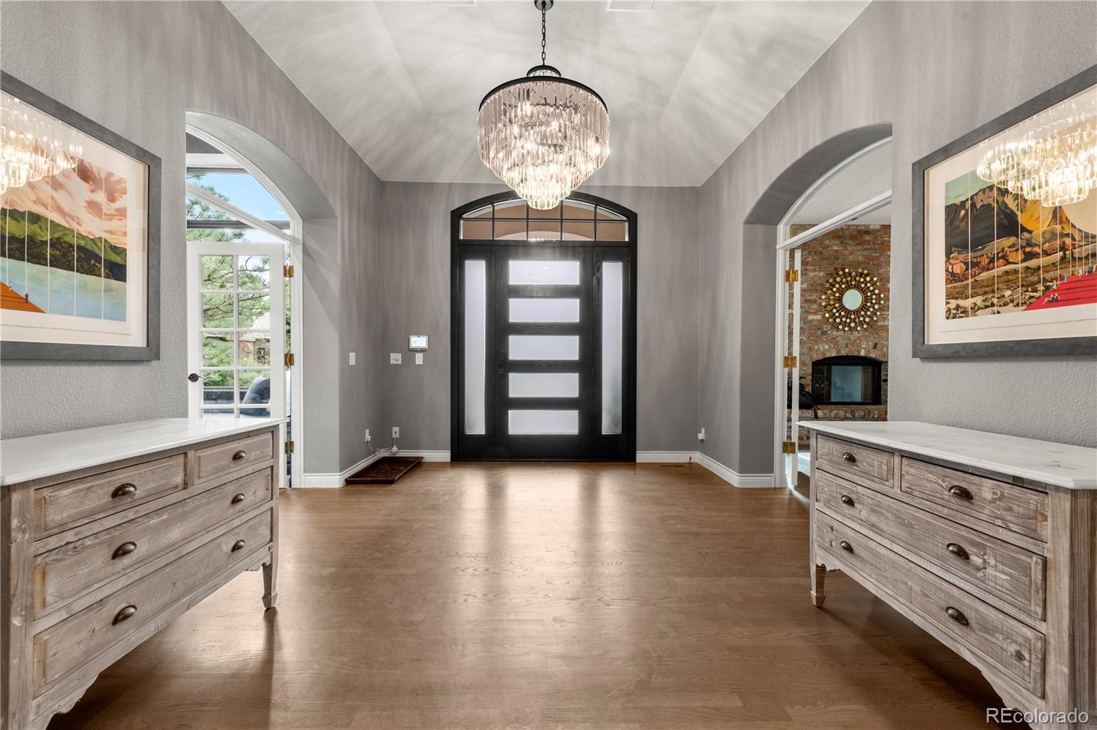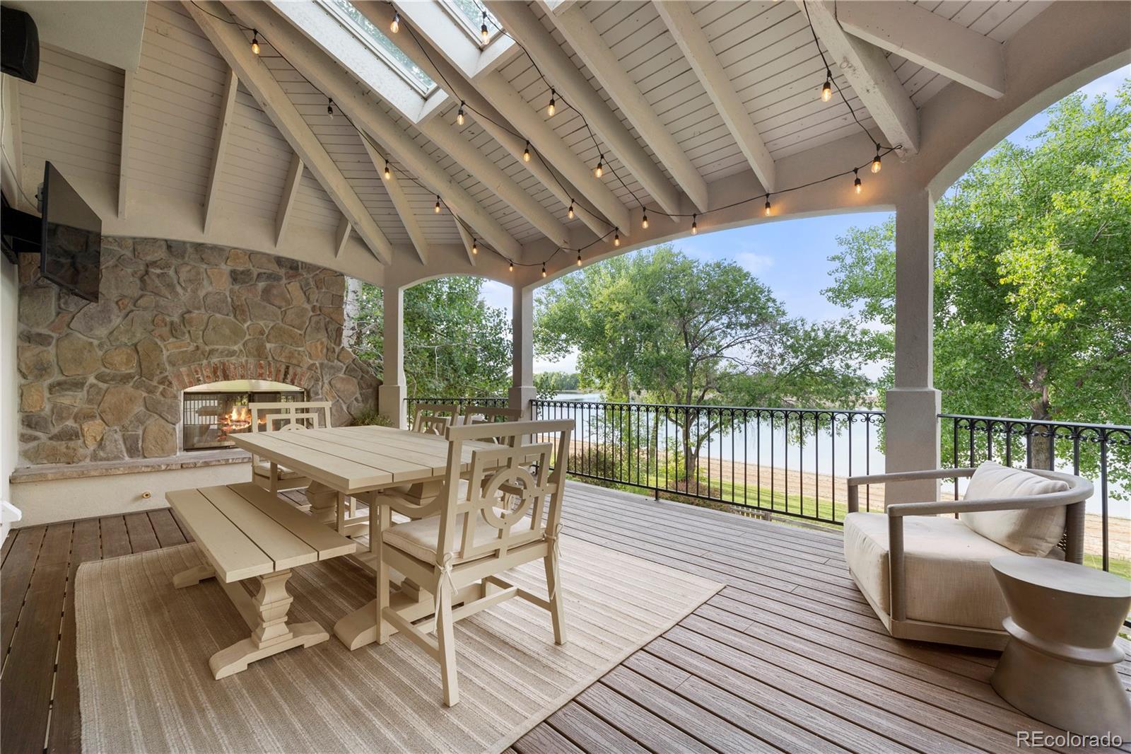 LUXURY LAKEFRONT LIVING. Nestled on a quiet corner in the prestigious Belvedere at Grant Ranch, 6533 W Prentice Ave is a one-of-a-kind, custom-built estate with views as remarkable as the home itself. Designed for flexible and elevated everyday living, it blends timeless architecture with modern comfort in one of the area’s most desirable communities. Set on a rare DOUBLE LOT with over 12,000 sq ft of living space, this home offers stunning LAKE and MOUNTAIN VIEWS, exceptional privacy, and direct backyard access to Bowles Reservoir—perfect for kayaking, paddle boarding, fishing, or peaceful mornings by the water. A spacious front lawn provides room to roam, while the backyard retreat features a cascading waterfall, hot tub, and brand-new upper deck, ideal for relaxing or entertaining in a true sanctuary setting. Inside, the GRAND LIBRARY makes a lasting first impression with 12-foot bookshelves and one of the home’s NINE FIREPLACES. The open kitchen and living room showcase the natural surroundings, with newly replaced and enlarged windows that frame panoramic views and flood the space with light. The MAIN-FLOOR PRIMARY SUITE includes a fireplace, private deck, spa-like bath and large closets. Upstairs, you’ll find four more bedrooms, a sun-drenched CRAFT ROOM with views stretching to Red Rocks, and a SPEAKEASY-STYLE LOUNGE and BAR with its own private entrance—an unexpected space to unwind or entertain in style. Throughout the home, select bookshelves and mirrors cleverly double as doors, offering a touch of mystery and access to HIDDEN ROOMS and passages. Downstairs, the walk-out basement features a private HOME THEATER, DANCE and FITNESS STUDIO, and flexible rooms for guests or hobbies. Additional highlights include a 4-car garage with EV charging, speaker and intercom systems, and central vacuum. Belvedere residents also enjoy access to a pool, tennis courts, clubhouse, and boat dock. This is more than a home, it’s a lifestyle you won’t find anywhere else.