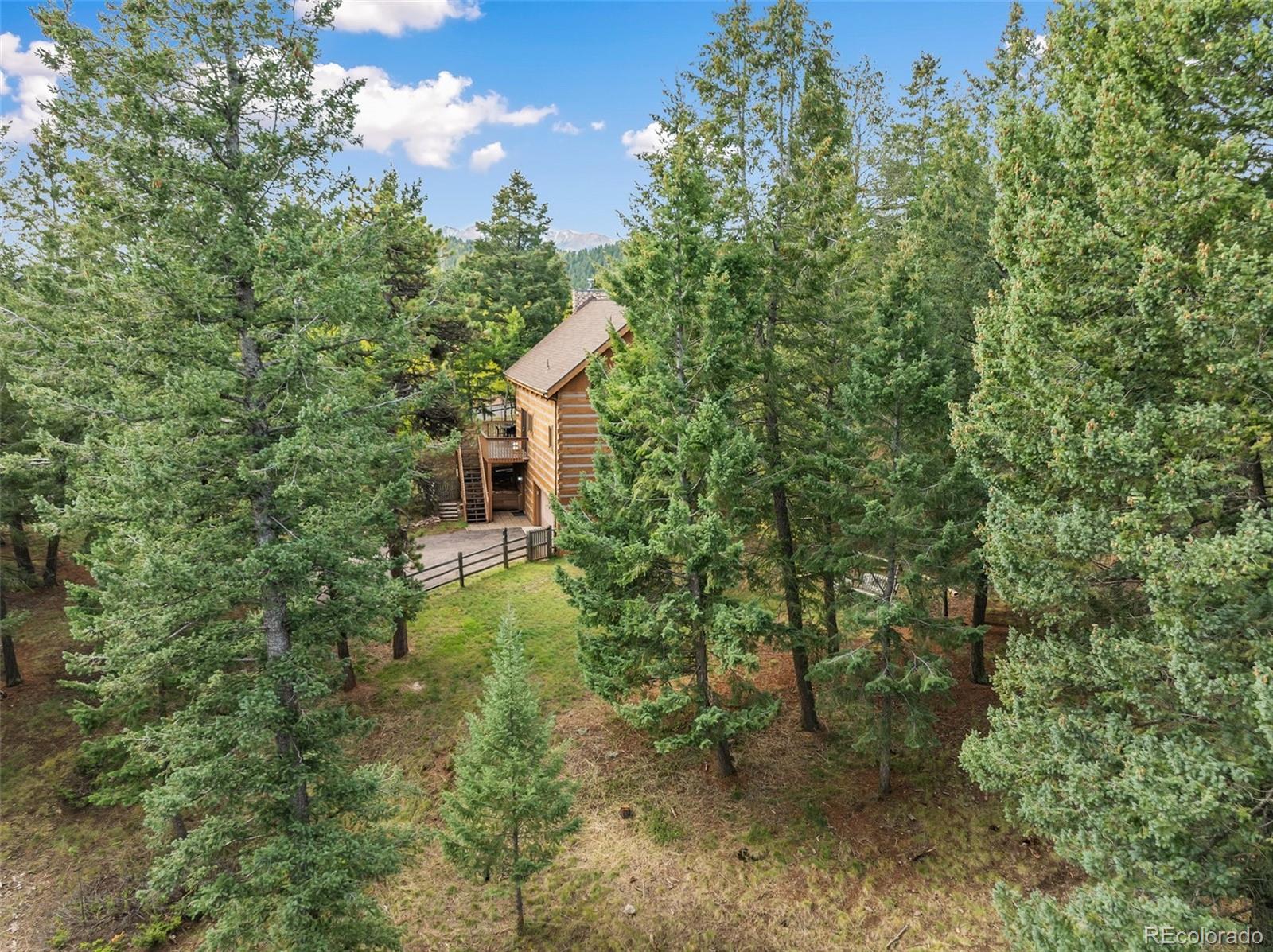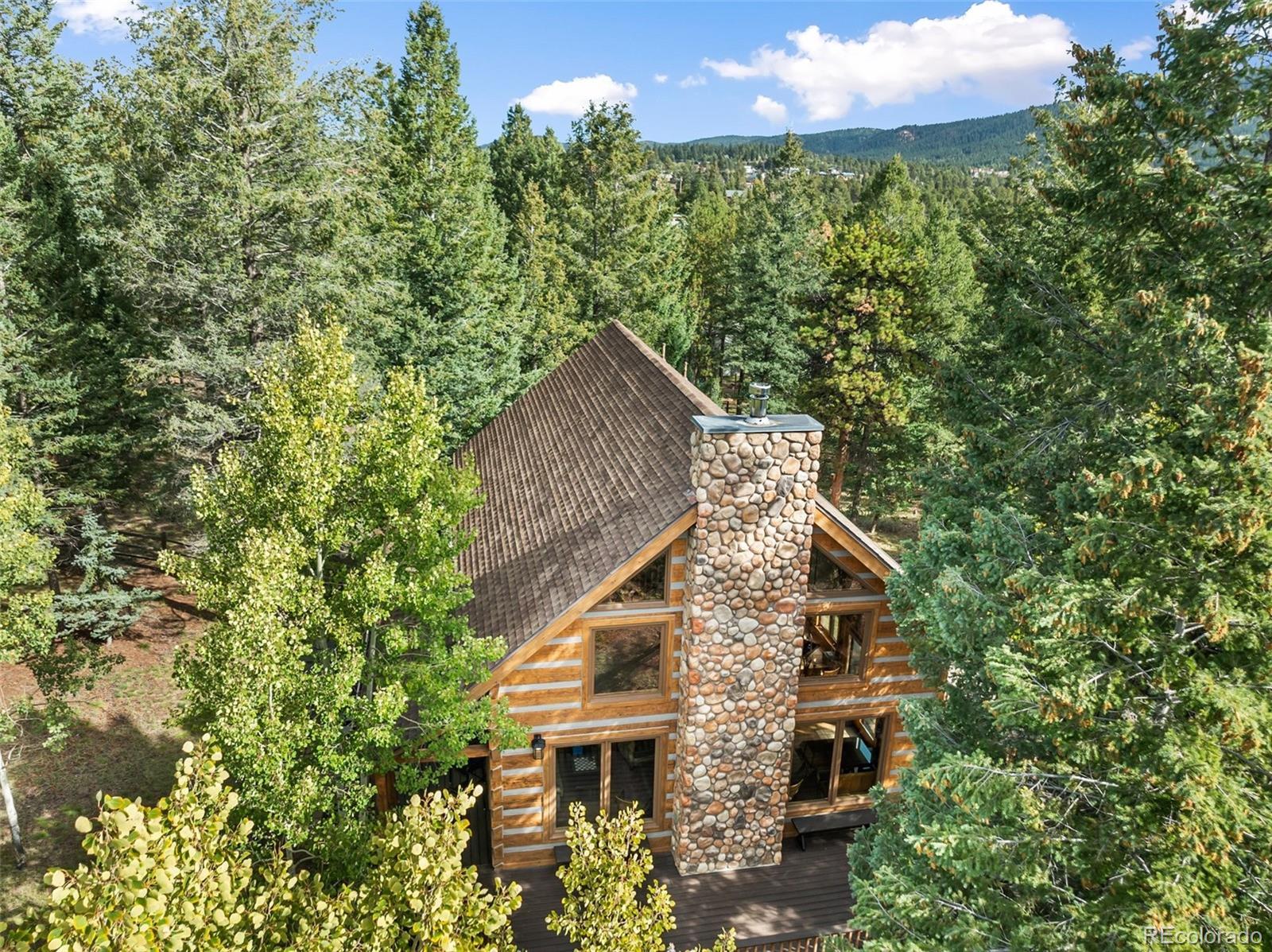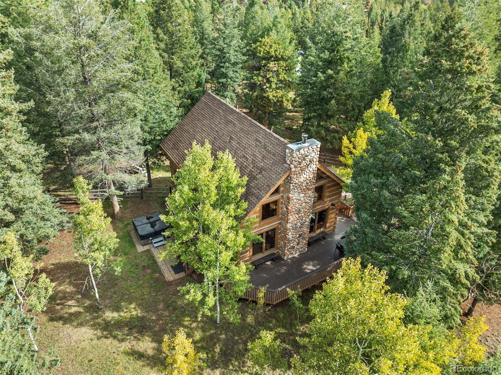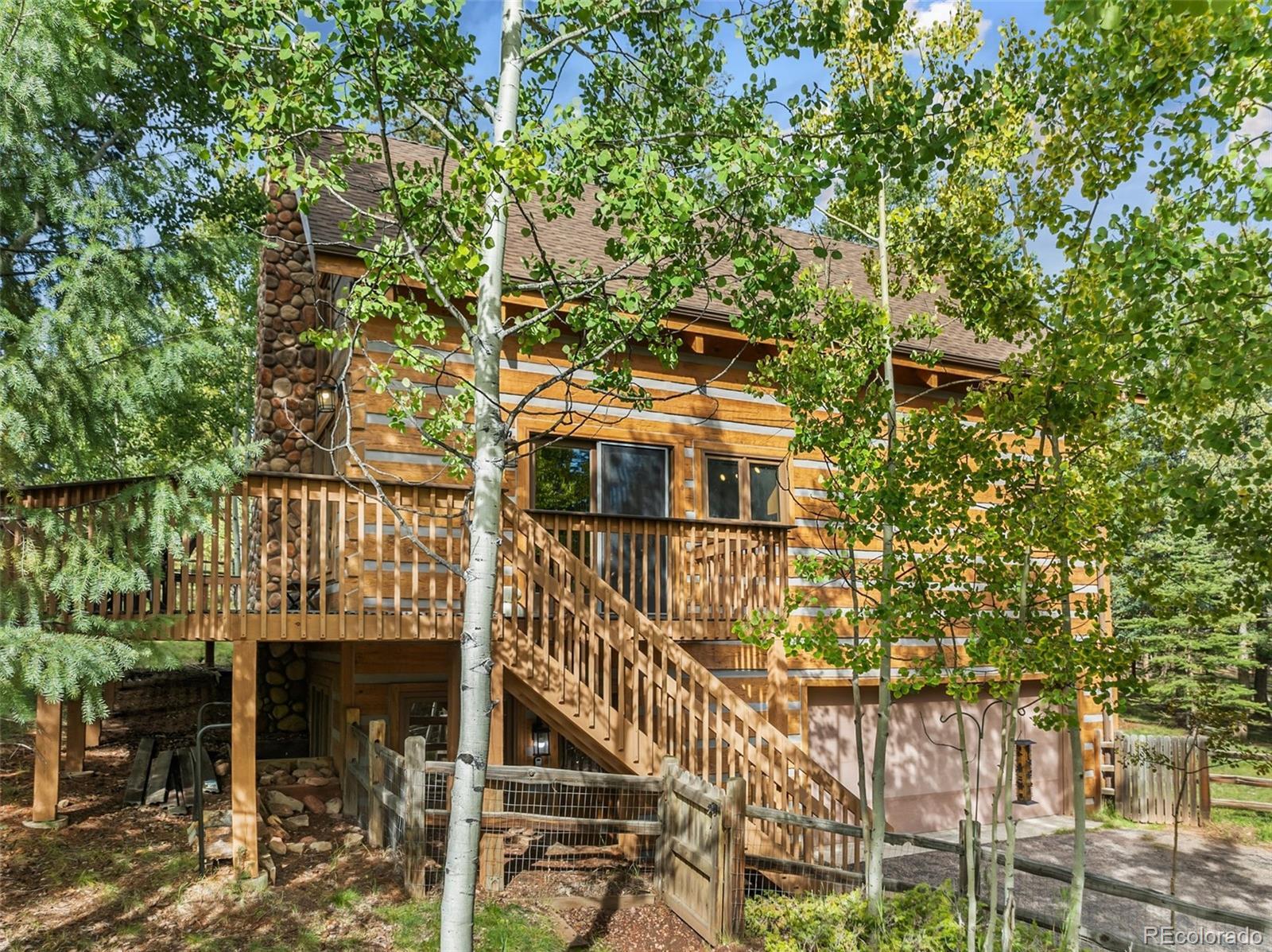Nestled amongst a mix of Aspens & Pines just minutes from Downtown Woodland Park, you’ll discover a truly unique property—a custom dove tail hand hewn log home that defines mountain living at its finest. This remarkable residence seamlessly marries the charm of a traditional log cabin with the convenience of modern amenities, offering a one-of-a-kind sanctuary for those seeking a convenient mountain escape. The open-concept living space features a magnificent stone fireplace, perfect for cozy evenings by the fire, vaulted tongue and groove ceilings and expansive windows that flood the space with natural light. The interior exudes genuine rustic elegance. This 3-bedroom, 3-bathroom home offers an unparalleled blend of comfort and nature. Outside you’ll enjoy a large wrap around composite deck, hot tub, and a fully fenced in .97-acre lot for pets and family members. Florissant Fossil Beds National Monument, Dome Rock State Park, Mueller State Park, and National Forest are all within a 30-minute drive for your weekend adventures. Fishing at 11 Mile Reservoir, Spinney, and the "Dream Stream" are all within a 45-minute drive. Skiing at Breckenridge is just under 2 hrs. away. Make this your home in the mountains today!