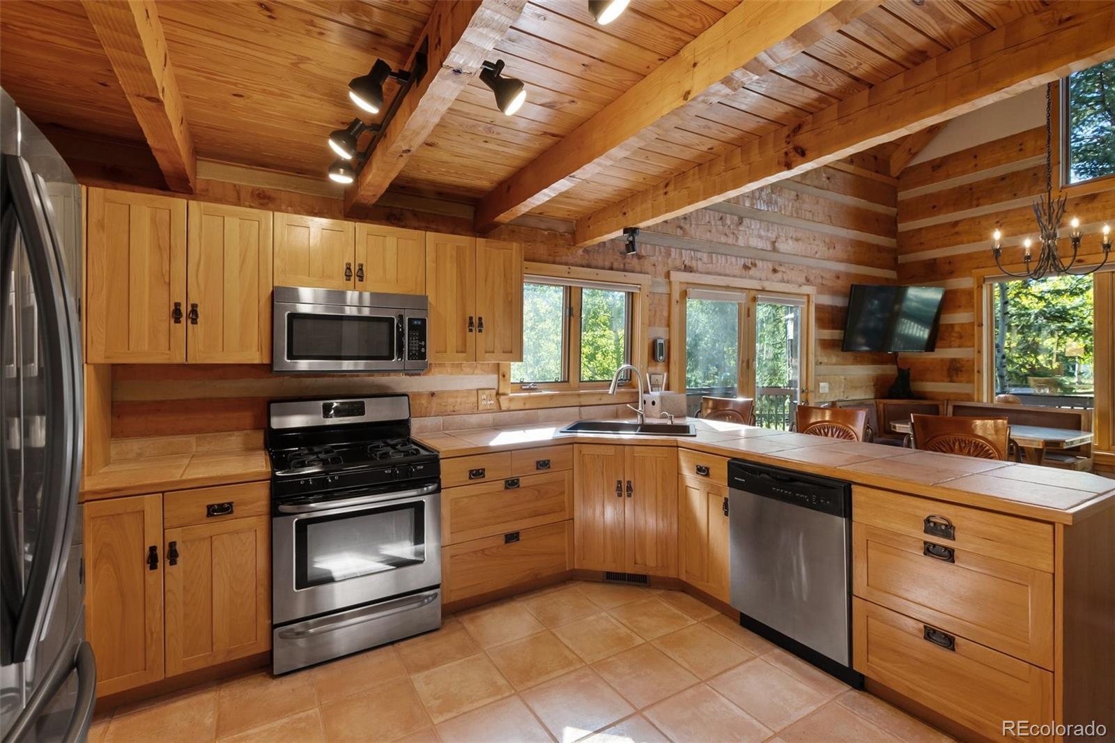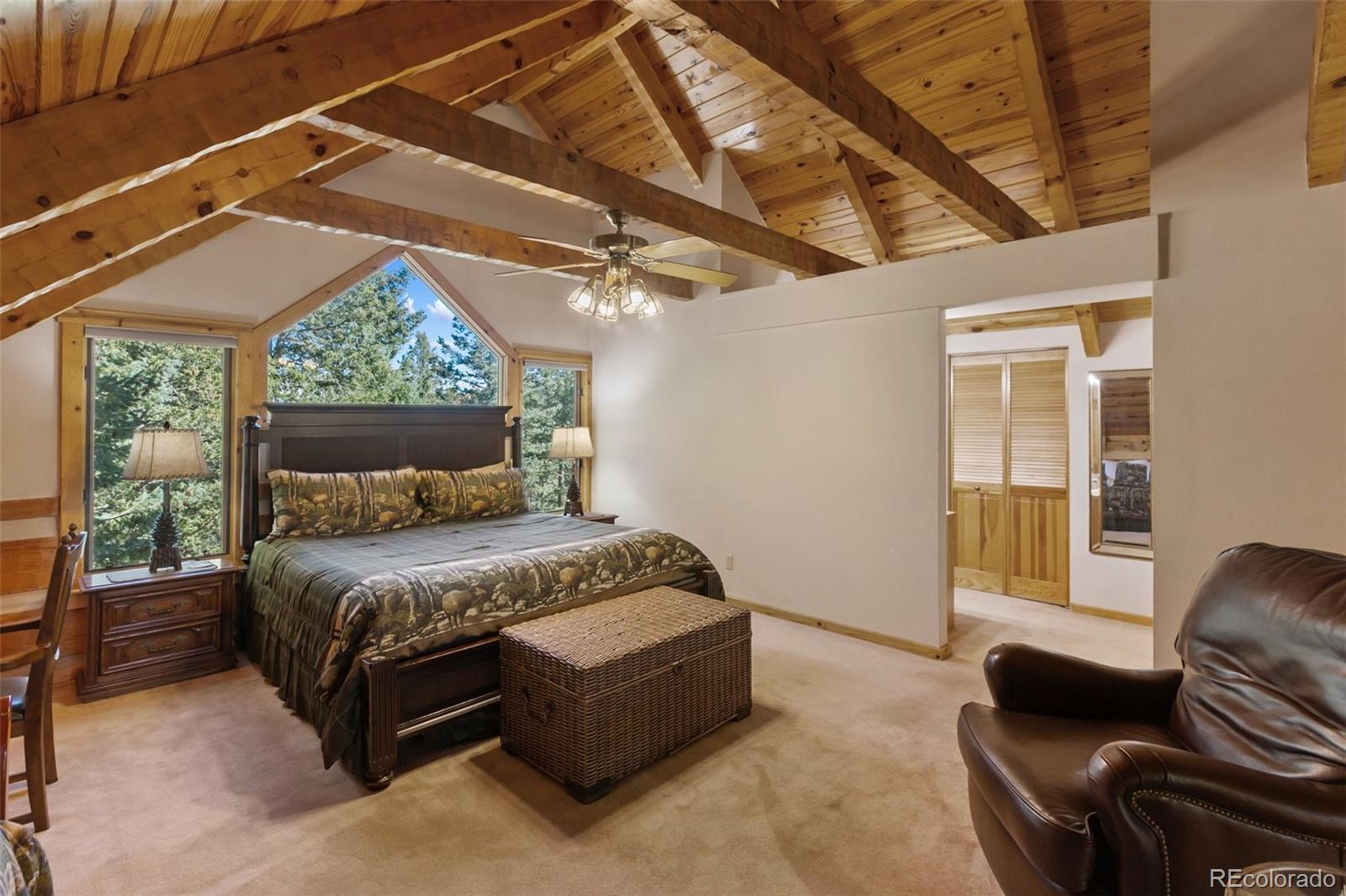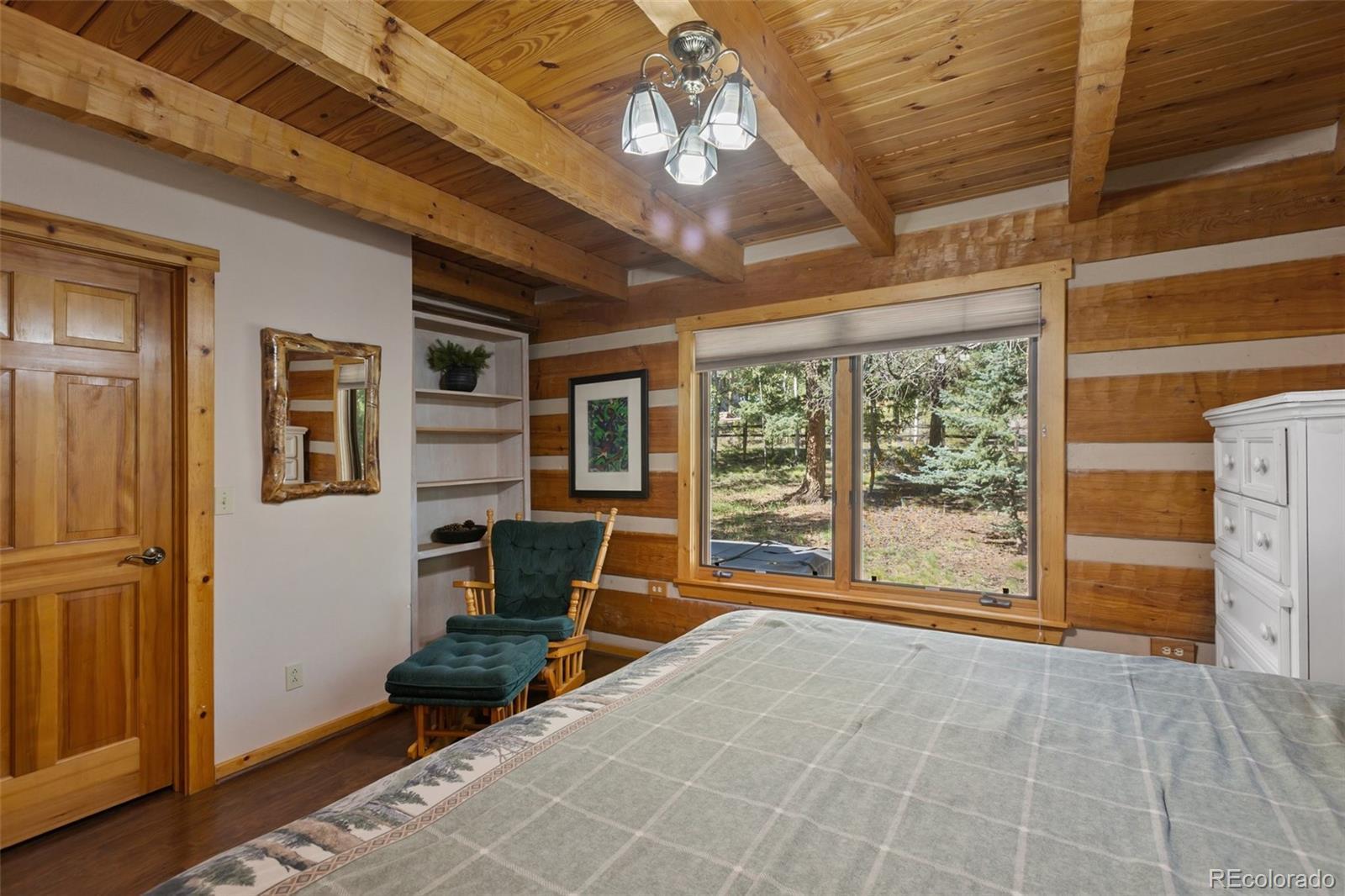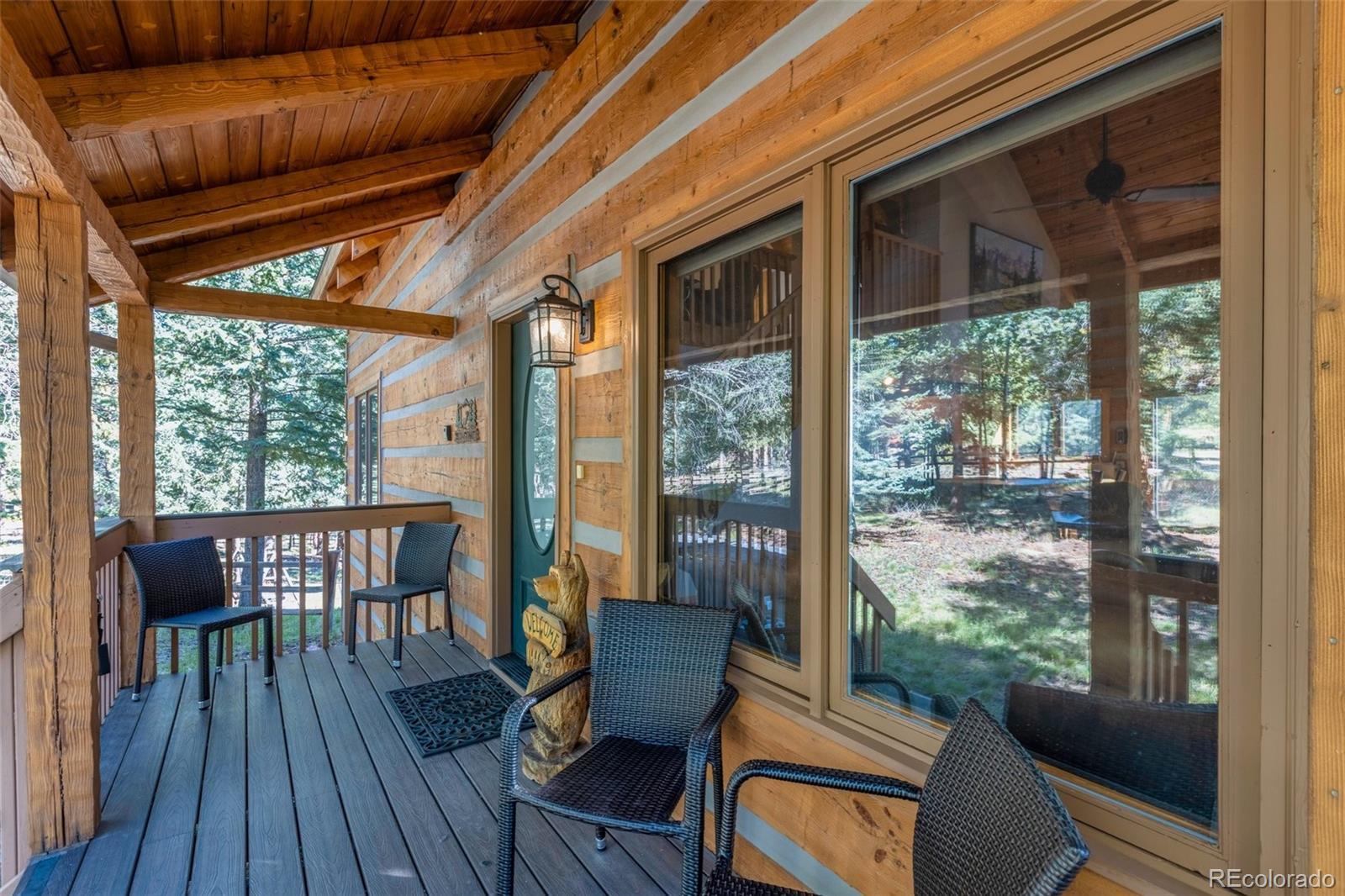 Nestled amongst a mix of Aspens & Pines just minutes from Downtown Woodland Park, you’ll discover a truly unique property—a custom dove tail hand hewn log home that defines mountain living at its finest. This remarkable residence seamlessly marries the charm of a traditional log cabin with the convenience of modern amenities, offering a one-of-a-kind sanctuary for those seeking a convenient mountain escape. The open-concept living space features a magnificent stone fireplace, perfect for cozy evenings by the fire, vaulted tongue and groove ceilings and expansive windows that flood the space with natural light. The interior exudes genuine rustic elegance. This 3-bedroom, 3-bathroom home offers an unparalleled blend of comfort and nature. Outside you’ll enjoy a large wrap around composite deck, hot tub, and a fully fenced in .97-acre lot for pets and family members. Florissant Fossil Beds National Monument, Dome Rock State Park, Mueller State Park, and National Forest are all within a 30-minute drive for your weekend adventures. Fishing at 11 Mile Reservoir, Spinney, and the "Dream Stream" are all within a 45-minute drive. Skiing at Breckenridge is just under 2 hrs. away. Make this your home in the mountains today!