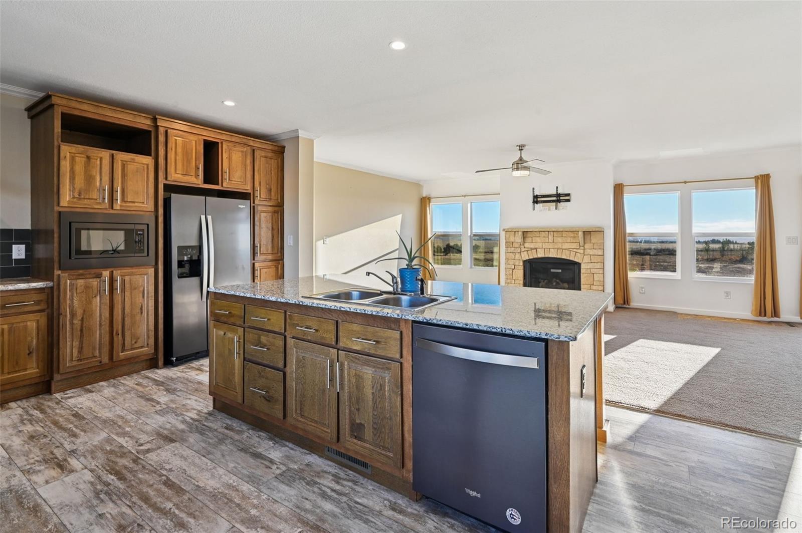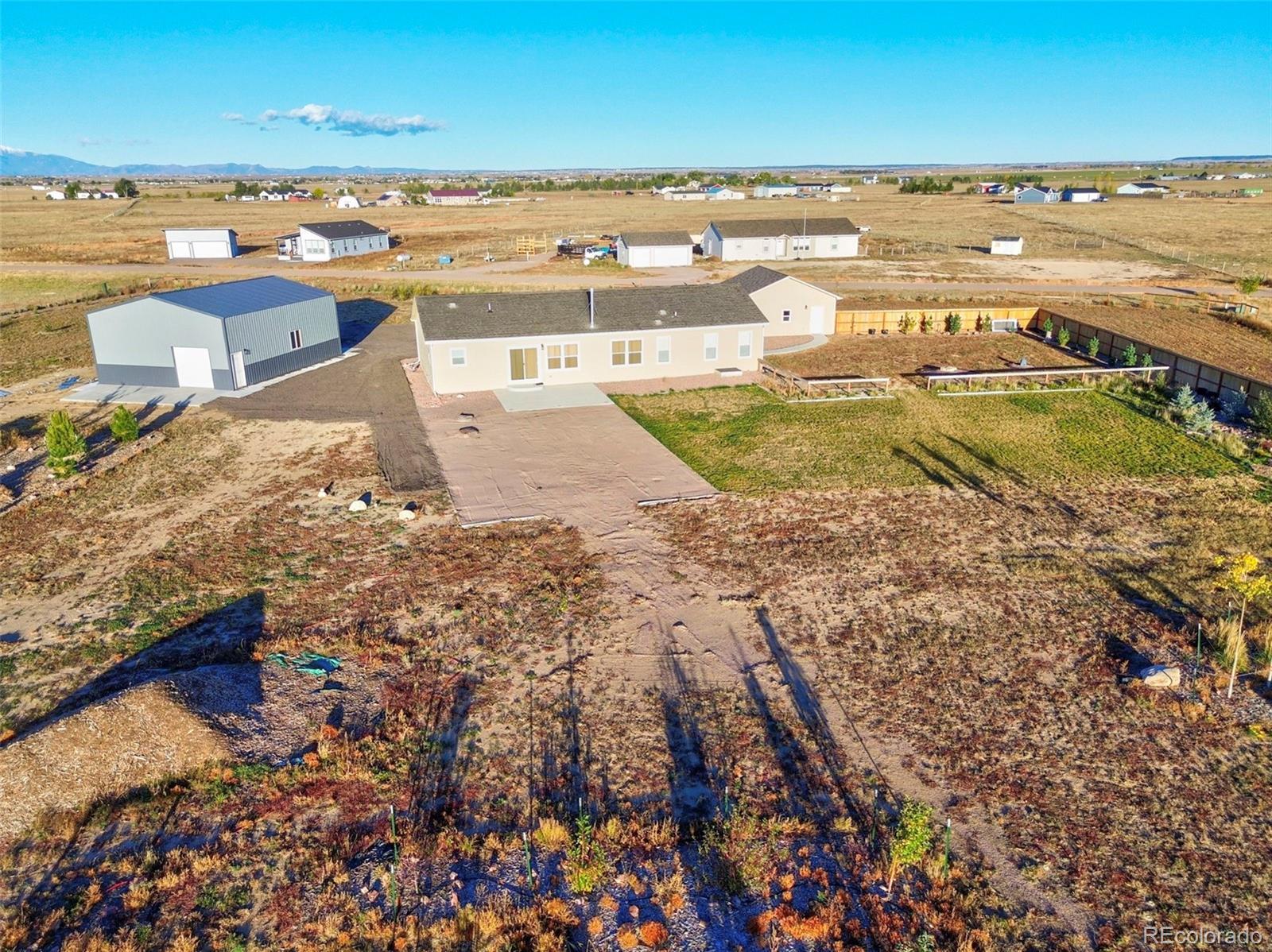 Breathtaking 5 ACRE rural property zoned for horses with views as expansive as the eye can see. This is a manufactured home built ADA compliant with two large detached garages with RV capacity. Driving up to the home an automatic solar gate with remote control provides access. The home and property have been well taken care of with attention being paid to the surrounding landscaping with a well manicured grass area, several sapling trees, bushes, and fences placed for privacy behind the home and along the property line. The home itself impress from the moment you walk in the front entryway beckons you in with a built in front table and coat storage closet. The home opens into the living and kitchen area that flows seamlessly together and basked in natural light flowing through the picturesque windows. The living room has a gas fireplace, perfect for those colder Colorado nights. The kitchen boasts a barstool height center island, gorgeous cabinetry and counter tops with ample storage and space, upgraded appliances, and space for a breakfast table. The home has four bedrooms with the primary being on one side of the home creating a private oasis with ensuite bath and walk in closet. The bath features a gorgeous modern tub, double vanity, and spacious stand alone shower. Across the living space are bedrooms two, three, and four that are all spacious and share a full bath with double vanity. Just outside the rooms is a built in desk perfect for a homework station or a space for the at home worker. Just beyond the bedrooms is a large laundry room. This home is pristine and while the home is more rural it provides ease of access to Shriever AFB, Falcon, and an easy drive into Colorado Springs.