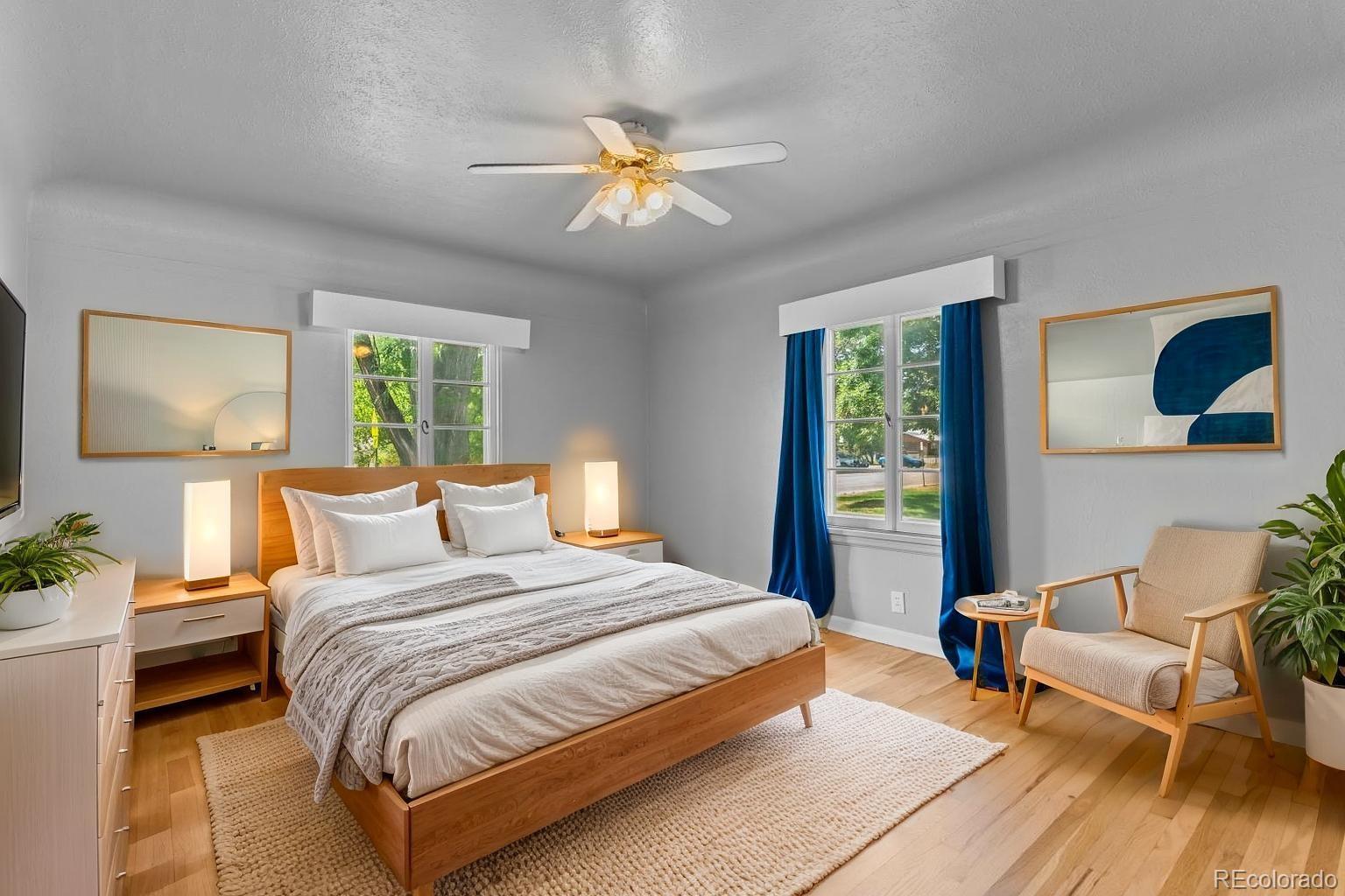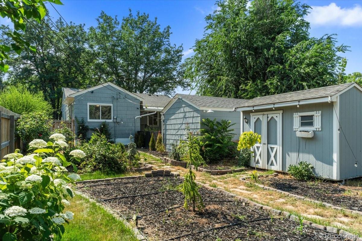 BACK ON THE MARKET DUE TO BUYERS JOB LOSS! AMAZING VALUE - Now is your chance! Step into timeless charm with this beautifully updated 1948 bungalow nestled in the heart of Historic Old Town Loveland just minutes from Lake Loveland, Downtown shopping, dining & multiple parks & trails. Located on a spacious west-facing corner lot, this home blends original character with thoughtful, modern upgrades throughout. Inside, you'll find bright, open spaces with vintage touches, hardwood floors, and welcoming kitchen and baths. The expansive finished basement offers versatile living space including a built-in theatre, plus ample room for storage or hobbies. Outside, the fully fenced yard with mature landscaping creates a private oasis perfect for entertaining, relaxing, or letting pets roam. The detached garage, storage buildings and bedding areas full of perennials and specimen plantings offer plenty of opportunities for the avid gardeners. Location, Location! Just a short stroll from Loveland's vibrant downtown-walk to breweries, restaurants, art galleries, the Rialto Theater, Foundry Plaza, and Foote Lagoon. Newer: A/C, roof, landscaping, appliances, light fixtures and more! Call today to set up your showing on this beautiful Downtown Gem!