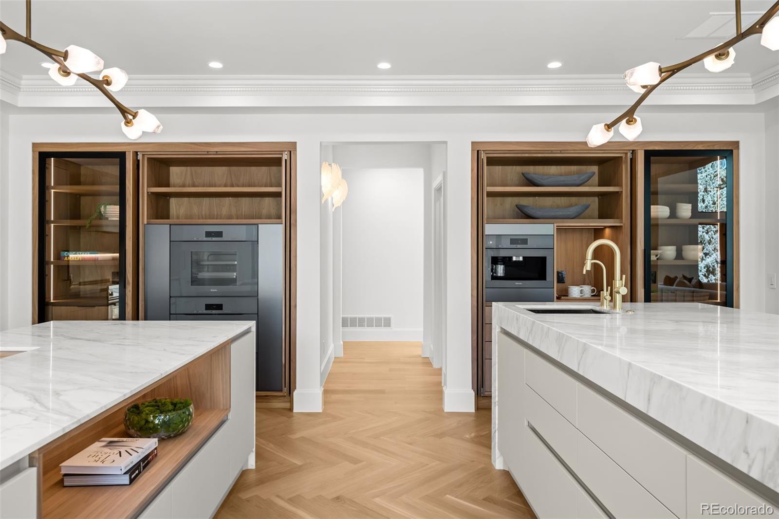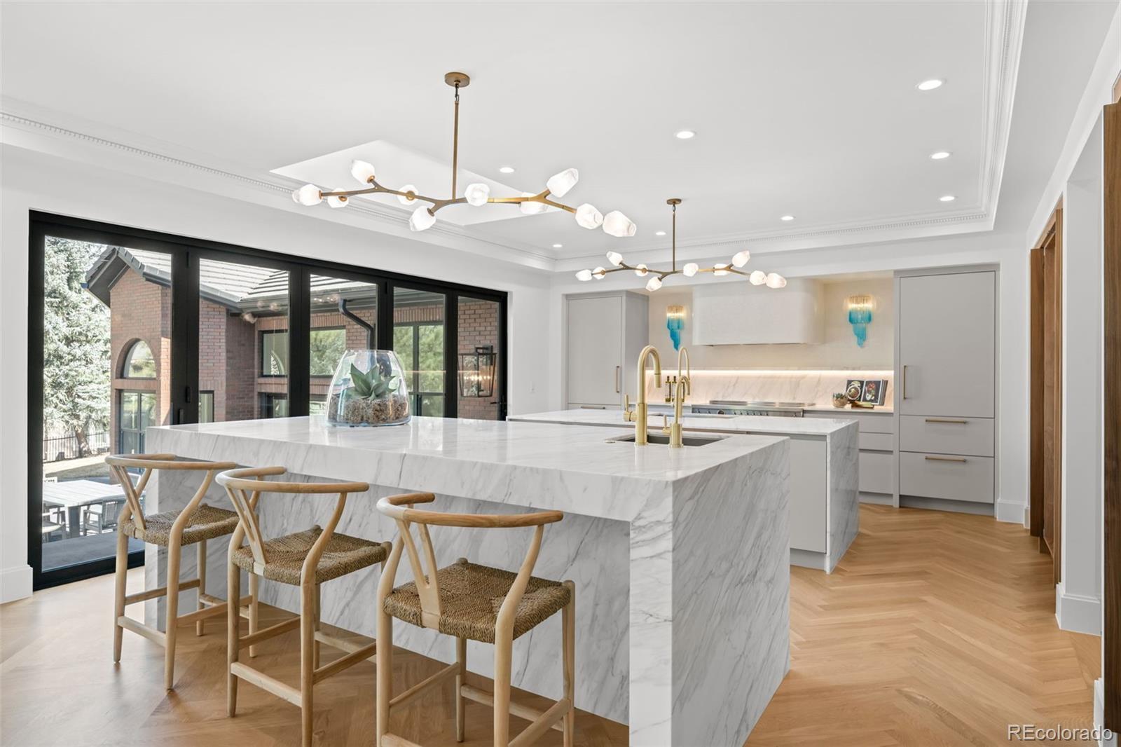 Set on nearly an acre in the heart of prestigious Cherry Hills Village, 2215 Cherry Hills Farm Drive is a masterfully restored brick estate, reimagined through a multimillion-dollar renovation. Blending timeless architecture with refined transitional design, the home features intentional craftsmanship, curated finishes, and meticulous attention to detail. Spanning 6 bedrooms and 7 baths, the luminous, open-concept main level accommodates grand entertaining and daily living. Custom millwork, layered textures, designer lighting, and a sophisticated palette create cohesive warmth and understated luxury. The chef’s kitchen features fully custom frameless cabinetry by Andrea Schumacher Interiors in bleached walnut with velvet-matte textures and metal-framed bronze glass accents. Honed marble surfaces complement Sub-Zero refrigeration, Miele built-ins, Bertazzoni induction cooking, and a walk-in pantry. Pella Reserve and Impervia windows and doors enhance natural light, while a Bonelli multi-panel bi-fold door opens to outdoor living. Two luxe main-floor offices can also be found. Upstairs, three en suite bedrooms complement a serene primary retreat with boutique dressing spaces by California Closets and a spa-caliber bath in Calacatta Bluette marble, bespoke walnut cabinetry, steam shower, and heated floors. The lower level rivals a private club with a full kitchen/bar, theater with surround sound, beverage center, recreation lounge with gas fireplace, fitness studio, and guest suite. A 2,000-square-foot bonus wing, now an indoor pool and spa, offers potential for a wellness pavilion, sport court, or additional living quarters. Extensive upgrades include HVAC, water heaters, drainage/irrigation, exterior flatwork, masonry restoration, and a Control4 smart-home system with integrated lighting, audio, prewired window coverings, automated blinds, and theater. This incredible property is bordering Woody Hollow Park and within Cherry Creek School District