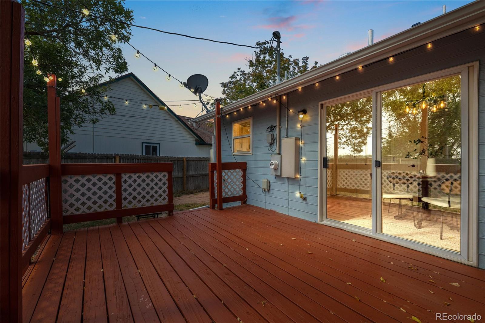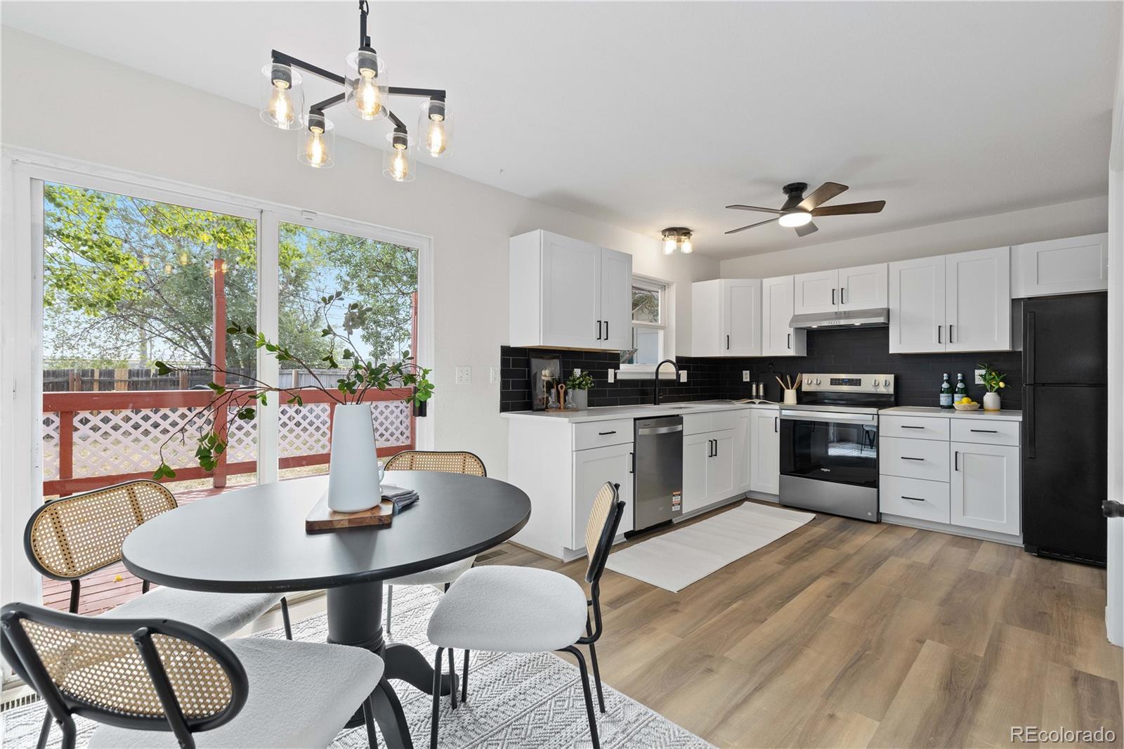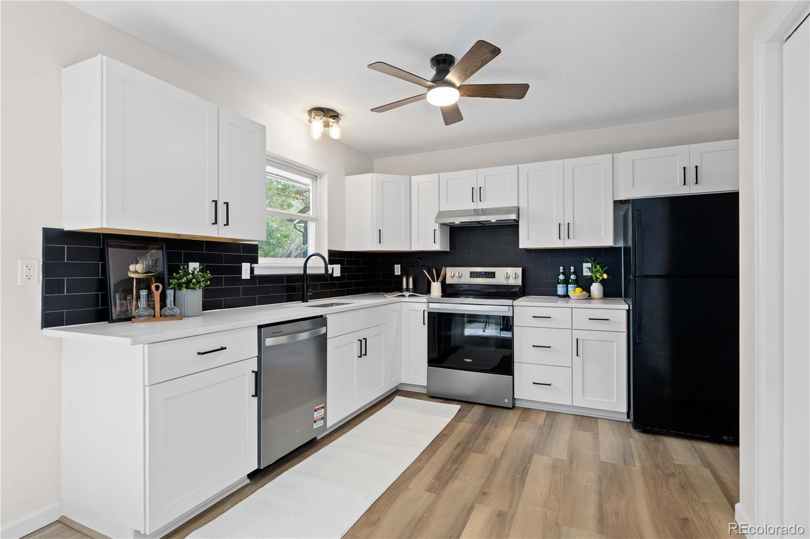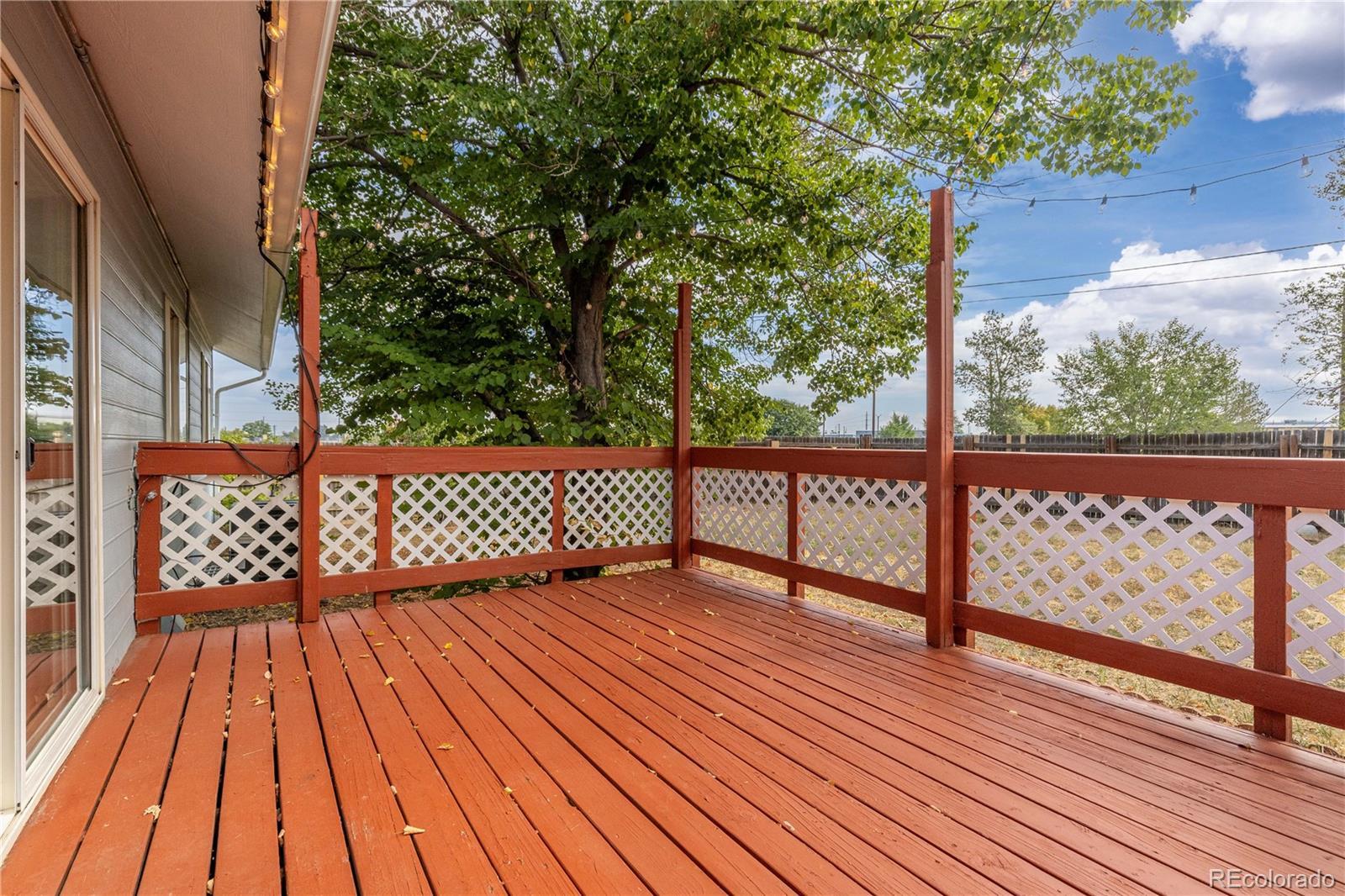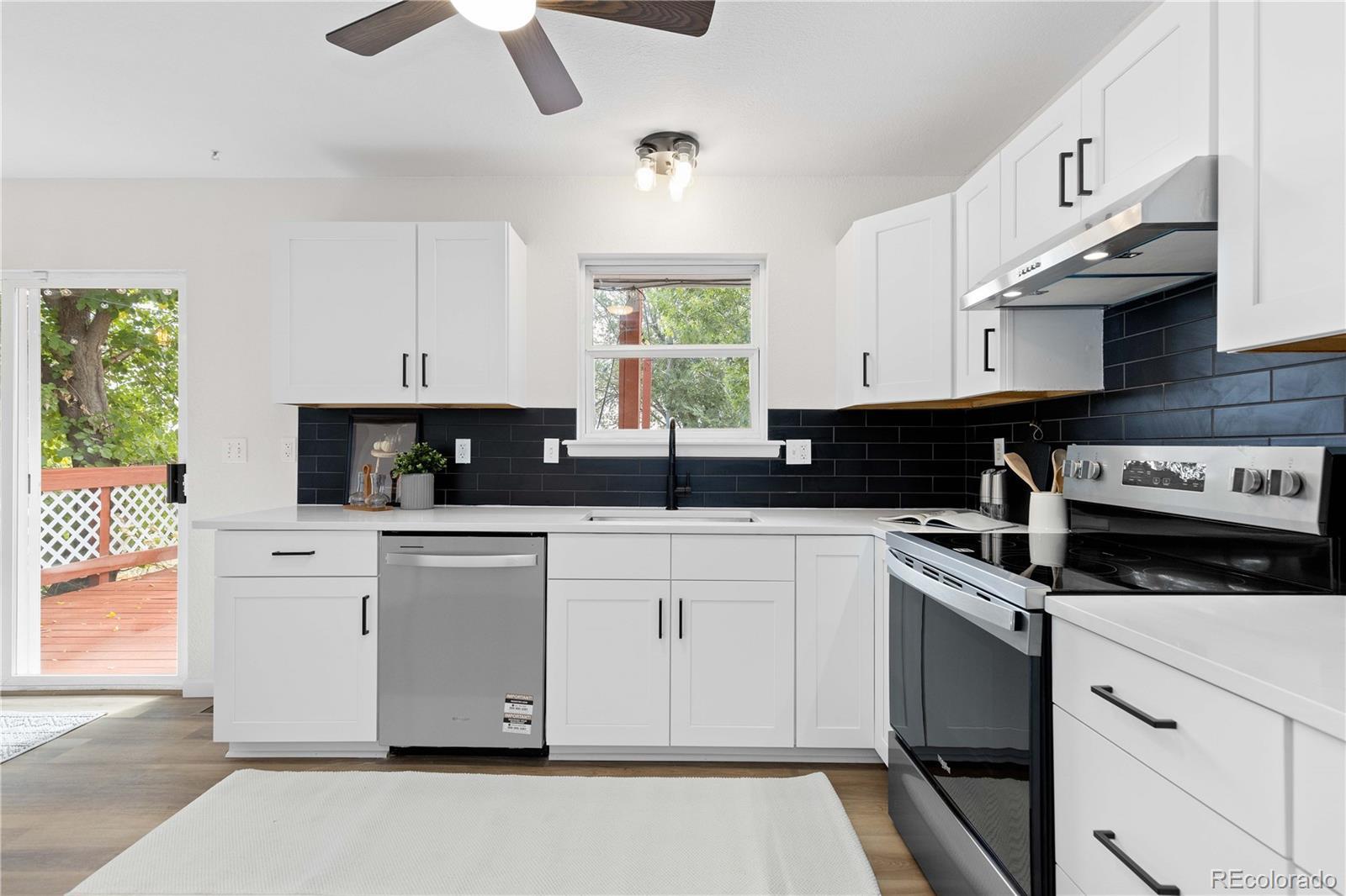Completely remodeled ranch-style home featuring a fresh, clean feel with beautiful neutral LVP flooring and modern fixtures throughout. The spacious main level offers three bedrooms, all with ceiling fans and ample natural lighting, creating a bright and comfortable living environment. The brand-new kitchen shines with quartz countertops, stainless steel appliances, and contemporary finishes, making it the perfect space for cooking and entertaining. Vaulted ceilings in the living room add to the open and airy atmosphere. An unfinished basement with egress windows offers tremendous potential for future expansion. Situated on a large corner lot, the home boasts a large deck and a huge backyard, ideal for creating your personal outdoor oasis. Enjoy the convience of an attached 2 car garage that provides plenty of storage. The supportive neighborhood is enhanced by a mini-wildlife area right across the street and close proximity to the scenic Sand Creek Trail, perfect for outdoor enthusiasts. This move-in-ready home combines comfort, style, and functionality with room to grow, all in a great community setting!