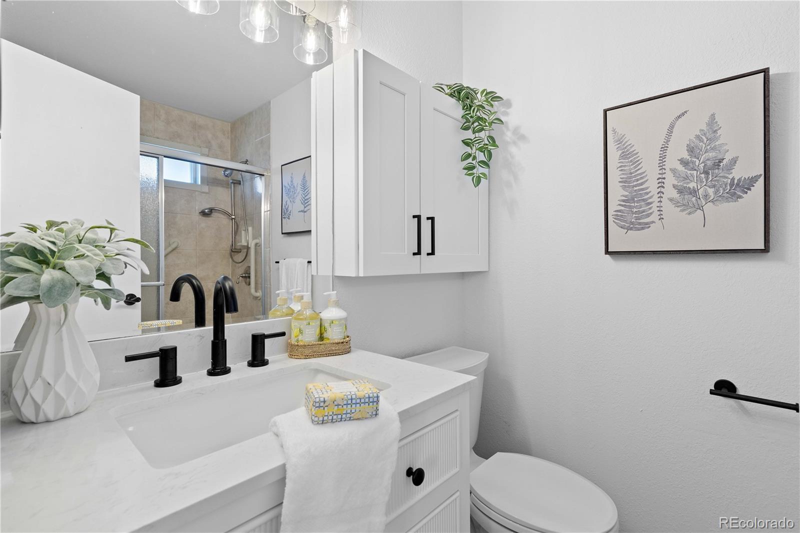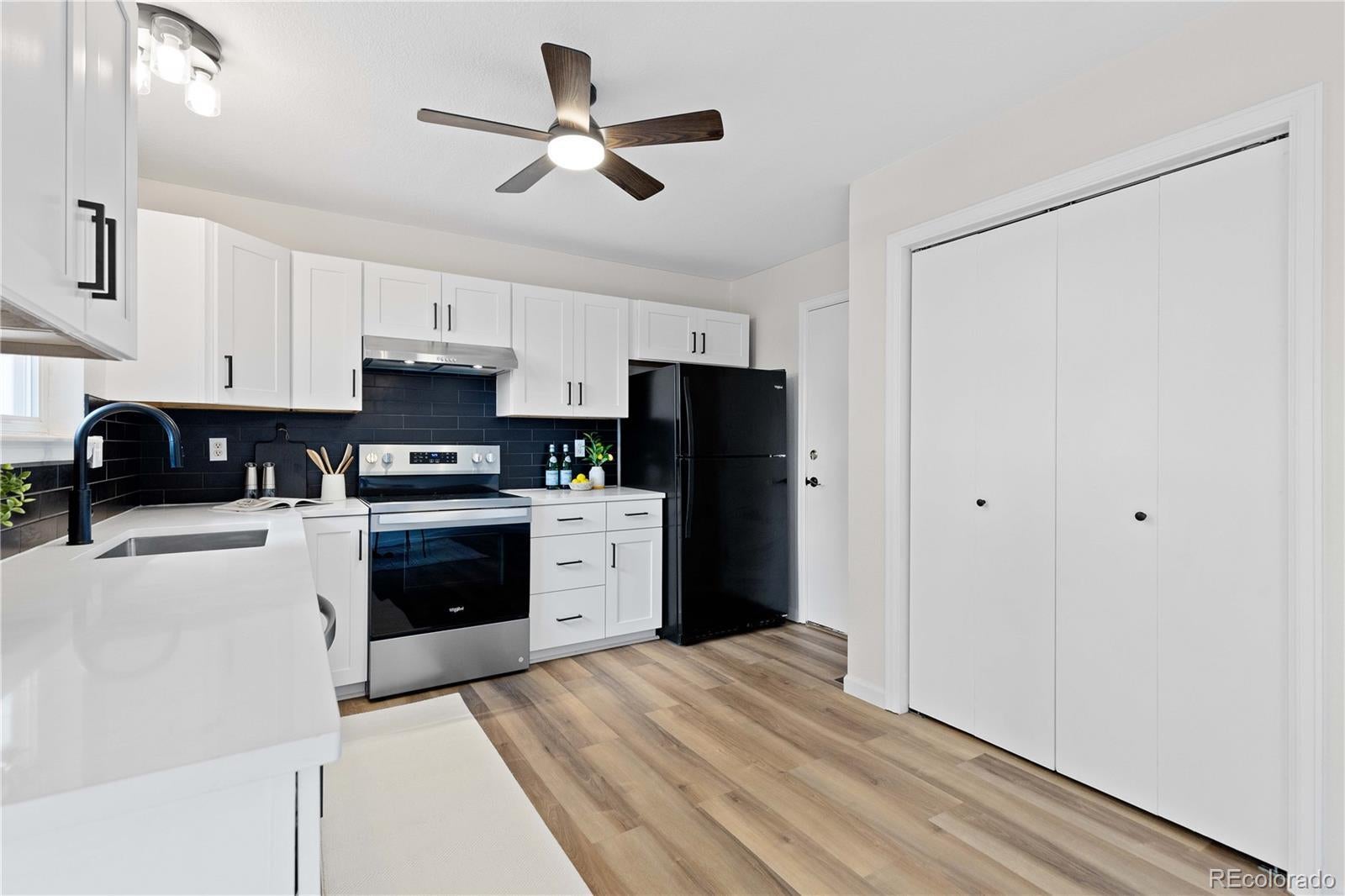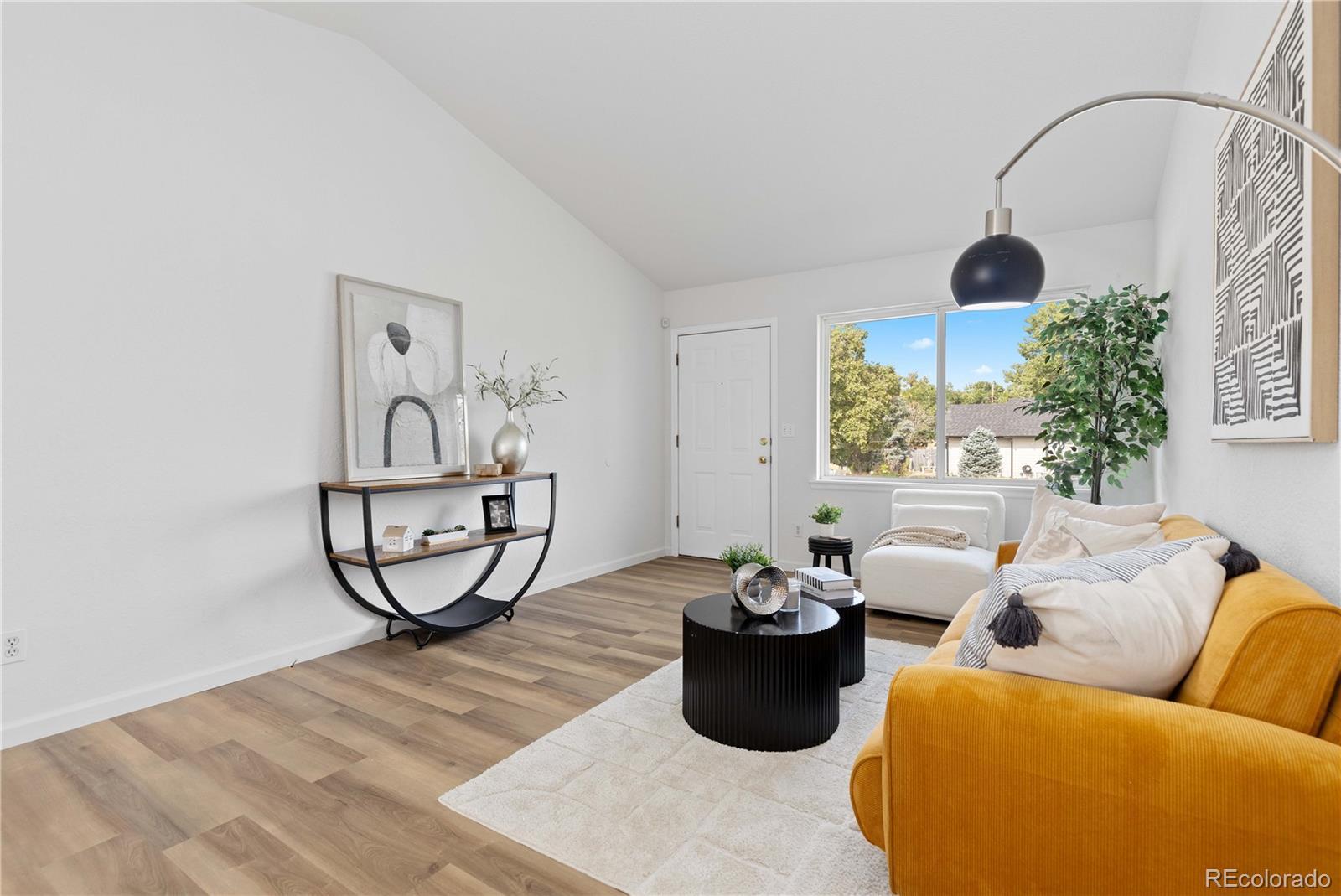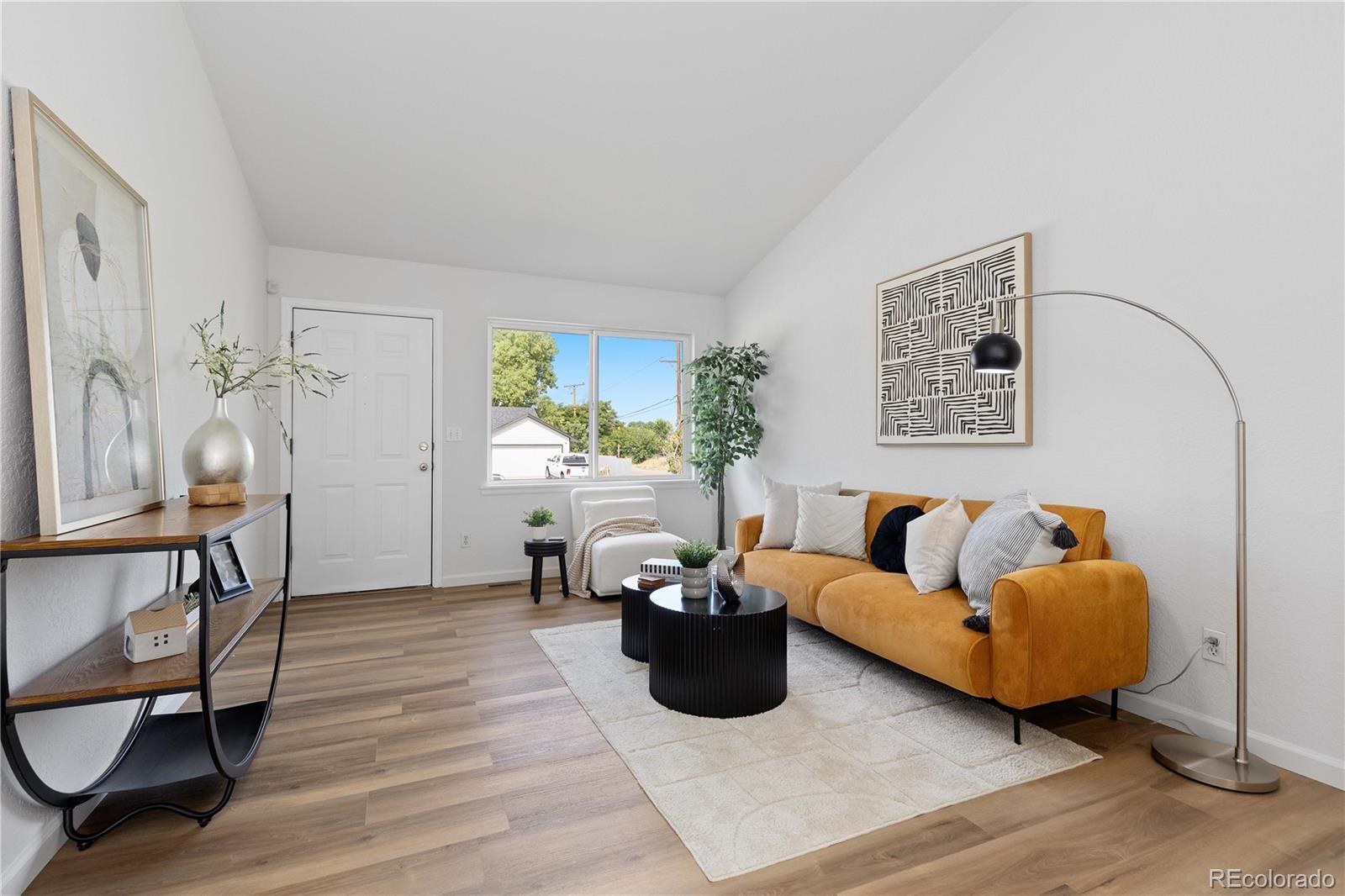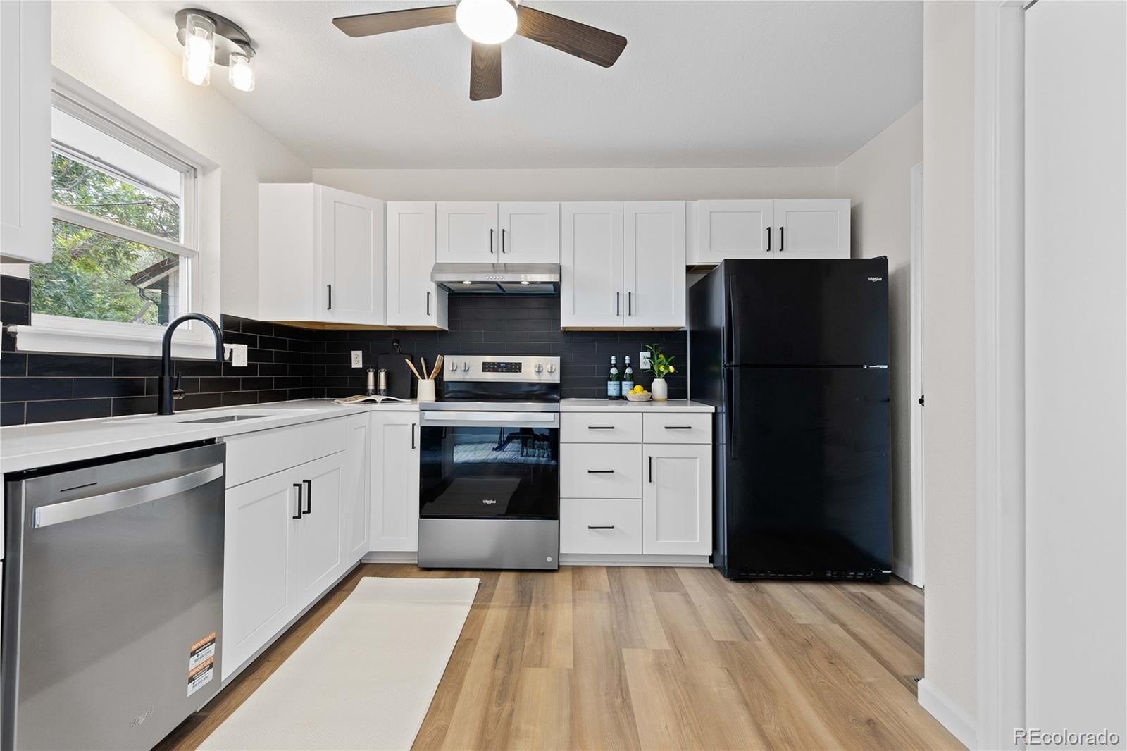 Completely remodeled ranch-style home featuring a fresh, clean feel with beautiful neutral LVP flooring and modern fixtures throughout. The spacious main level offers three bedrooms, all with ceiling fans and ample natural lighting, creating a bright and comfortable living environment. The brand-new kitchen shines with quartz countertops, stainless steel appliances, and contemporary finishes, making it the perfect space for cooking and entertaining. Vaulted ceilings in the living room add to the open and airy atmosphere. An unfinished basement with egress windows offers tremendous potential for future expansion. Situated on a large corner lot, the home boasts a large deck and a huge backyard, ideal for creating your personal outdoor oasis. Enjoy the convience of an attached 2 car garage that provides plenty of storage. The supportive neighborhood is enhanced by a mini-wildlife area right across the street and close proximity to the scenic Sand Creek Trail, perfect for outdoor enthusiasts. This move-in-ready home combines comfort, style, and functionality with room to grow, all in a great community setting!