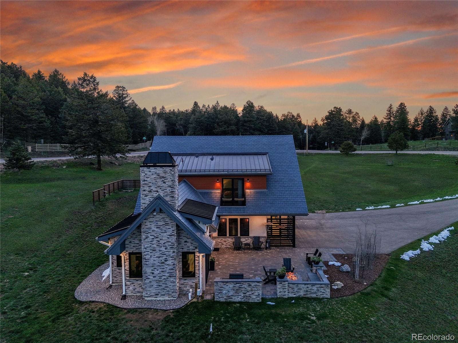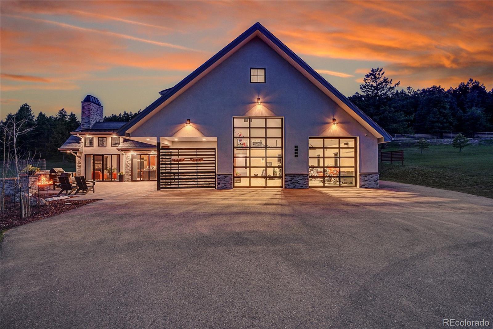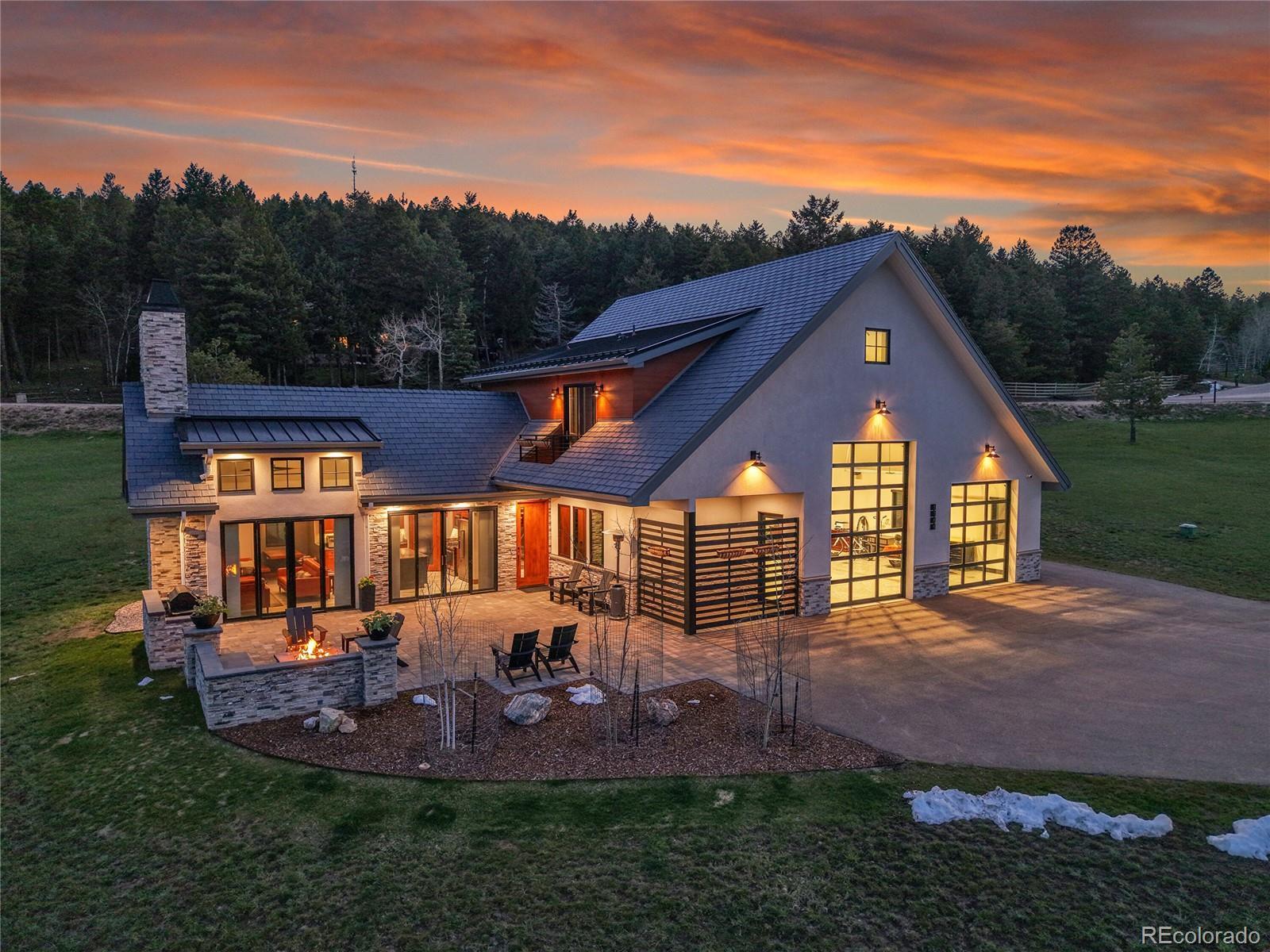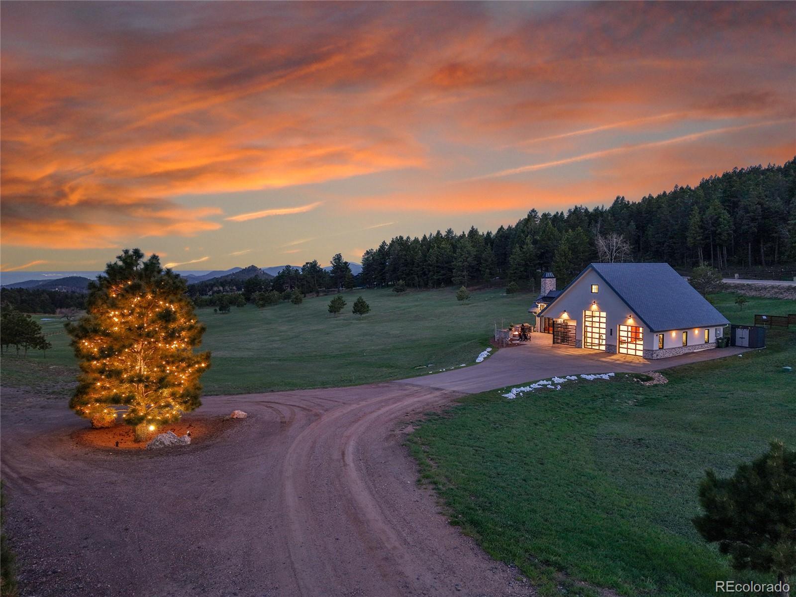Discover 8.54 acres of park-like, usable land with sweeping mountain and city views—ideally located with county-maintained, paved road access. SIGNATURE FEATURES: 1,199 sq ft PLUS 1,199 sq ft garage - oversized finished garage; NEWER build designed to meet modern fire prevention standards, featuring a fire suppression system and hardened exterior materials; CUSTOM maple doors, maple cabinets and trim complement vaulted ceiling(s) and a striking stone fireplace. PROPERTY HIGHLIGHTS: Modern 2 bedroom/2 bath home on 8.54 acres in Bear Mountain Vista – ideal for buyers seeking space, style, and future potential. Vaulted ceilings, stone fireplace, quartzite kitchen counters, and expansive outdoor living with built-in seating, gas fire pit, and a custom stone gas grill alcove. The oversized garage mirrors the square footage of the home and is equally impressive, offering finished interior space, radiant heat, hot and cold water with (2) floor drains. Designed for future ADU conversion this home offers stylish, move-in-ready living while you explore the property's full potential—whether you simply want to enjoy the land and home as is, build your dream mountain estate, enjoy it as a private retreat or guest house, or considering subdivision opportunities). A 7-bedroom septic system and electric are in place, supporting future development. Preliminary plans for a 5,400+ sq ft main residence are also included, offering a head start on your vision. (All development and land use subject to county and state approval). 5166 Bear Mountain Drive delivers an exceptional blend of readiness, versatility, and natural beauty—all just minutes from Evergreen’s charming town center and endless outdoor recreation. Live, build, and thrive in Colorado’s mountain lifestyle. Property website can be viewed at: https://v1tours.com/listing/56960/