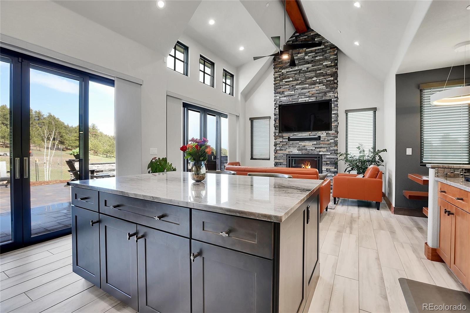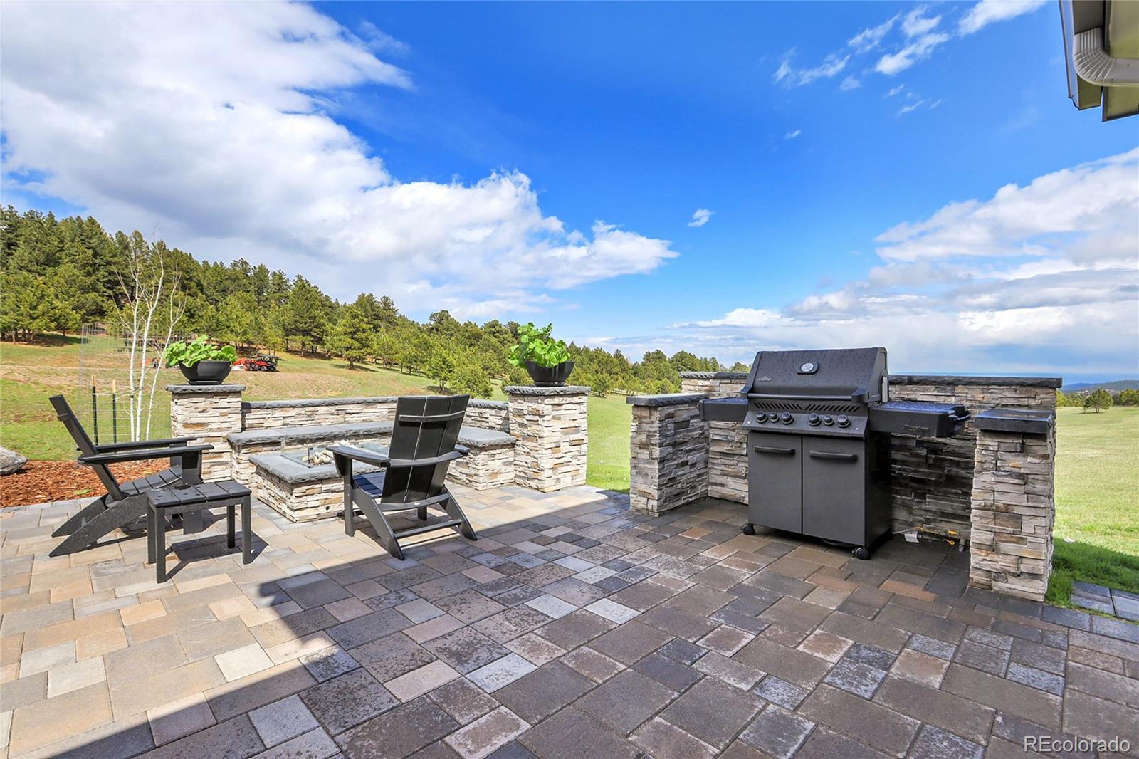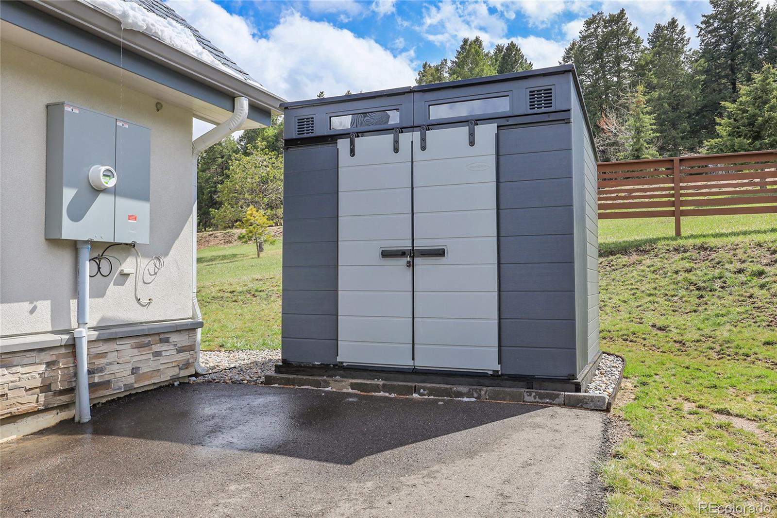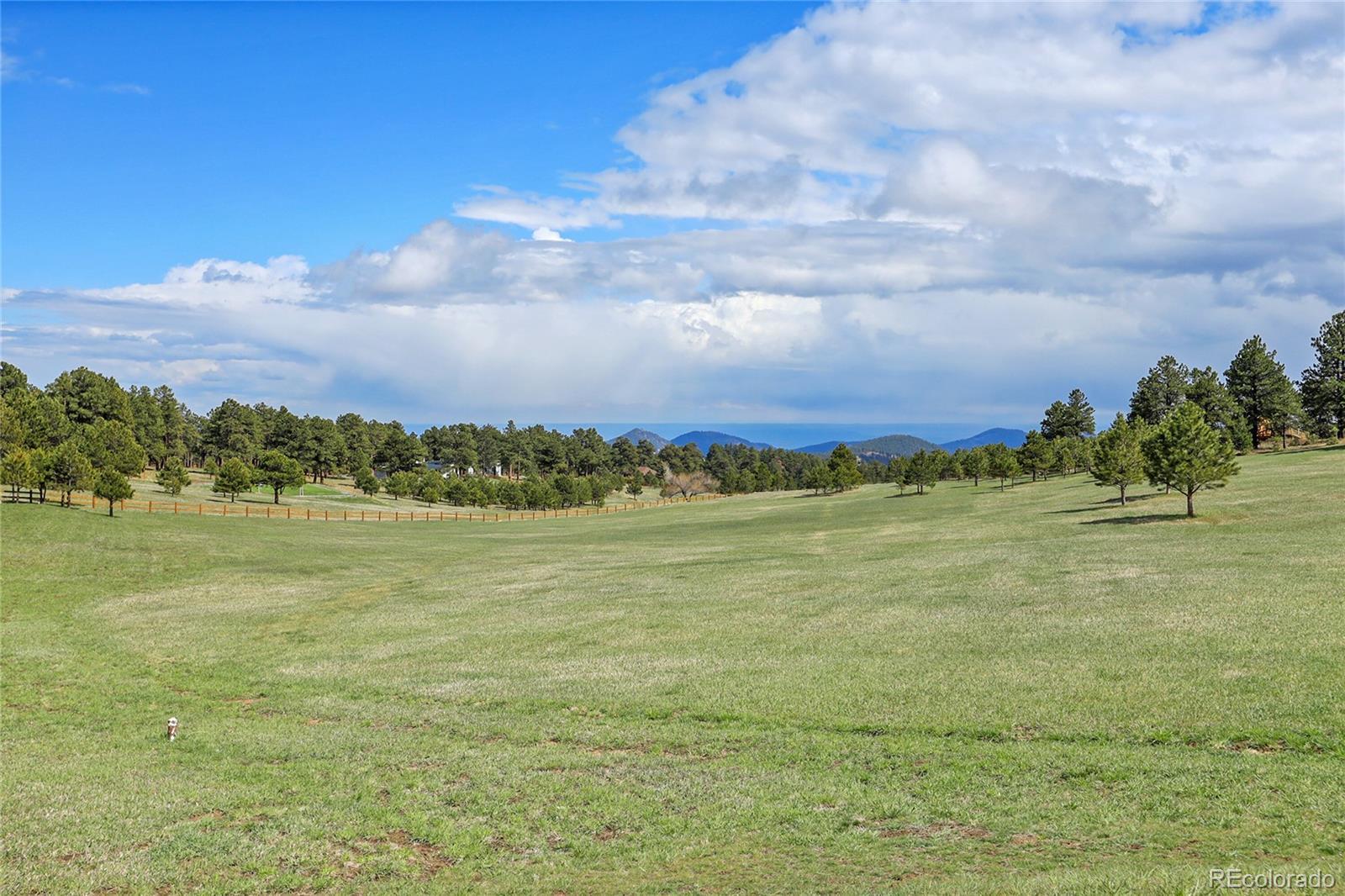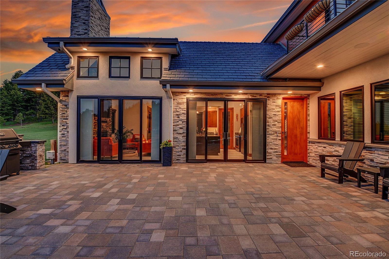 Discover 8.54 acres of park-like, usable land with sweeping mountain and city views—ideally located with county-maintained, paved road access. SIGNATURE FEATURES: 1,199 sq ft PLUS 1,199 sq ft garage - oversized finished garage; NEWER build designed to meet modern fire prevention standards, featuring a fire suppression system and hardened exterior materials; CUSTOM maple doors, maple cabinets and trim complement vaulted ceiling(s) and a striking stone fireplace. PROPERTY HIGHLIGHTS: Modern 2 bedroom/2 bath home on 8.54 acres in Bear Mountain Vista – ideal for buyers seeking space, style, and future potential. Vaulted ceilings, stone fireplace, quartzite kitchen counters, and expansive outdoor living with built-in seating, gas fire pit, and a custom stone gas grill alcove. The oversized garage mirrors the square footage of the home and is equally impressive, offering finished interior space, radiant heat, hot and cold water with (2) floor drains. Designed for future ADU conversion this home offers stylish, move-in-ready living while you explore the property's full potential—whether you simply want to enjoy the land and home as is, build your dream mountain estate, enjoy it as a private retreat or guest house, or considering subdivision opportunities). A 7-bedroom septic system and electric are in place, supporting future development. Preliminary plans for a 5,400+ sq ft main residence are also included, offering a head start on your vision. (All development and land use subject to county and state approval). 5166 Bear Mountain Drive delivers an exceptional blend of readiness, versatility, and natural beauty—all just minutes from Evergreen’s charming town center and endless outdoor recreation. Live, build, and thrive in Colorado’s mountain lifestyle. Property website can be viewed at: https://v1tours.com/listing/56960/