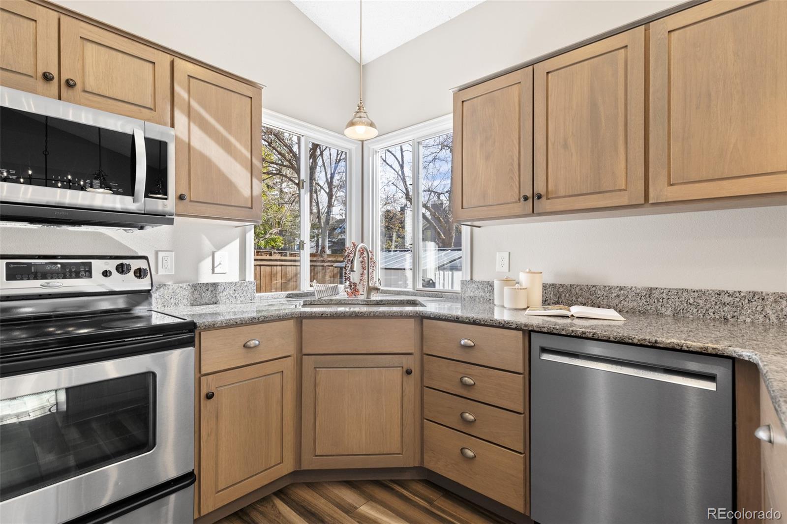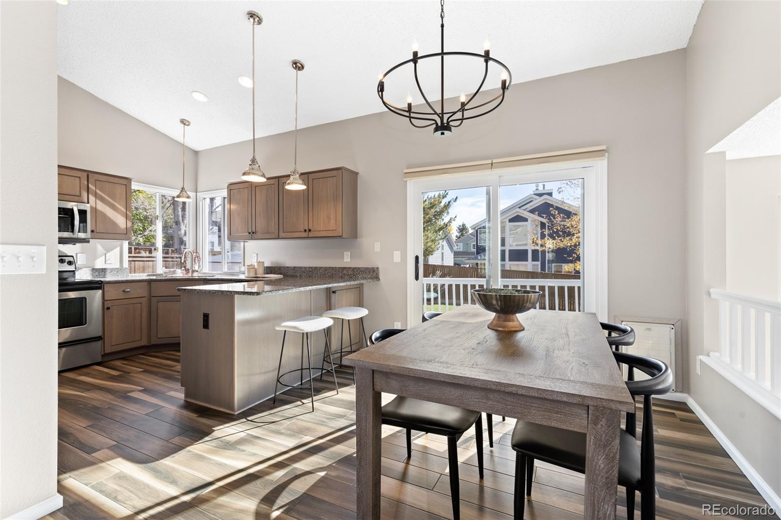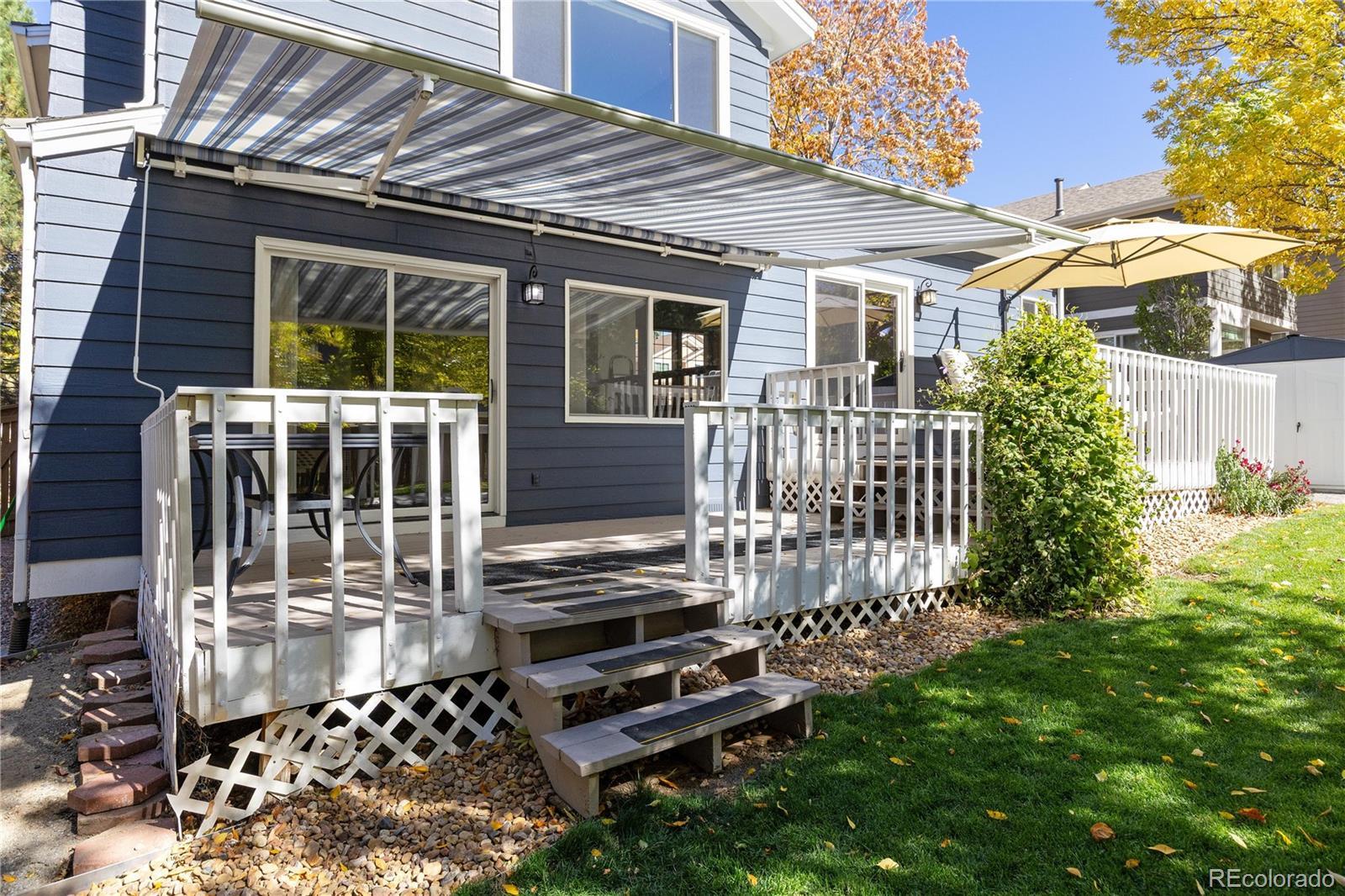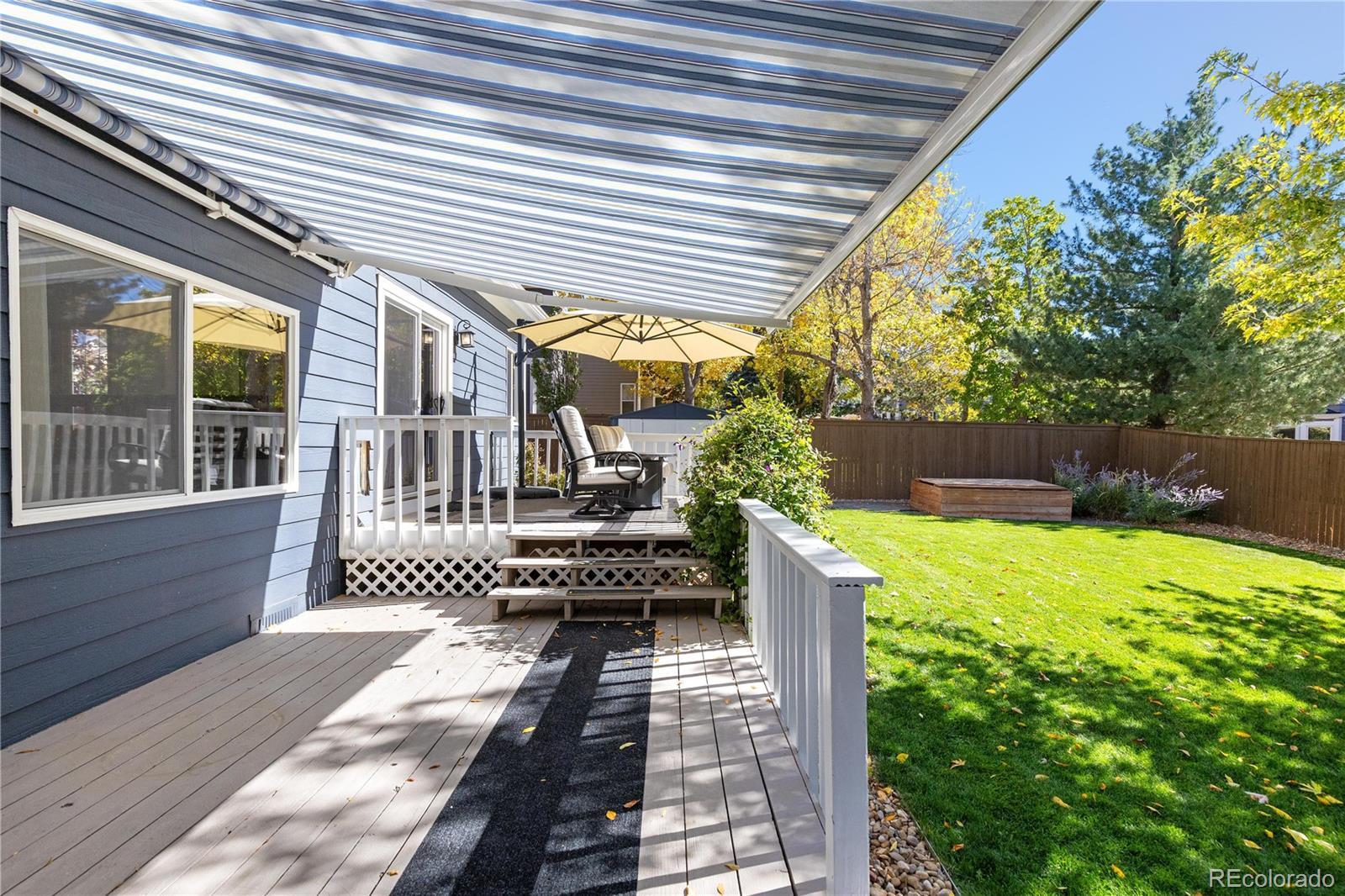 Lovingly cared for, move-in ready, and full charm - this is a home that welcomes you in and makes you want to stay! Tucked along a quiet, tree-lined street in the sought-after Eastridge neighborhood, this well-maintained home offers that "just-feels-right" charm from the moment you arrive. Step inside to discover a sun-drenched living space, warm tiled floors, and thoughtful updates throughout. The kitchen shines with newer soft-close cabinets, convenient roll-out shelving, chic new pendant lighting, newer appliances, and a new sliding glass door that opens directly to the large deck - perfect for morning coffee or dinner al fresco. The lower-level family room is pure Colorado comfort - cozy, inviting, and centered around a beautiful gas fireplace. This space has an undeniable charm, whether you're curling up for movie night or hosting friends for a game. Another sliding glass door opens to the lower level of the deck, featuring a retractable awning that provides shade or sunshine at the touch of a button - a seamless indoor-outdoor connection that's perfect for entertaining or unwinding. Downstairs, the finished basement adds even more flexibility with a comfortable rec space, laundry area, sump pump, and radon mitigation system already in place - offering peace of mind and plenty of room for hobbies, workouts, or guests. Upstairs, the primary suite feels like a retreat with a spa-inspired bathroom and generous walk-in closet, while additional bedrooms offer flexibility for guests, a home office, or playroom. The backyard is a private haven framed by mature trees and tiered decking, creating plenty of space to gather, play, or simply relax. Enjoy proximity to all four Highlands Ranch rec centers, over 70 miles of maintained trail systems throughout, 26 parks, top-rated Douglas County schools, proximity to Park Meadows mall, C470, and I-25....all part of the lifestyle that makes Highlands Ranch so special! This one truly feels like home!