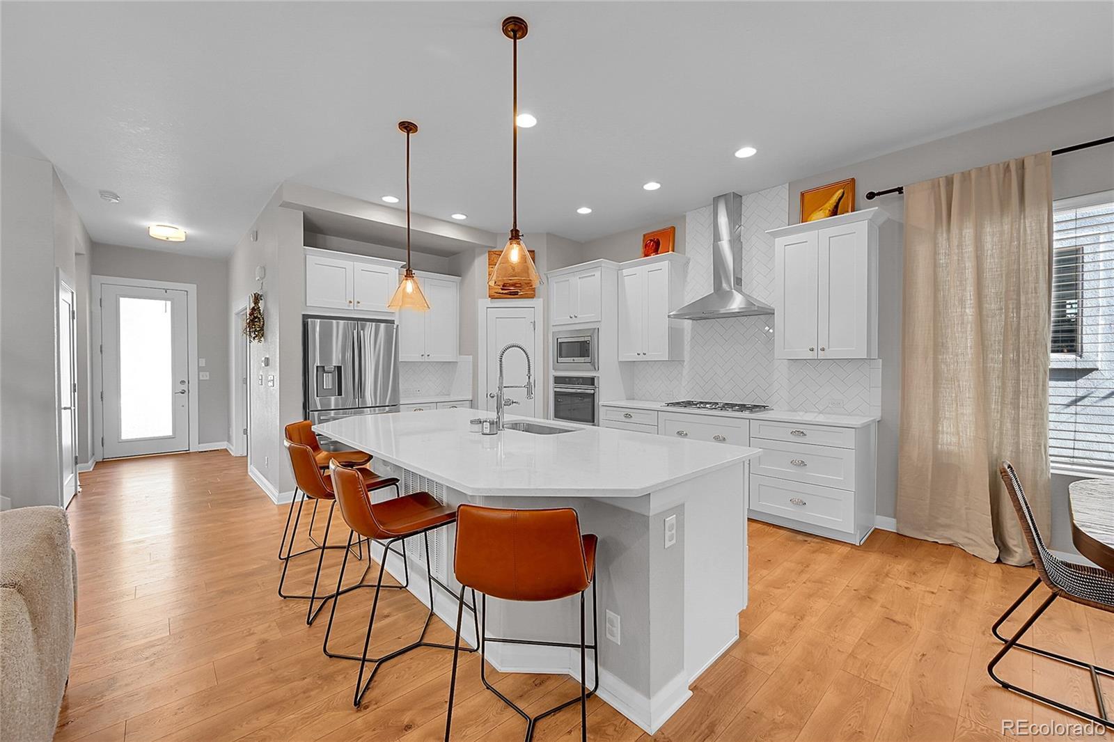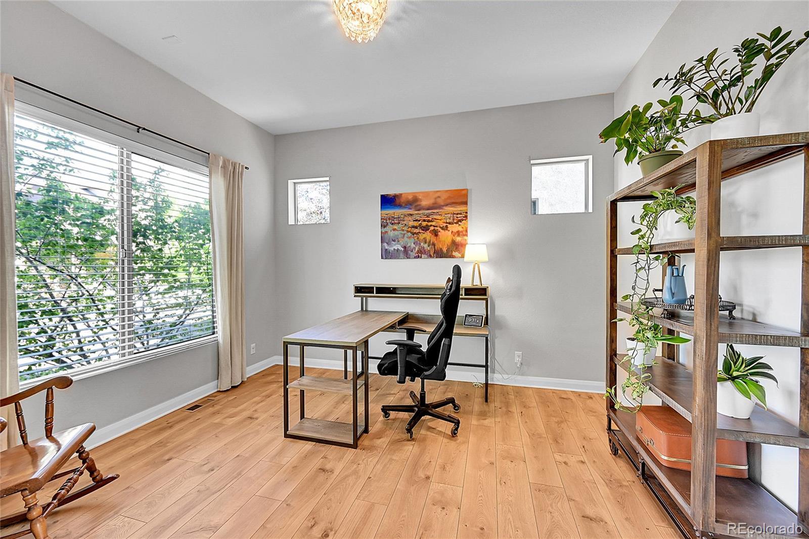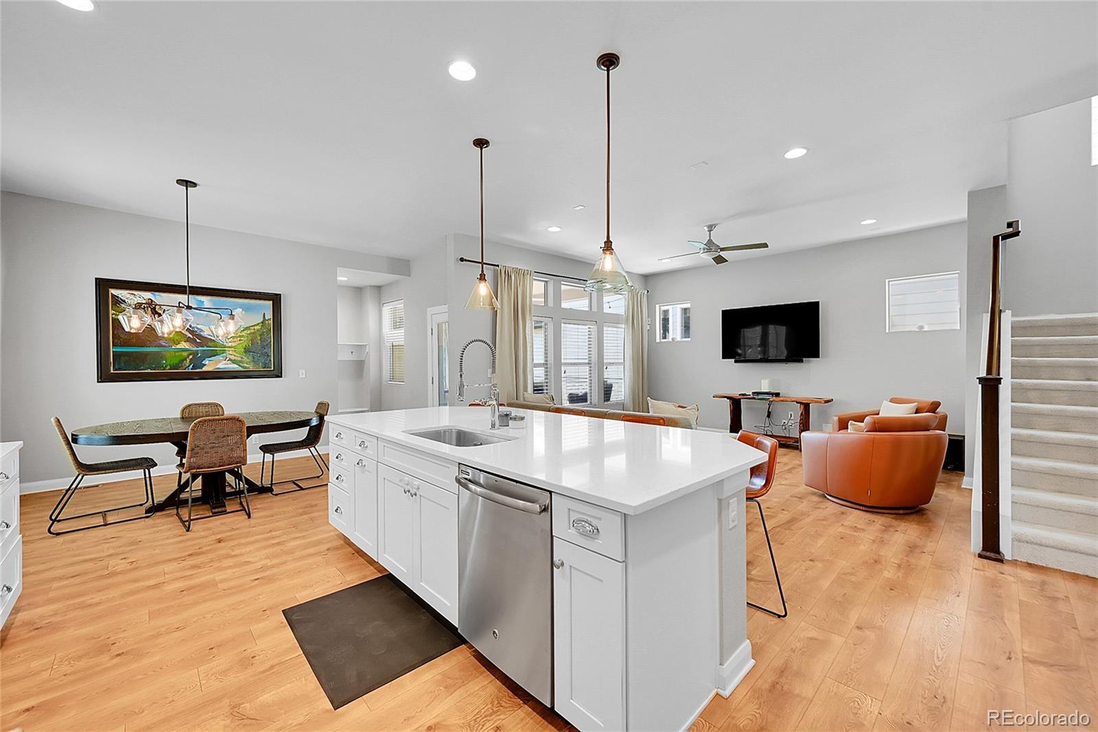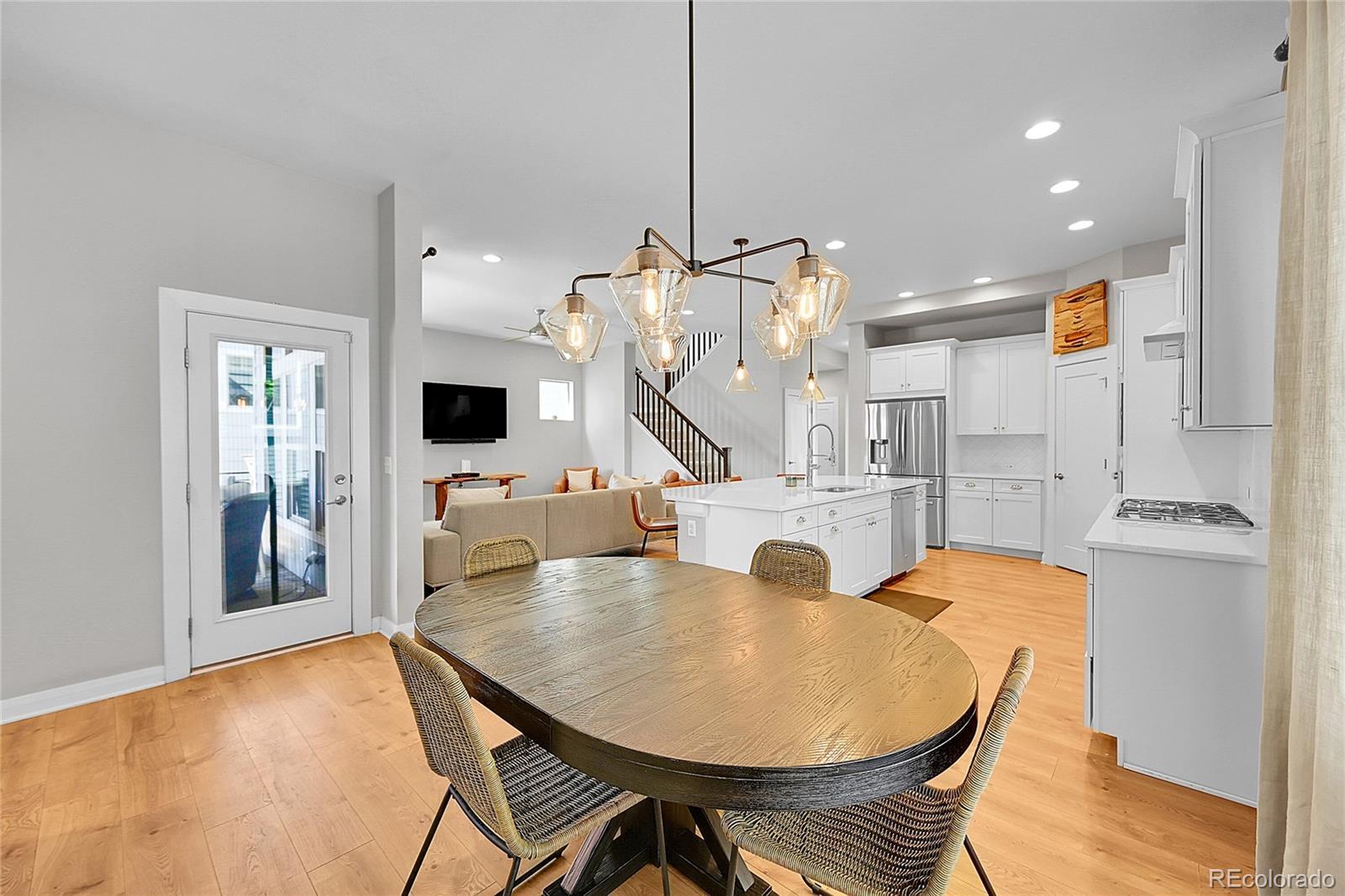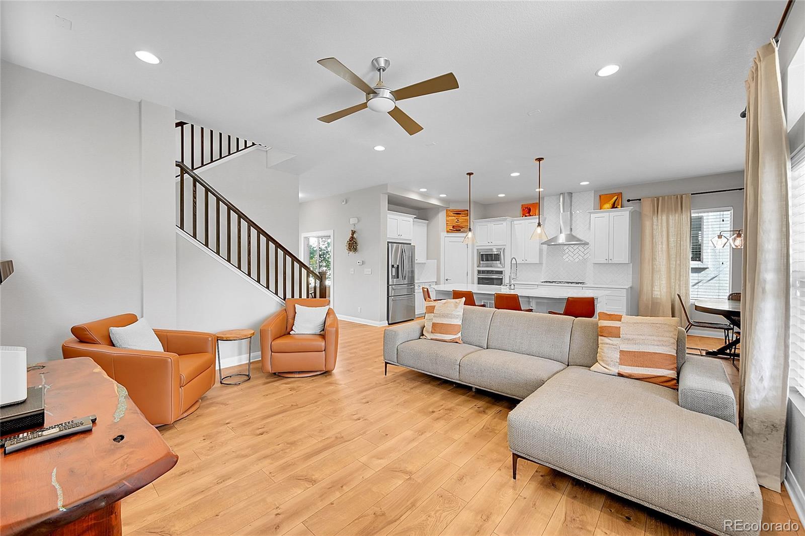 Welcome to this beautifully designed single-family home in Midtown. This spacious residence boasts 3 bedrooms, a main floor office, 2 full bathroom, and 1 half bathroom, all within a generous 2,029 square feet above grade. The full basement is roughed in for finishing and ready for your touch. A two-car garage and perfect private outdoor space enhance the property’s appeal, making it perfect for families or anyone seeking a comfortable and stylish home in a vibrant community. Upon entering, you will be greeted by a bright living room featuring light wood-style flooring, recessed lighting, and a ceiling fan, creating an inviting atmosphere. The well-appointed kitchen showcases stainless steel appliances, a kitchen island, and stone countertops, making it a chef's dream. The open floor plan seamlessly connects the dining area, adorned with a chandelier. This property is ideally located, offering easy access to local amenities and outdoor activities. Enjoy the convenience of nearby parks, shopping, and dining options within the vibrant Denver area.