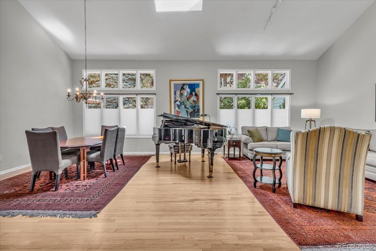 Enjoy secluded luxury living in the heart of the DTC in this stunning townhome. Tucked away in the lush, private enclave of Stoney Brook, this gorgeous townhome offers the perfect blend of tranquility and high-end living right in the heart of the Denver Tech Center. Step into designer elegance with a grand living and dining room featuring soaring vaulted ceilings, a skylight, and gleaming hardwood floors. The front room with outdoor access can be a main-floor office, separate dining room or den. A chef’s dream kitchen completes the main level. The kitchen boasts granite countertops, stainless steel appliances, double ovens, a Dacor gas cooktop, and a sunny breakfast nook. Upstairs, the luxurious primary suite is a true retreat with vaulted ceilings, a cozy sitting room with a gas fireplace and stacked stone wall, and a spectacular spa-inspired bathroom. Recently remodeled, it includes a freestanding soaking tub, oversized shower, dual sinks, heated floors, private water closet, walk-in closet, and an auto-sensor skylight. The second upstairs bedroom is en-suite with a 3/4 bath, window bench, and double closets. The finished basement expands your living space with a huge great room, built-in bookcases, workout area, a bedroom with built-in dresser, and a charming 3/4 bath adorned with hand-painted Mexican tile. Wine lovers will appreciate the impressive 800+ bottle wine cellar and walk-in cedar closet. Storage is abundant with a massive storage room and additional closets throughout. Enjoy Colorado living on the expansive back deck made of Benchmark Thermory Ash. Hardwood floors throughout the home add warmth and elegance. Stoney Brook offers a serene lifestyle with ponds, walking paths, tennis and pickleball courts, and a clubhouse. Just minutes from Wallace Park and Cherry Creek Reservoir, with unbeatable access to all DTC has to offer.