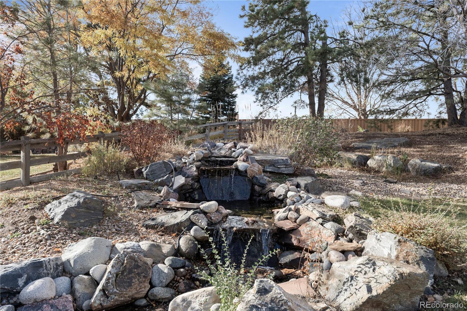 Tucked into a quiet Hillcrest cul-de-sac, this brick Highlands Ranch home is designed for the way life actually happens: bikes in the street and easy access to trails, rec centers, and community pools. Inside, a dramatic two-story foyer with a curved wrought-iron staircase sets the tone, opening to light-filled living spaces with oak hardwood floors, graceful archways, skylights, and a soaring great room with a wet bar and fireplace. The kitchen anchors the main level with granite counters, a cook’s island, and a sunny turret breakfast nook that flows right out to the patio. An elegant formal dining room with a tray ceiling and a private office complete the main level. Upstairs, a loft overlooks the great room and leads to a spacious primary retreat with a five-piece bath and a generous walk-in closet. The second level also includes three additional bedrooms, including an en-suite, and captures mountain views. The professionally finished basement expands the lifestyle even further with a large media area, game space, a huge mirrored exercise studio, a guest suite, and plenty of storage. Out back, enjoy a rare, level and fully fenced near half-acre with a natural waterfall and pond feature, two patios, a basketball hoop, and room to spread out and host, all with the convenience of quick access to C-470, the DTC corridor, and everyday Highlands Ranch living.