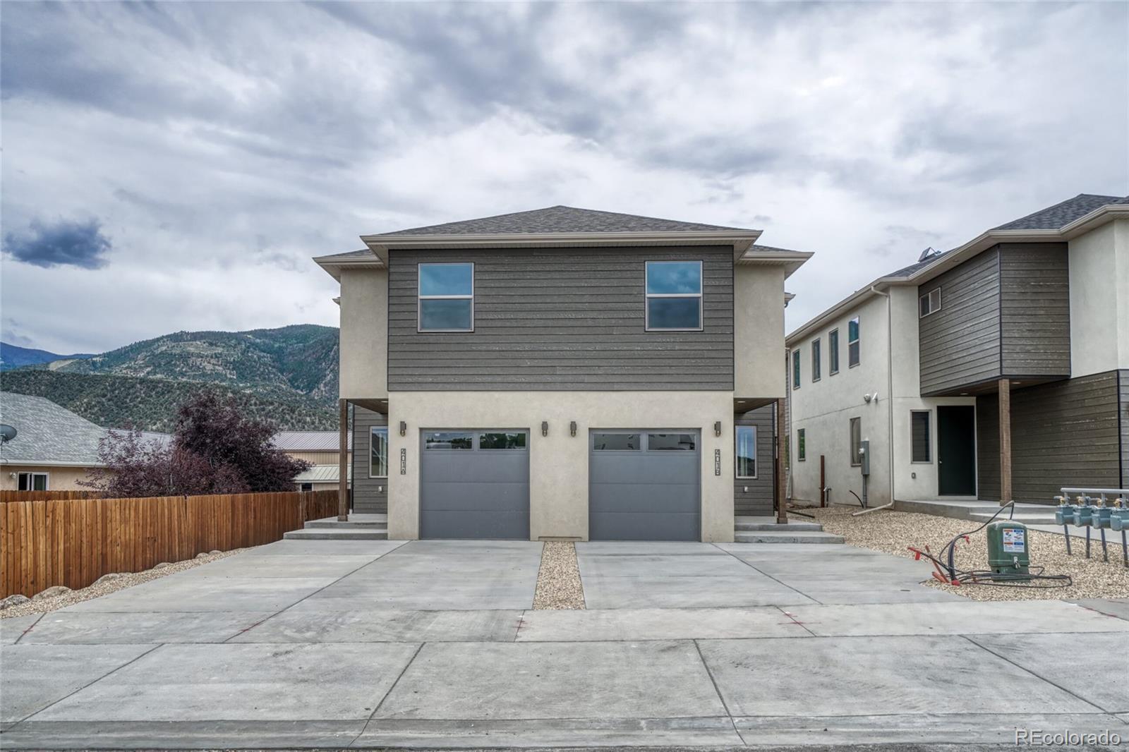 Newly constructed and thoughtfully designed by Tri Mi Smith builders this townhome is located in Poncha Springs at the intersection of 285 and Hwy 50. This scenic neighborhood and growing community is less than 10 minutes from historic downtown Salida and 20 minutes from skiing at Monarch Mountain allowing you many opportunities to embrace and enjoy the Colorado lifestyle! When you enter this 2001 sq ft mountain contemporary home you will be greeted by an open and bright main living area. On the lower level you will find a kitchen with Taj Mahal quartzite counter tops, contemporary lighting, upgraded appliances, and plenty of cabinets allowing you the perfect space to entertain! The living area is also open with sliding glass doors to your own private patio and fenced backyard perfect for your furry friends. A 1/2 bath, dining area and attached garage entry finish out the lower level. Upstairs you will be greeted by an open flexible area that would be perfect for an additional TV area, reading space, or just an area to relax and enjoy the beautiful mountain views from the large, picturesque windows. The primary bedroom is located on the south side and offers lots of natural light, large closets with built ins for easy organizing of your belongings and an en suite bathroom featuring custom tile work, double vanity, and large walk-in shower. Bedrooms 2 and 3 are located on the north side and are nicely sized with large closets. The guest bathroom also includes the homes high end finishes with custom tile work, quartzite counters, and a tub/shower combo. Laundry room has a utility sink and quartzite counter as well. Lower-level flooring is LVT and upper level is carpet. Looking to relocate to Chaffee County or just looking for a place to enjoy the mountains, river, or the many breweries, restaurants, trails, etc. this could be the one for you! Unit B is also for sale.