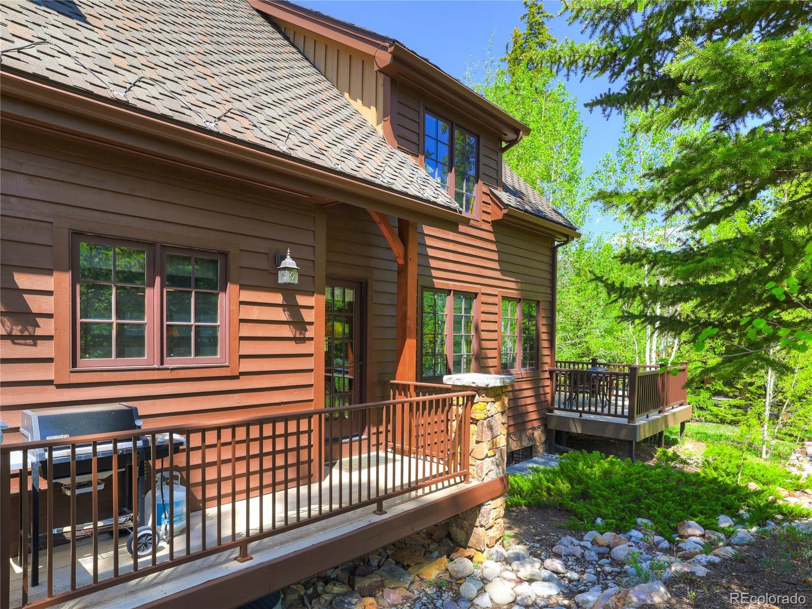 Elegently located on the edge of the US National Forest Service, this five-bedroom, four-bath home offers the perfect blend of modern comfort and mountain living. Designed with thoughtful craftsmanship, the residence features an epoxy-coated two-car garage and a private guest suite above, complete with an open loft ideal for a playroom, creative studio, or flex space. Inside, greet your guests in your flexible mudroom and enjoy a spacious main level with an open-concept layout connecting the dining area, kitchen, living room, and sunroom—perfect for gatherings and everyday living. The kitchen boasts a butcher block island, stainless steel appliances, and flows seamlessly to the outdoor composite deck space equipped with a built-in speaker and home audio system. Architectural features include a timeless and elegant use of Douglas Fir, Moss Rock, and Slate Tile with in-floor radiant heat. Two bedrooms on the main level allow your guests to have convenient access and views all throughout the main level. Upstairs, the primary suite is a private retreat with panoramic mountain views, abundant natural light, and a walk-in closet. Downstairs, unwind in the oversized tiled shower or relax in the walk-in sauna, complete with a unique peekaboo window feature. Recent upgrades, including a newer roof, heat tape, and solar water heater, all which create a low-maintenance home. Located just 15 minutes from Keystone Ski Resort and three minutes to Keystone Ranch Golf Club, enjoy access to an 18-hole course, practice range, community pool, restaurant, and clubhouse amenities. With proximity to biking and hiking trails and eligibility for short-term rental, this home offers both a premium lifestyle and excellent investment potential.