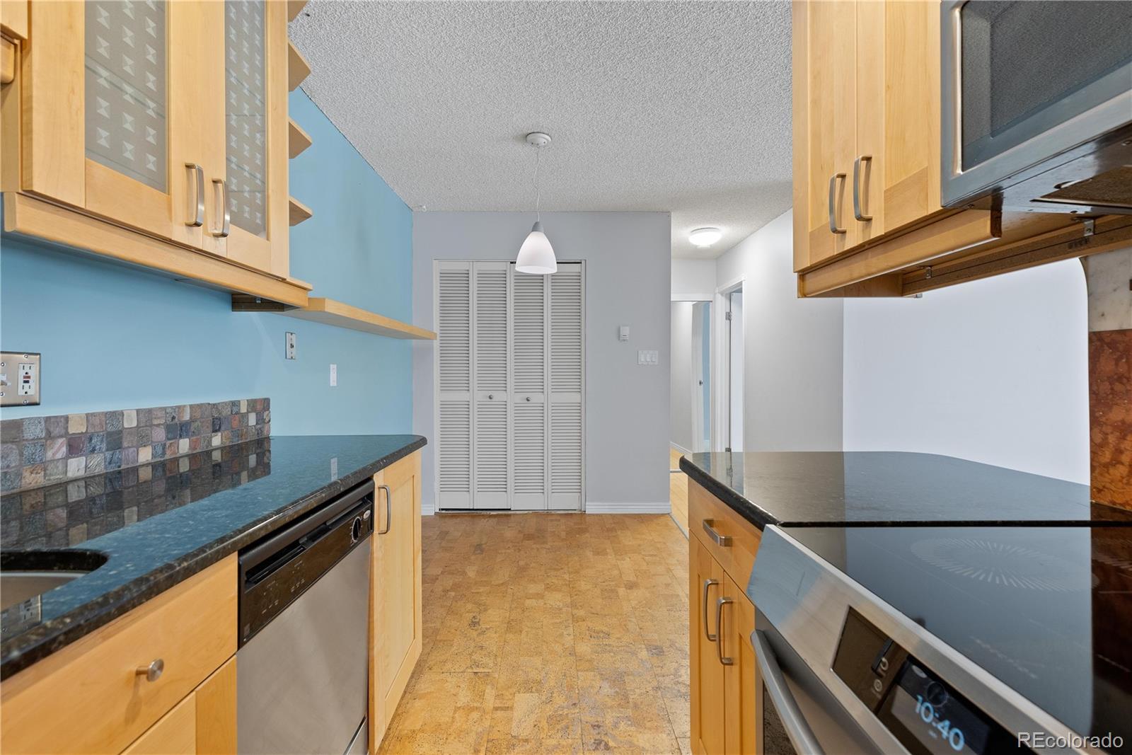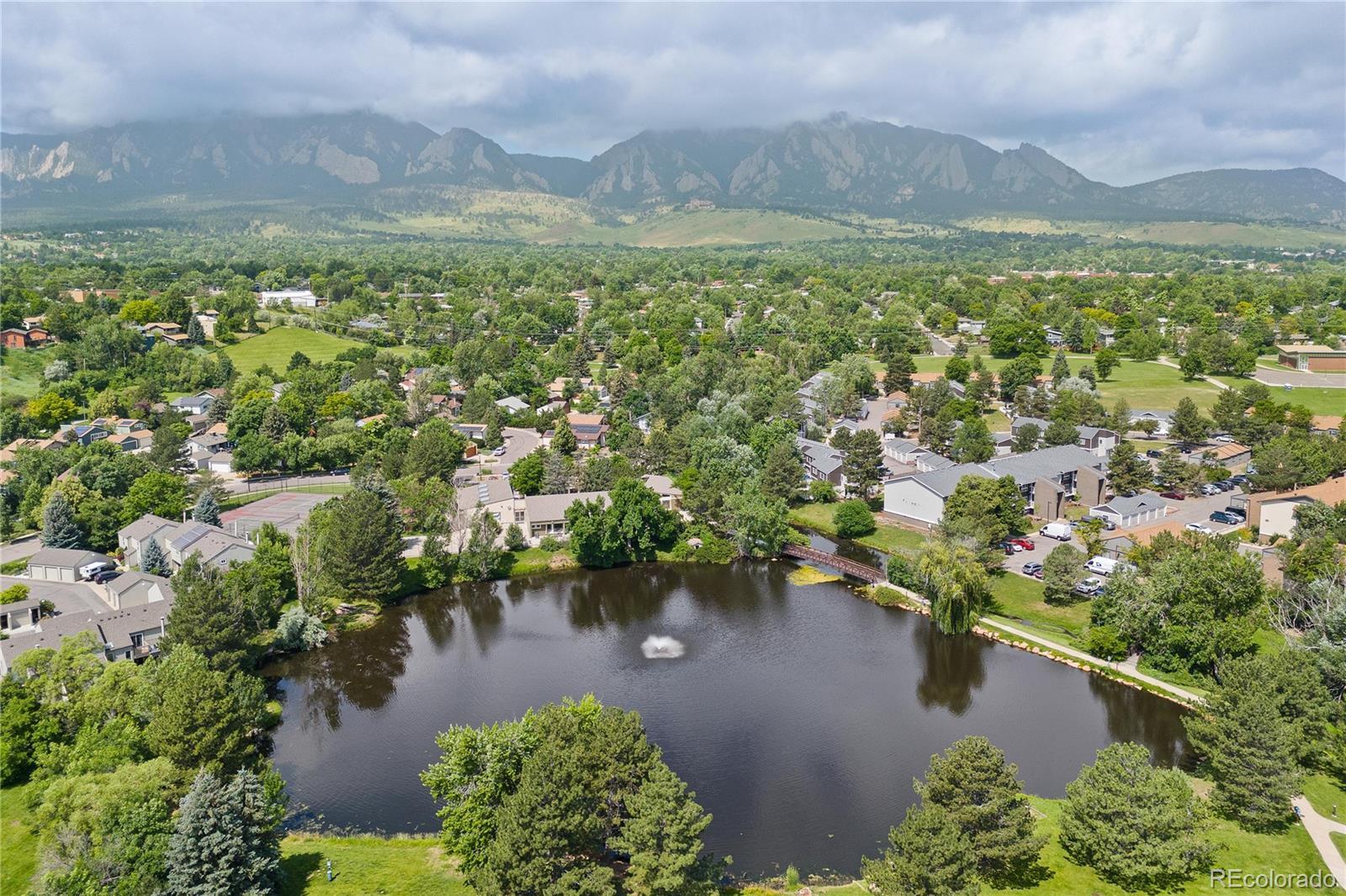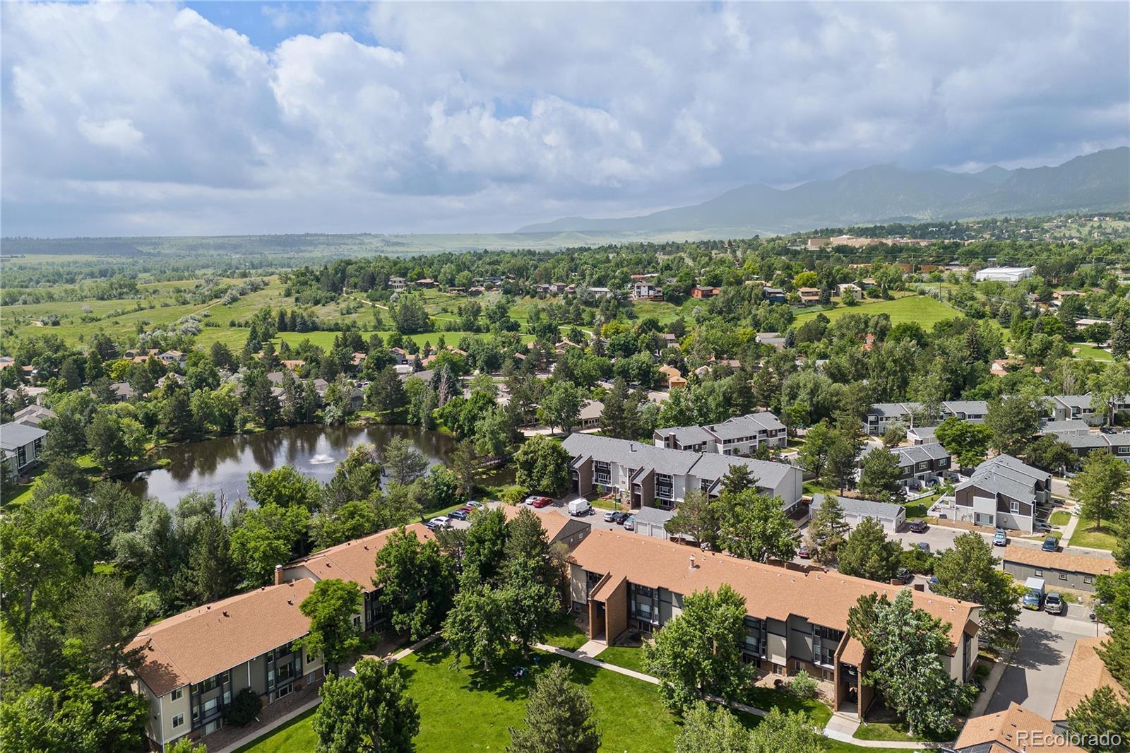 Bright and sunny top-floor 1-bedroom/1-bathroom condo in a desirable South Boulder community with no neighbors above and a rare detached 1-car garage. Enjoy views of the mountains and easy access to open space, scenic trails, and a peaceful lake within the community. Environmentally friendly bamboo wood floors run through the living room and bedroom, with cork flooring in the kitchen. The updated kitchen features granite countertops, stainless steel appliances, a 2024 induction stove, a newer refrigerator, and a stylish glass-front cabinet to showcase your best kitchenware. A cozy dining nook with pendant lighting adds charm, and the full bath has been nicely updated. The community offers a great fitness center and is conveniently located near a grocery store, just 5 minutes to CU Boulder, with quick access to U.S. 36. This move-in ready condo combines comfort, location, and lifestyle. Welcome home!