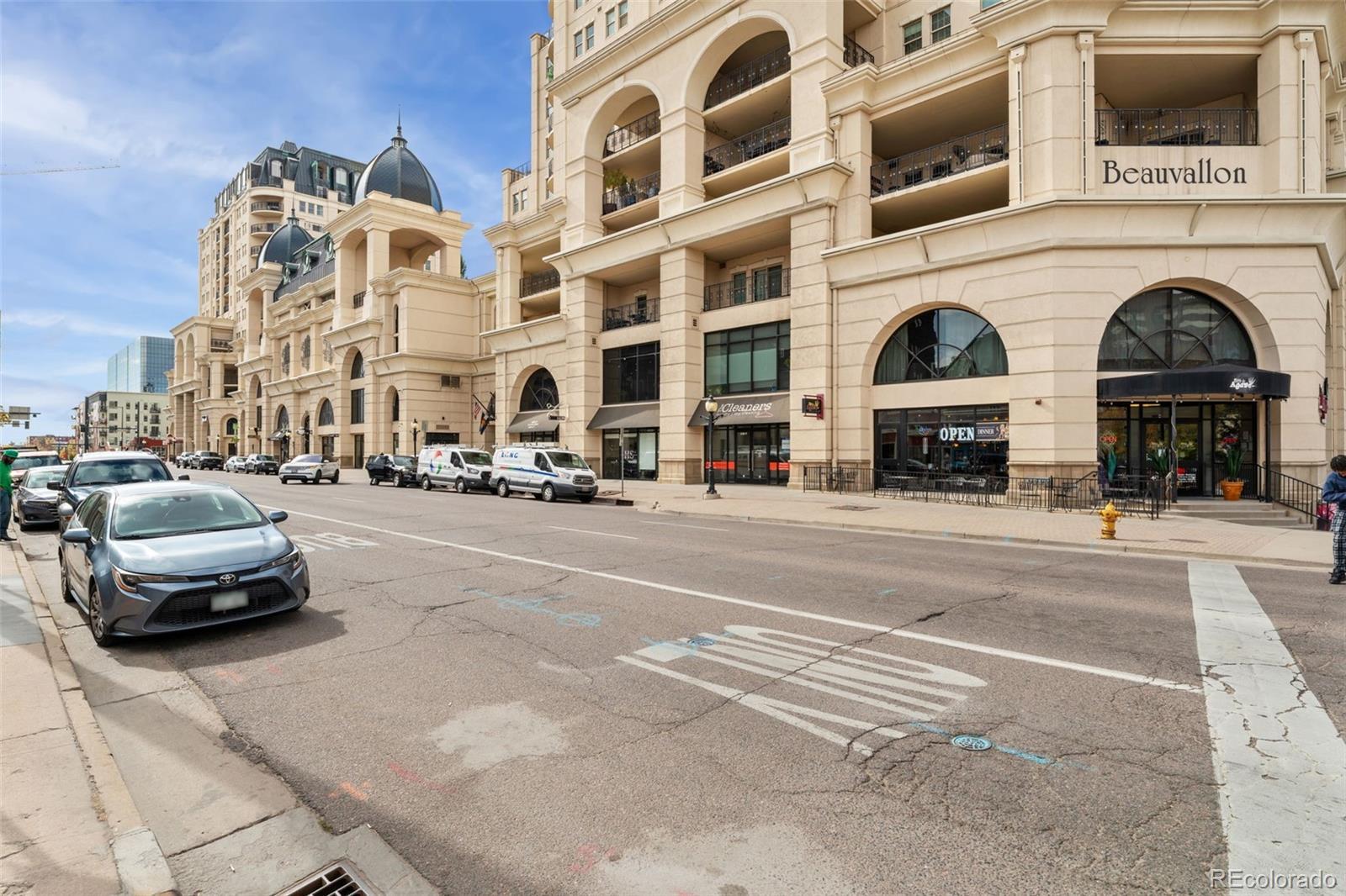 Welcome home to this stunning condo in the beautiful Beauvallon building! Experience sophisticated urban living in this beautifully updated two-bedroom, two-bath condo at the sought-after Beauvallon community. Over 125K in upgrades in 2022! This stunning residence showcases thoughtful updates throughout, including a brand-new kitchen, two stylishly renovated bathrooms, and elegant new vinyl flooring. The gourmet kitchen is an entertainer's dream featuring all newer stainless appliances, quartz counters, wine cooler and a breakfast bar with seating. Relax and unwind in the luxurious jetted tub, or entertain guests on your expansive private terrace, surrounded by lush plants and trees - a rare city oasis complete with a cozy firepit. The firepit and the fountain will stay with the property, and there is a Rain Bird automatic watering system for the terrace trees and plants. All of the furnishings are negotiable. This dog-friendly building's amenities are first class - 24/7 security, concierge service, an outdoor pool and hot tub with unobstructed city and mountain views. Enjoy the outdoor gardens, fountain, and community barbeque, also located on the 5th floor rooftop. The property is located within walking distance of restaurants, museums, and the Golden Triangle Creative District. The complex has installed SIX EV chargers! Hurry on this stunning condo! SEE SUPPLEMENTS FOR LIST OF FREE FURNITURE WITH ACCEPTABLE OFFER!