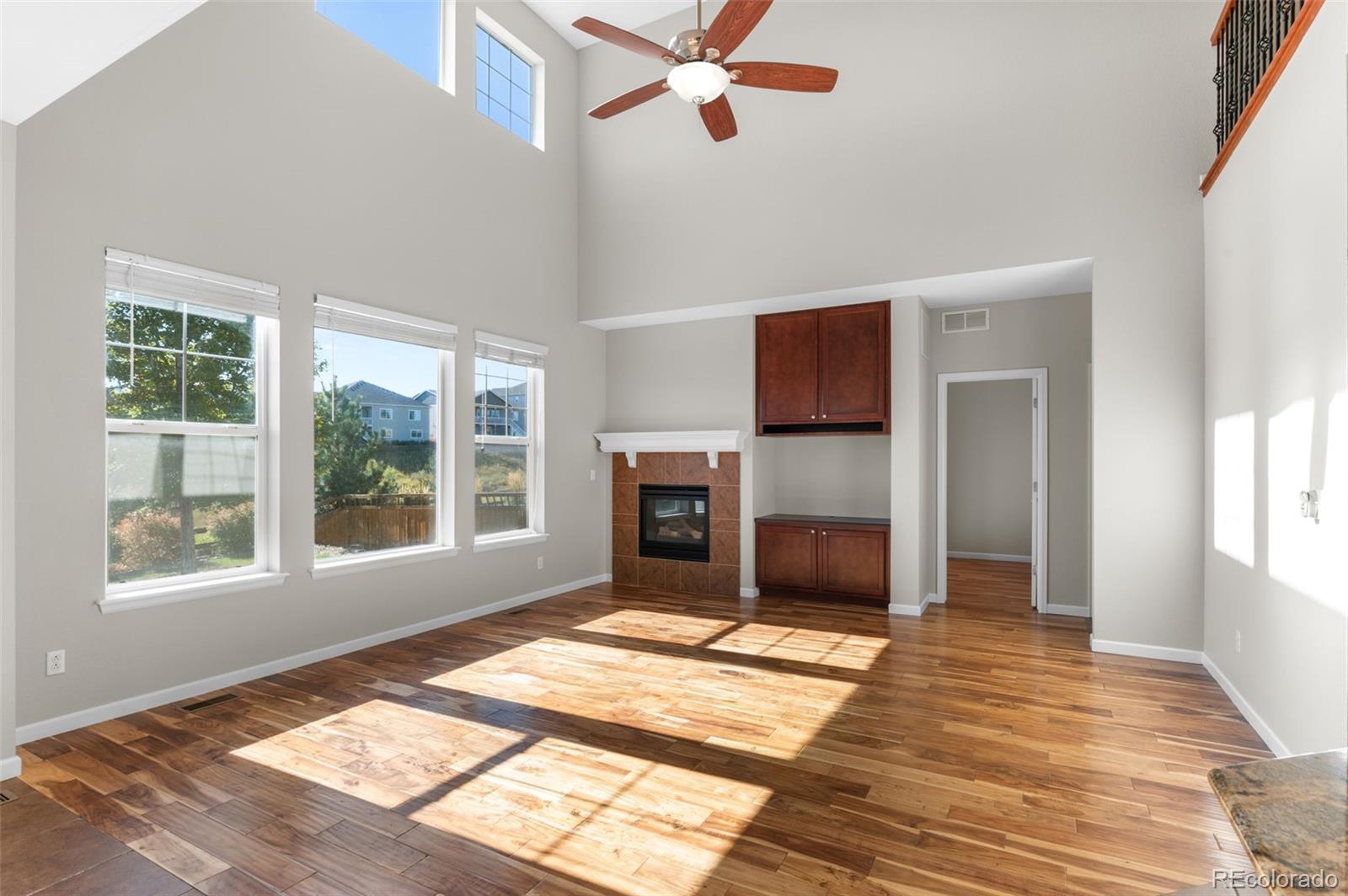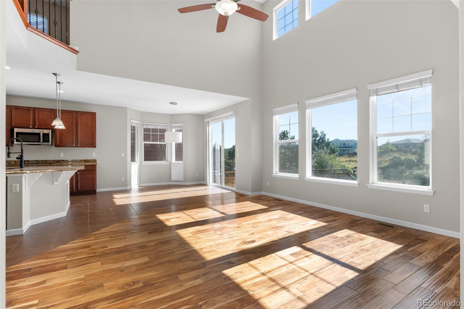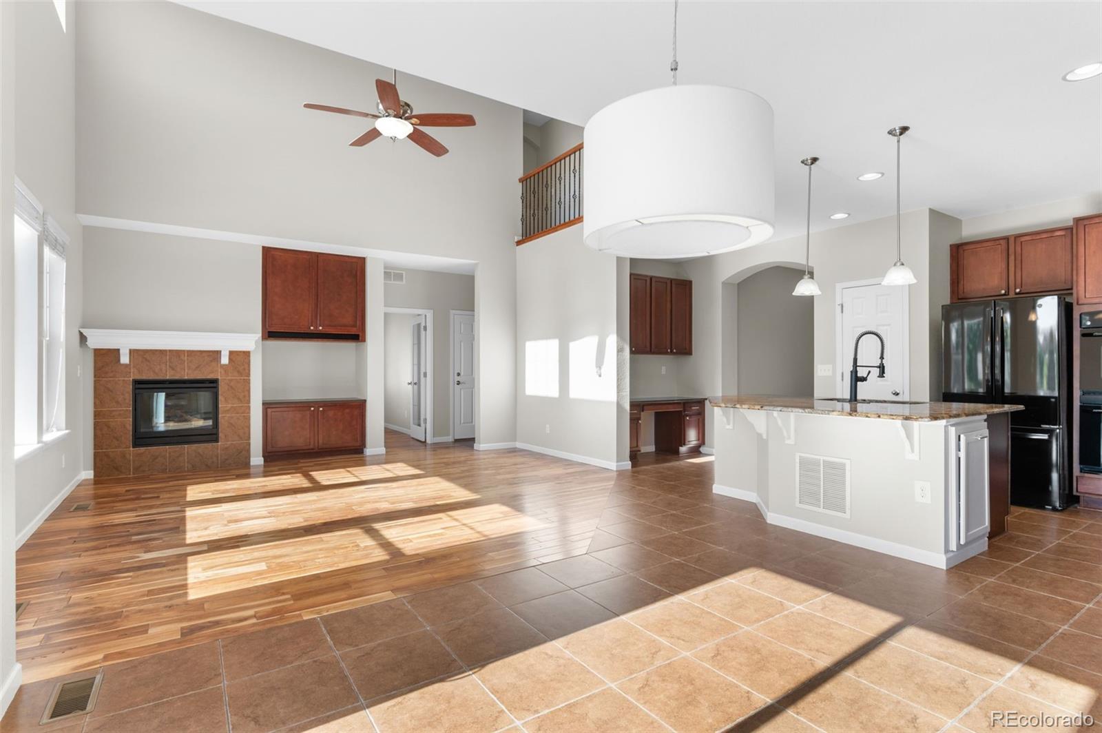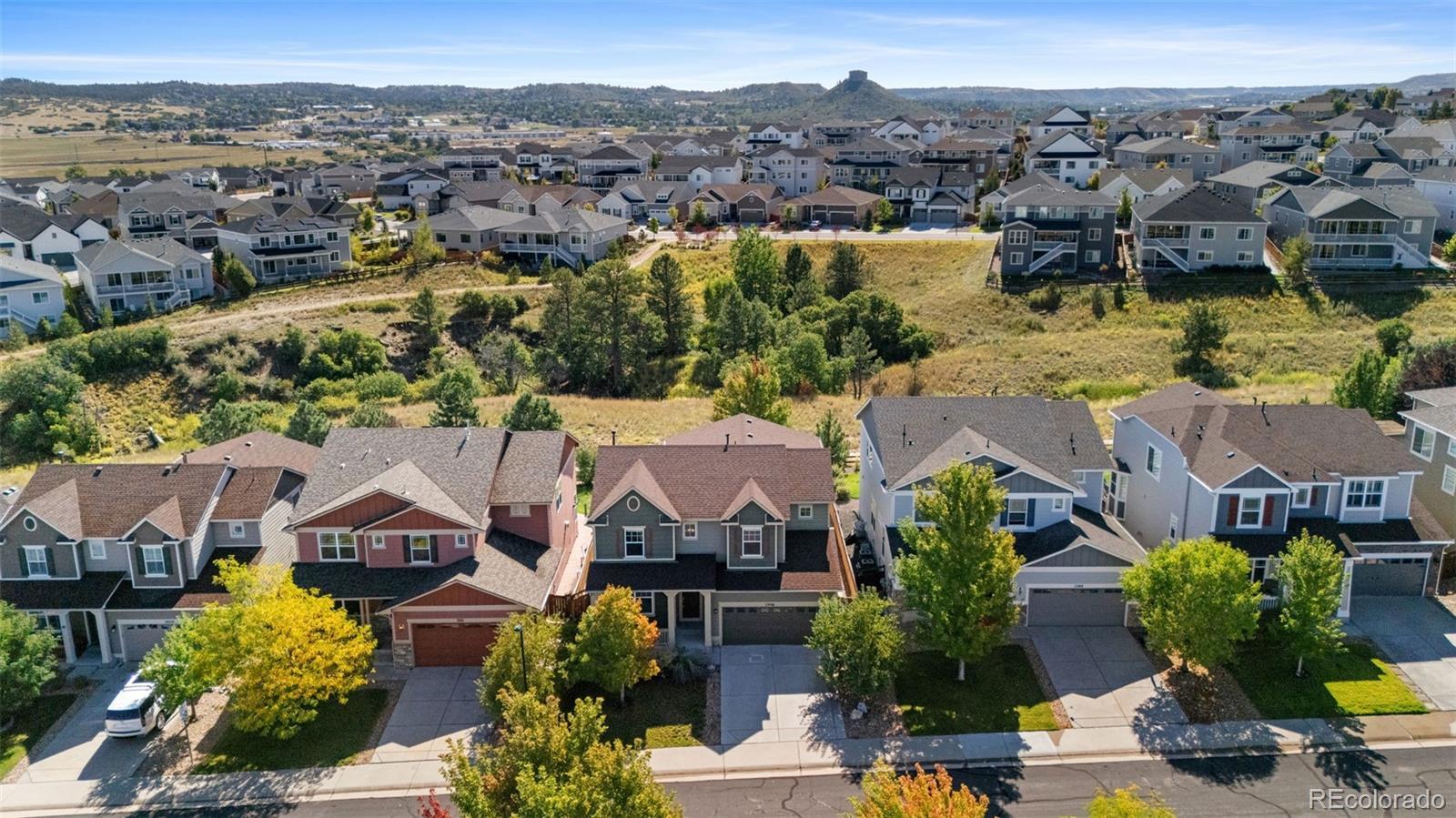 Welcome home to The Meadows in Castle Rock! This four bedroom, four bathroom property backs to open space with breathtaking views and offers incredible space and style. Inside you’ll find soaring vaulted ceilings, a wrought iron railings rods, and a loft-style catwalk leading to the primary suite. The gourmet kitchen and open concept is designed for both everyday living and entertaining, with a large island and bar seating, granite countertops, matching appliances, and double ovens. The main level also features a private office with custom built-in shelves, a bonus room with built-ins that can serve as a library or dining room, and a warm family room with a gas fireplace. Upstairs you’ll discover a well kept primary suite with a five-piece bath and walk-in closet with custom shelving, plus two additional bedrooms, a loft, a full bathroom, and a laundry room with cabinets. The finished basement adds even more living space with a conforming bedroom, full bathroom, family room, and an oversized storage and utility area. With an unbeatable location close to I-25, parks, schools, trails, restaurants, and the Castle Rock Outlets, this move-in ready home is Colorado living at its finest.