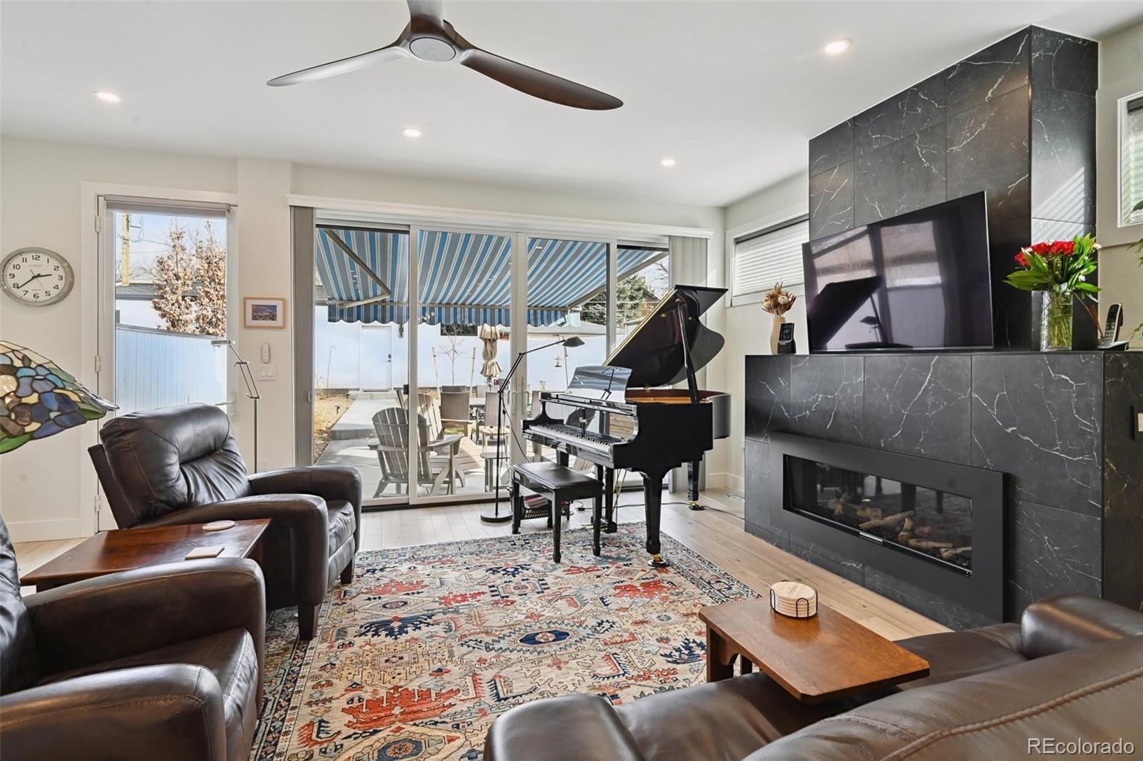 Discover exceptional living at 2012 S Clayton St, a meticulously kept almost new residence nestled in the highly sought-after Observatory Park neighborhood. This stunning home blends contemporary finishes with timeless Denver charm. The open-concept living area, bathed in natural light, flows seamlessly into a gourmet kitchen featuring Thermidor appliances, quartz countertops, and custom cabinetry, with soft closing cabinets and drawers—perfect for entertaining. The living room has a great gas fire place for cozy evenings. Retreat to the spacious primary suite offering a luxurious spa-like bathroom ample closet space and a walk out balcony. A well-appointed bedroom provides flexibility for guests or a home office. Climb to the third floor and find another bedroom, bar area, and a rooftop deck where you can soak up the Colorado sunshine. Enjoy Colorado's beautiful weather in the private, professionally landscaped backyard oasis including a charming patio with a retractable awning, ideal for outdoor gatherings. Comfort is a given year-round with dual furnace and A/C. Thoughtful upgrades within the last two years are a steam humidifier with health benefits, reverse osmosis water system for the best tasting water, Hunter Douglas top down bottom up window coverings throughout the home, freshly epoxied garage floor and drywalled walls. This home has never had smokers, pets or kids and it looks brand new. With its prime location, moments from Washington Park, local eateries, and top-rated schools, this turn-key property offers an unparalleled lifestyle. Don't miss the opportunity to make this dream home yours!