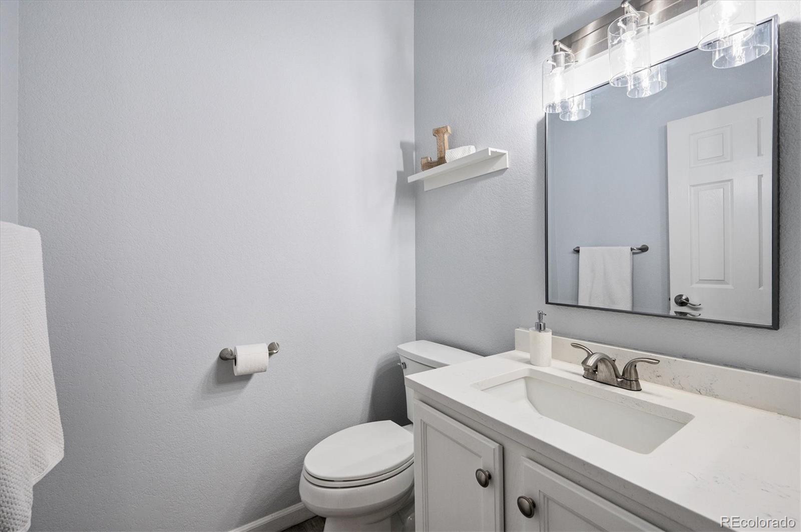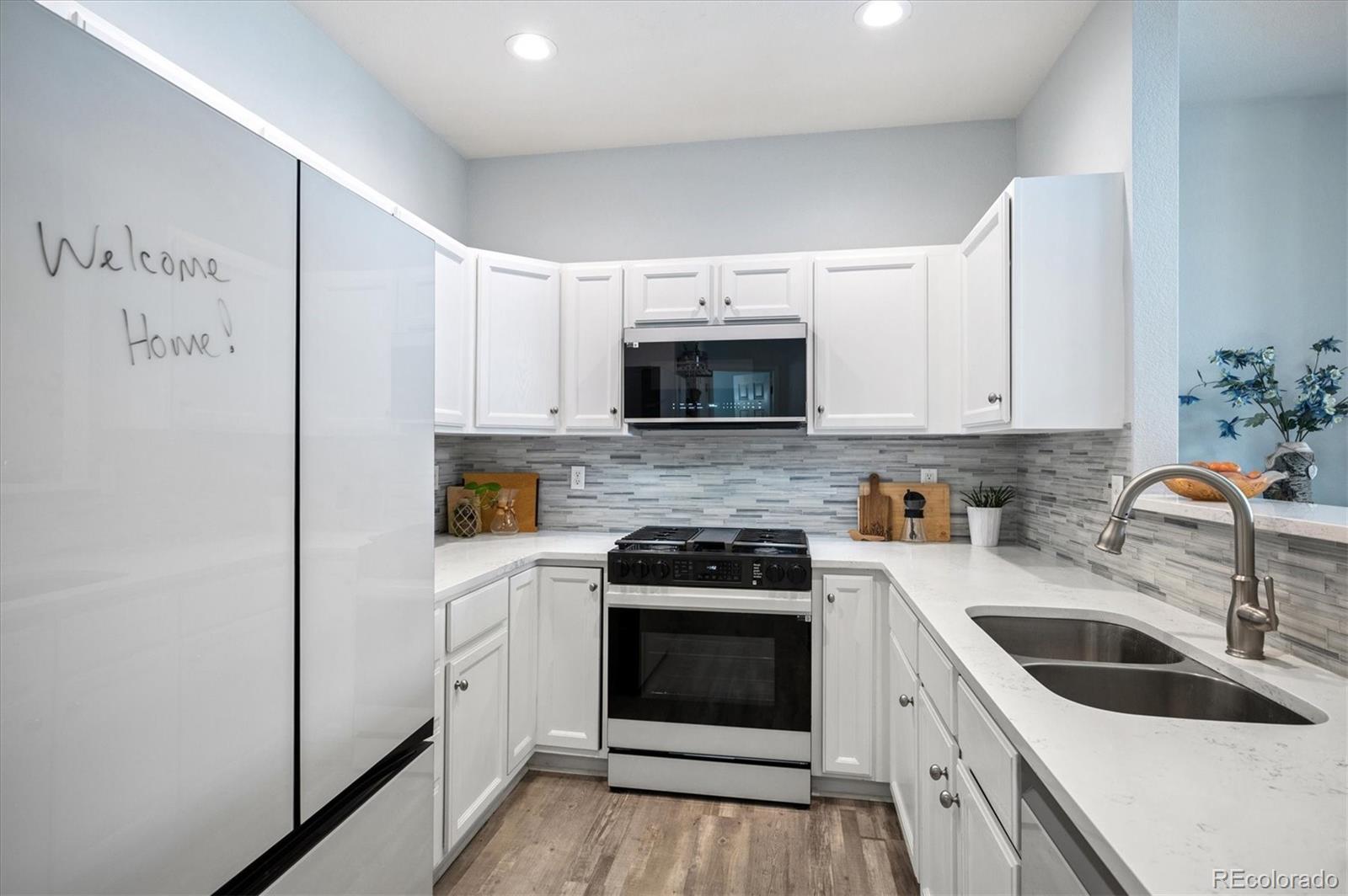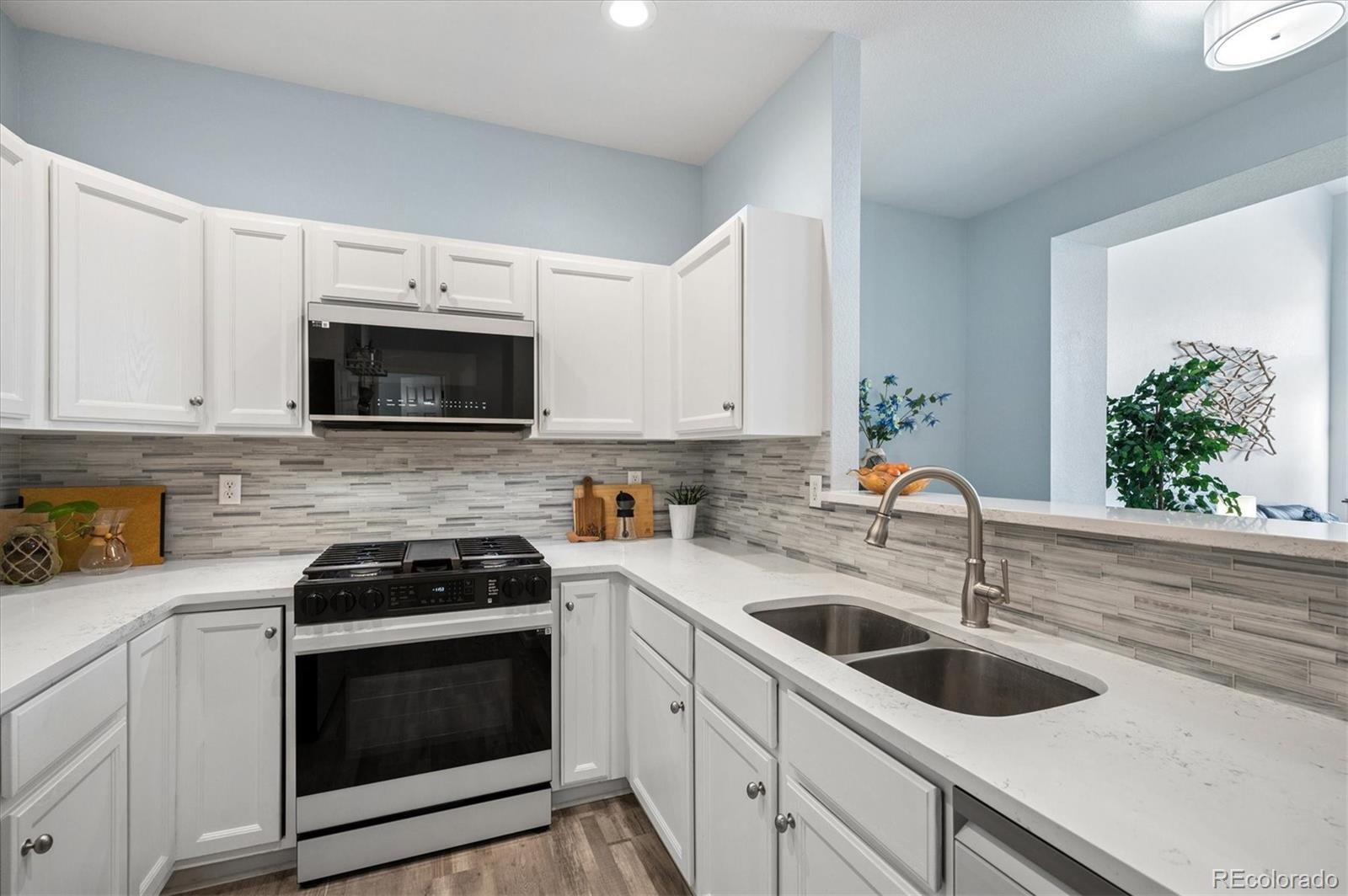 Welcome to 2768 W Greens Drive - A gated community in Riverwalk – perfectly positioned along Littleton golf course with beautiful views and a peaceful setting you’ll love coming home to. This well-maintained home offers a bright, open layout and an unbeatable location facing the 5th hole on the fairway. Enjoy morning coffee or evening sunsets from your private deck overlooking the course with a convenient electric awning for shade and comfort. Inside, the main level has been thoughtfully updated with luxury vinyl plank flooring throughout the main level, creating a seamless and modern feel. The beautifully updated kitchen features white glass appliances, a gas stove, quartz countertops, and a stylish tile backsplash. The dining area is enhanced by a new light fixture, while the living room offers a cozy gas fireplace with tile surround and a ceiling fan for added comfort. The main level also includes an updated half bath with quartz counters and a new toilet. Upstairs, the spacious primary suite features two walk-in closets and a private bath complete with quartz countertops, dual vanity space, and a separate shower and soaking tub. A ceiling fan adds year-round comfort. The secondary bedroom enjoys a window overlooking the golf course, and the full upper-level bath includes a new toilet and quartz vanity countertop. The finished basement expands your living space with a third bedroom featuring a Murphy bed and closet. The closet’s back panel opens to additional storage under the staircase for smart, functional use of space. A ¾ bath adds convenience for guests. The spacious laundry room includes a newer stackable washer and dryer that stay with the home. Additional upgrades include a new furnace in 2025 with an attached air purifier and smart thermostat for efficiency and peace of mind. Check out the Riverwalk Clubhouse which offers exceptional amenities—fitness center, book exchange, billiards, ping pong, outdoor pool, and hot tub—plus activities for residents.