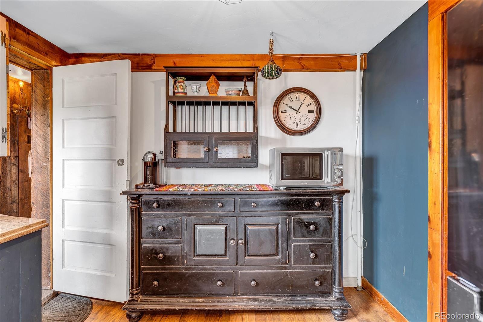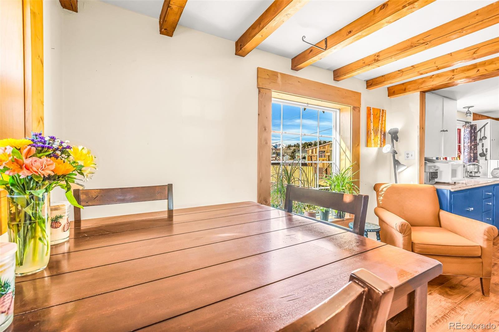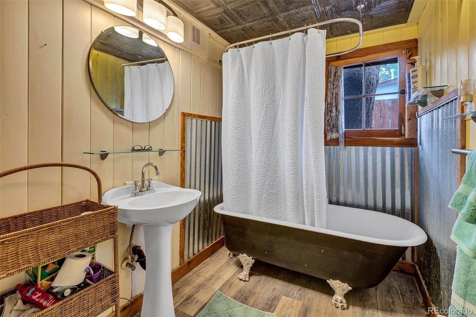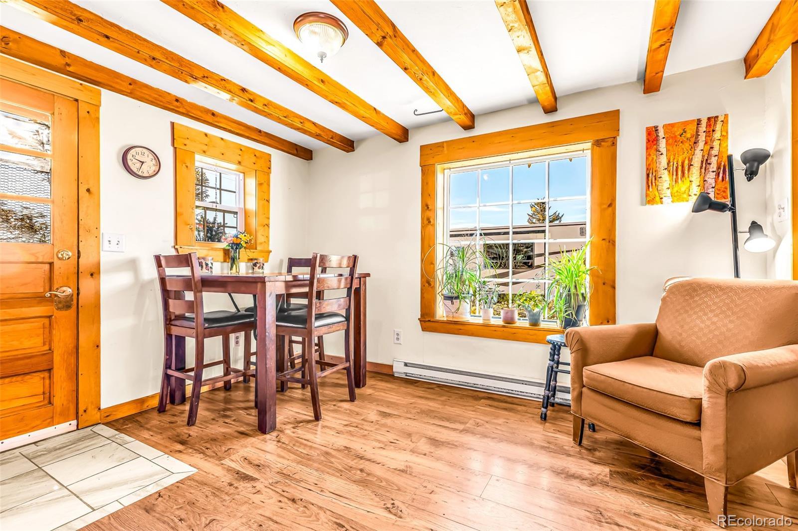 Truly one-of-a-kind 1900s log cabin nestled in the charming and historic town of Fairplay! Brimming with warmth and character, this hand-hewn gem is a rare find, offering the perfect blend of rustic authenticity and modern-day comfort with newer windows, roof, LVP flooring, water heater, and remodeled bathroom! Step inside to discover rich wood floors, exposed timber beams, and vintage touches throughout—including a classic clawfoot bathtub that invites long, relaxing soaks. A dedicated laundry closet & mudroom add practicality, giving you the perfect spot to leave behind snowy boots and coats after a day of adventure. The spectacular backyard patio space is framed by custom rock walls and eclectic art, creating a serene, sun-dappled setting that’s ideal for morning coffee, evening gatherings, or simply soaking in the mountain air and views! A large shed offers extra storage or workspace, and off-street parking means you’re always ready to explore. And when you're ready to hit the slopes or explore Summit County, you're just a short walk from the Summit Stage Bus—your free, easy connection to Breckenridge and beyond. Full of charm, history, and small-town soul, this Fairplay log cabin isn’t just a home—it’s a lifestyle. Come experience the timeless appeal for yourself!