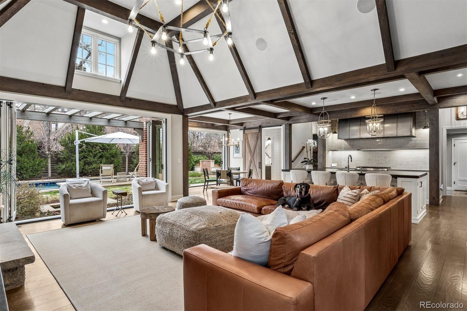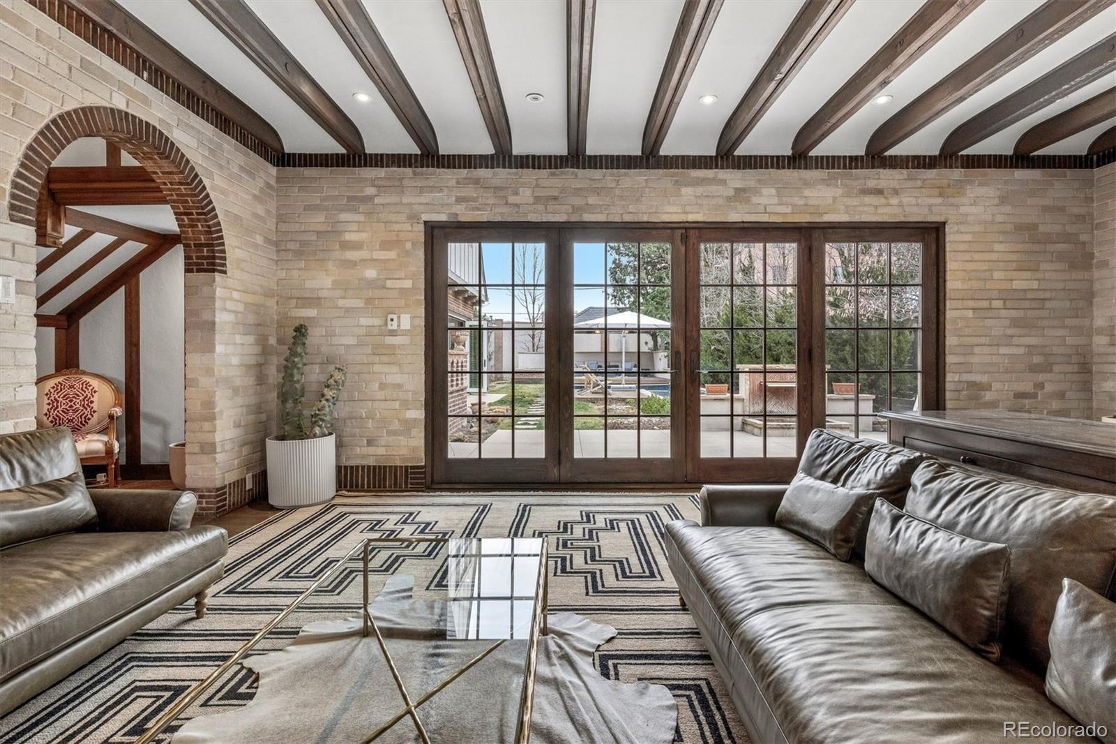 A 1929 Tudor designed by Burnham Hoyt, positioned in Denver’s Country Club Historic District and renovated in 2017 under Steve Ekman. The architecture remains the focal point. Original timber, restored brick, and stone floors anchor the interiors. Signature Marvin windows, TruStile doors, and wide plank white oak flooring introduce a quiet modern contrast. The main level is centered around a chef’s kitchen with Thermador appliances and an oversized island, opening to a family room with beamed ceilings, custom built ins, and fireplace. Large accordion doors connect directly to the outdoor living areas. The backyard includes a pool, hot tub, heated cabana, and flagstone terraces designed for everyday use as much as entertaining. Four bedrooms upstairs, with laundry and exercise space. A soundproofed lower level family room offers flexibility for media or music. Main level office. Enviroshake roof. Walkable to Cherry Creek North dining and retail, and near the forthcoming Cherry Creek West development.