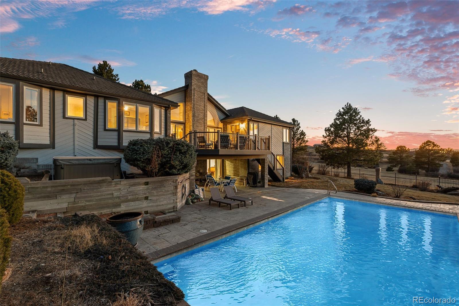 Set on five acres and backing to open space in the coveted Butterfield subdivision, 7539 Stroh Road delivers a resort-style experience with an exceptional balance of rural lifestyle and everyday convenience. Surrounded by mature pines and rolling landscape, this walk-out ranch offers the rare opportunity to own acreage, views, and long-term potential—just three miles from downtown Parker and directly across from the Colorado Golf Club. Outdoors, the property truly distinguishes itself. A resort-style in-ground pool and hot tub create a private retreat rarely found on acreage properties, complemented by multiple patios, decks, and seating areas designed for both quiet mornings and lively evenings. The layered outdoor spaces invite year-round enjoyment while preserving privacy and open views. With over 6,700 square feet, the home offers a sense of space rarely matched in this setting. Designed for true main-level living, the floorplan includes multiple bedrooms on the main floor, an executive office, and a layout that functions equally well for everyday living or entertaining. The kitchen—appointed with maple cabinetry and stained concrete countertops—provides a solid, functional foundation, offering the next owner the opportunity to personalize finishes while preserving the home’s thoughtful flow and scale. The walk-out lower level expands the home’s versatility, supporting multi-generational living, guest accommodations, or extended entertaining. Additional living spaces include wet bar and kitchenette areas, a dedicated gym, and a private lower-level suite, all with direct access to the outdoors—reinforcing the home’s strong connection to its natural setting. Opportunities like this—five acres backing to open space, minutes from town—do not come along often. Experience the setting, scale, and lifestyle of 7539 Stroh Road with a private showing.