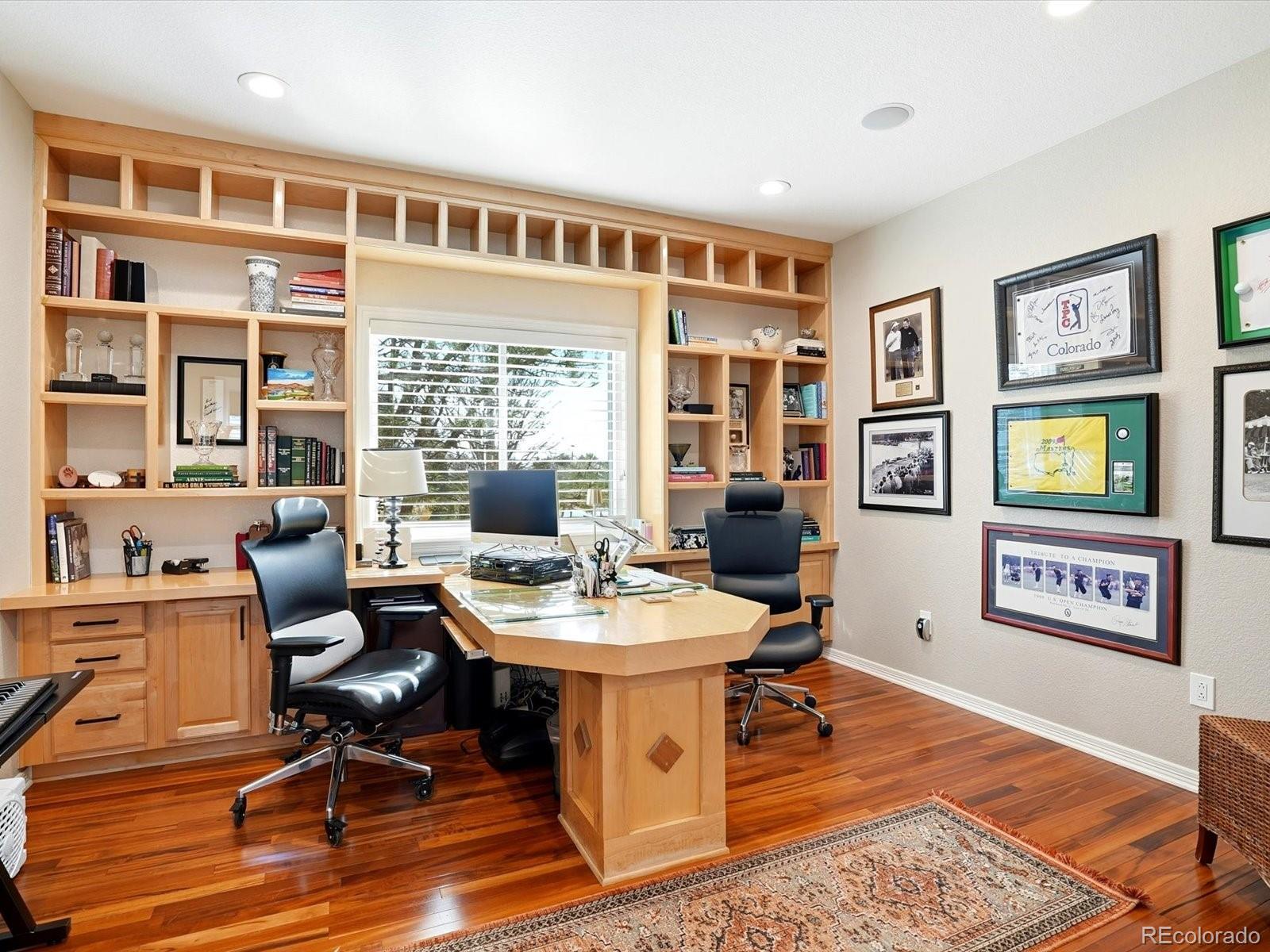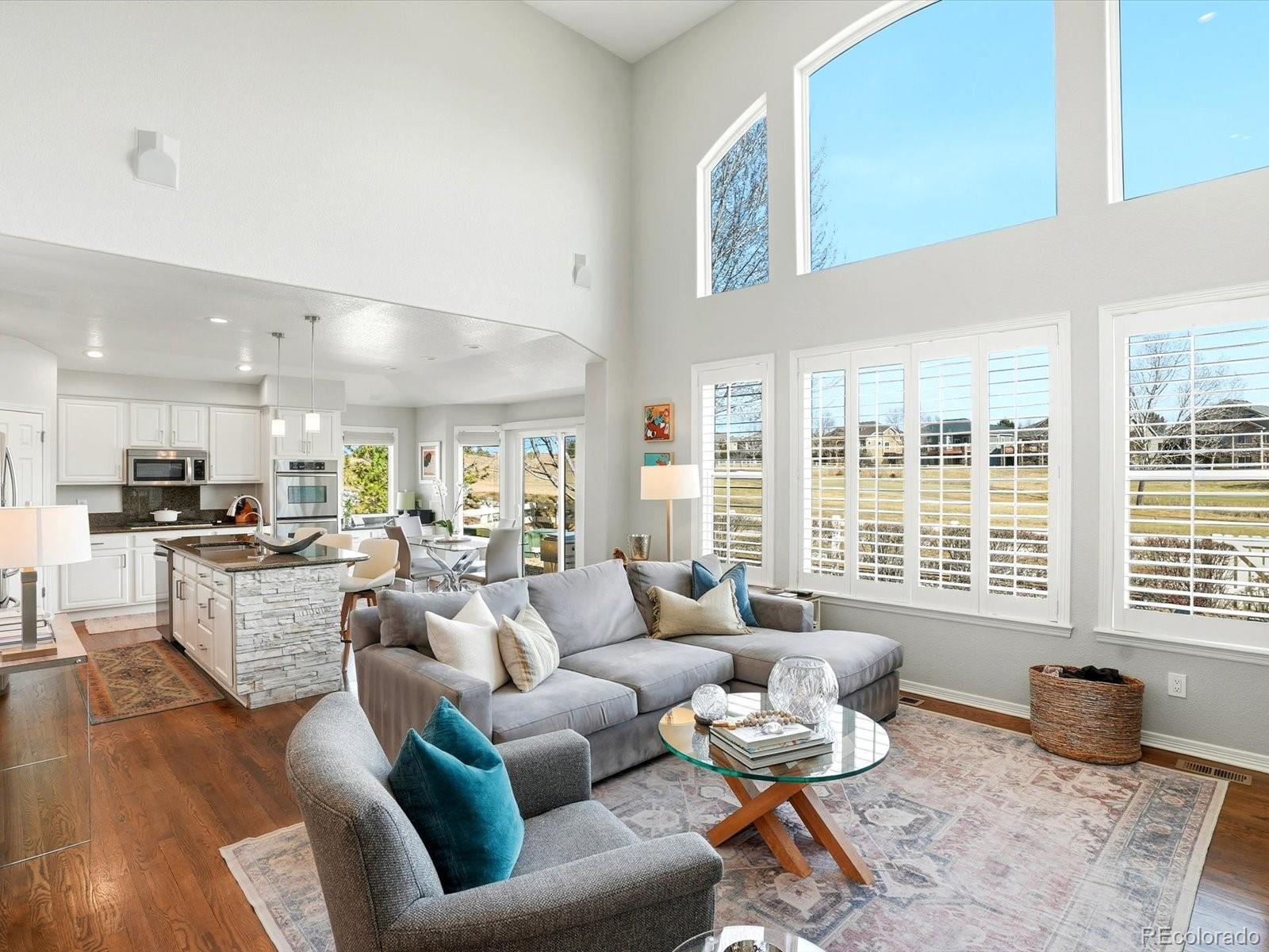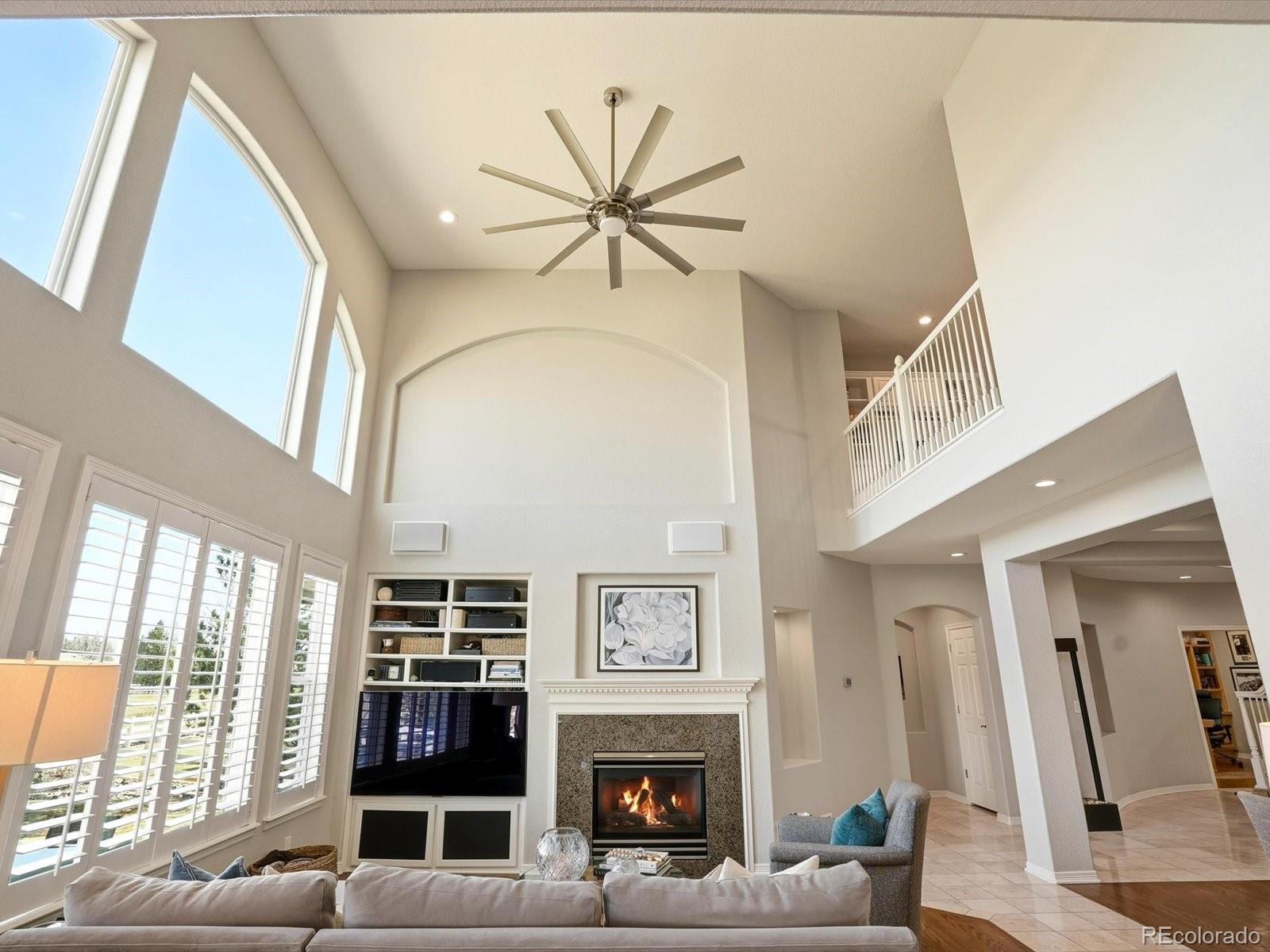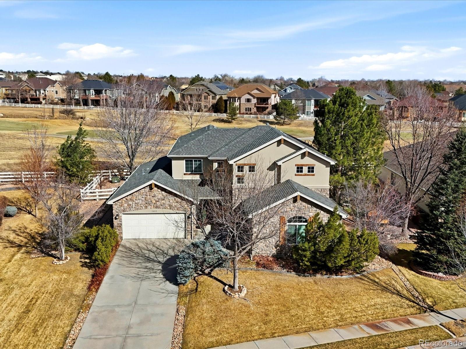 This is the hole in one you’ve been waiting for! Perfectly positioned on the 9th tee box of the Broadlands Golf Course, this stunning 6-bed, 5-bth luxury home delivers main-level living, sweeping golf course views & the kind of layout that truly lives well. From the moment you step through the front door, you’re greeted by a dramatic, light-filled grand foyer with soaring ceilings & an elegant curved staircase making an unforgettable first impression. The open-concept dining room anchors the main level & flows seamlessly into the vaulted living room, where you can gather & entertain. The chef’s kitchen is designed for both beauty and performance, featuring double ovens, a gas cooktop, granite countertops, generous prep space, & picturesque views of the course. Just off the main living areas, the spacious primary suite offers golf course views, a serene retreat feel & the convenience of main-floor living. A dedicated dual office w/ custom built-in shelving & desk creates the perfect work-from-home setup. Upstairs, a bright loft overlooks the main level & offers flexible space for reading, studying, or relaxing. Two bedrooms share a Jack-&-Jill bath, while a third enjoys its own private ensuite. The finished basement is built for entertaining. Host at the wet bar, rack up a game of pool, or settle in for movie night w/ the built-in projector & big-screen setup. When it’s time to unwind, escape to the commercial-grade steam room for a true spa experience at home. Car enthusiasts & hobbyists will appreciate an oversized two-car garage plus a separate single-car garage, providing space for vehicles, golf carts, or all your Colorado gear. End your day on the back porch, soaking in peaceful golf course serenity & those iconic Colorado sunsets. Enjoy Bluetooth Surround Sound in every room, garage & outside. All of this just minutes from top-rated schools, the Broadlands Clubhouse/Grill, & everyday conveniences.