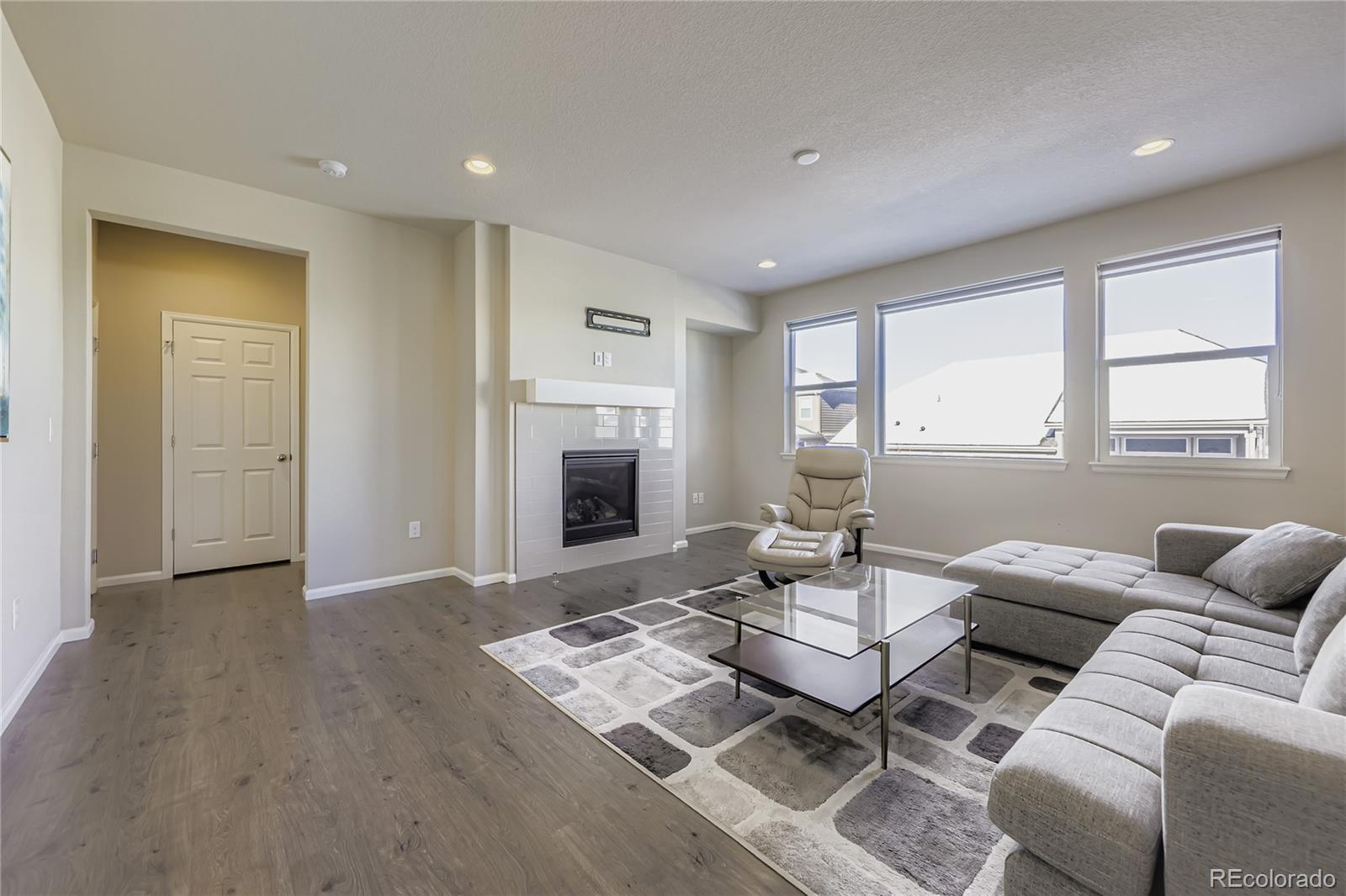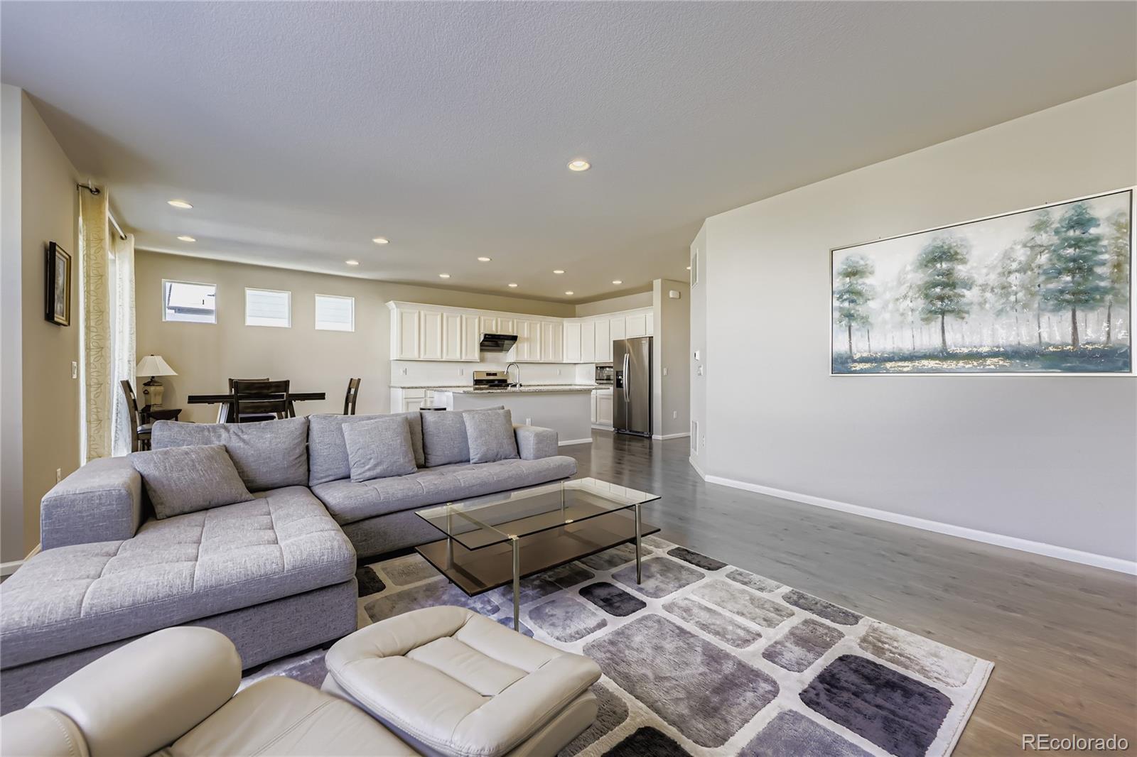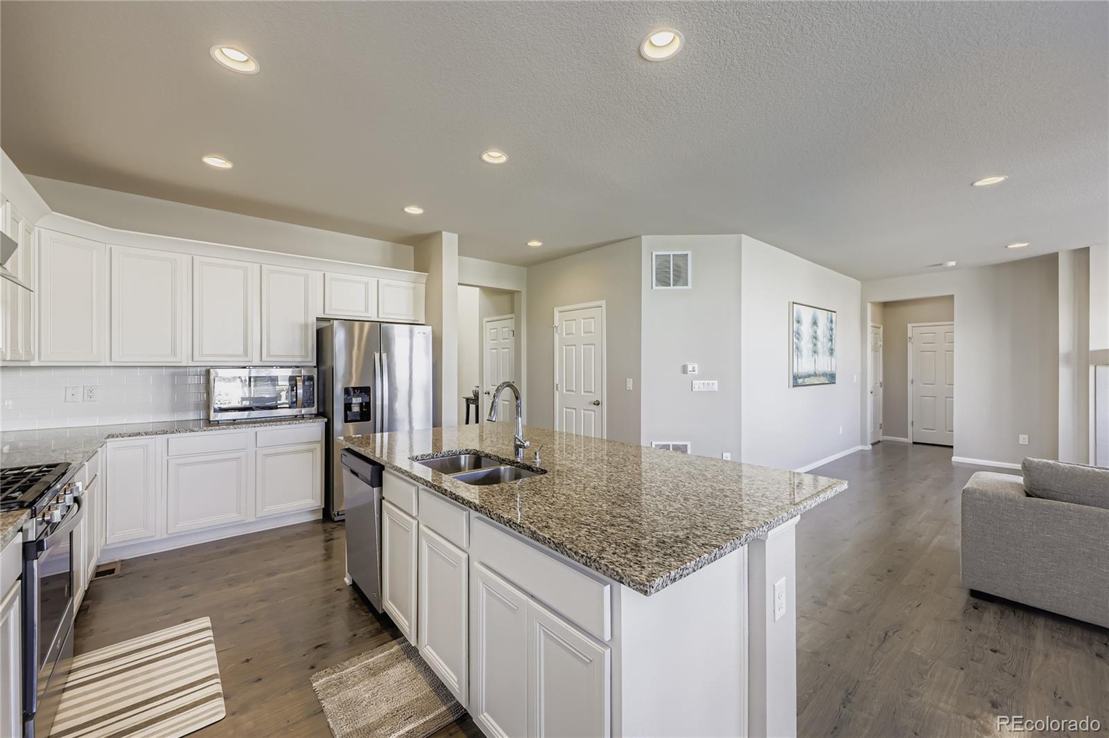Welcome to this stunning two-story residence in the heart of the highly sought-after Candelas community. A bright, open-concept layout creates a seamless flow for modern living. Thoughtfully positioned at the center of daily life, the chef’s kitchen features crisp white cabinetry, granite countertops, a gas range with upgraded venting, and a generous center island—perfect for gathering. Open to the casual dining area and great room, the space is ideal for entertaining and everyday living. The main level showcases vinyl flooring throughout and includes a spacious office with French doors. Upstairs, the expansive primary suite offers breathtaking mountain views and a luxurious five-piece bath with dual vanities, a soaking tub, walk-in shower, and a large walk-in closet. Three additional bedrooms, a full bathroom, and a convenient laundry room complete the second floor. A garden-level, unfinished basement provides endless potential for a gym, media room, storage, additional bedroom, or man cave. The oversized three-car split garage offers ample space. Outdoors, enjoy a low-maintenance composite covered deck off the kitchen and professionally designed landscaping. Quick possession available.