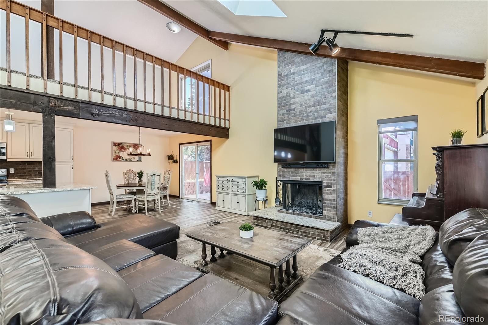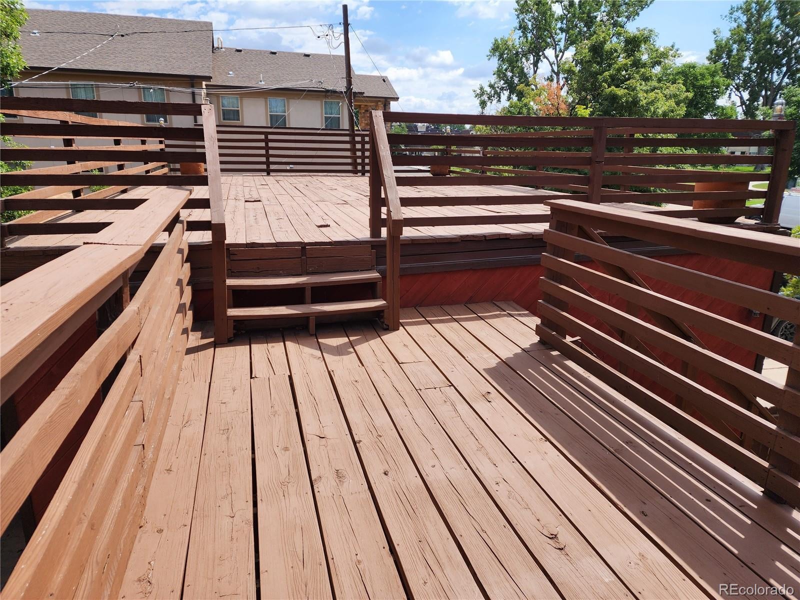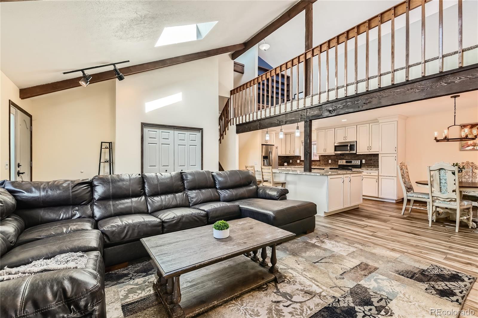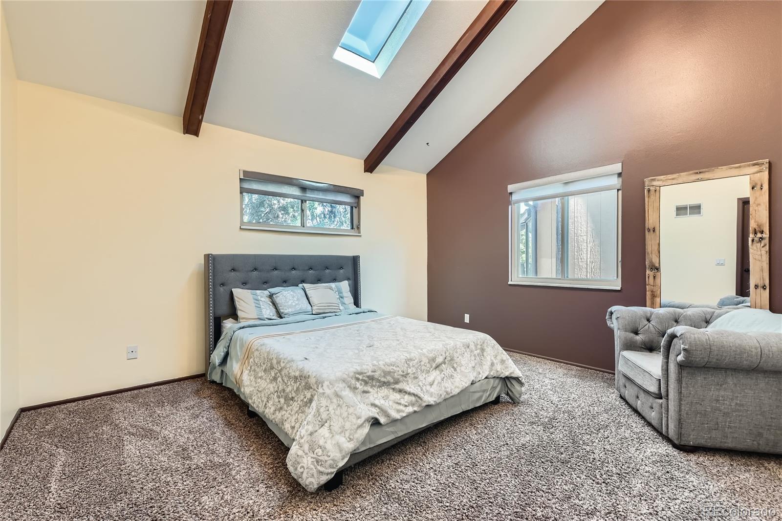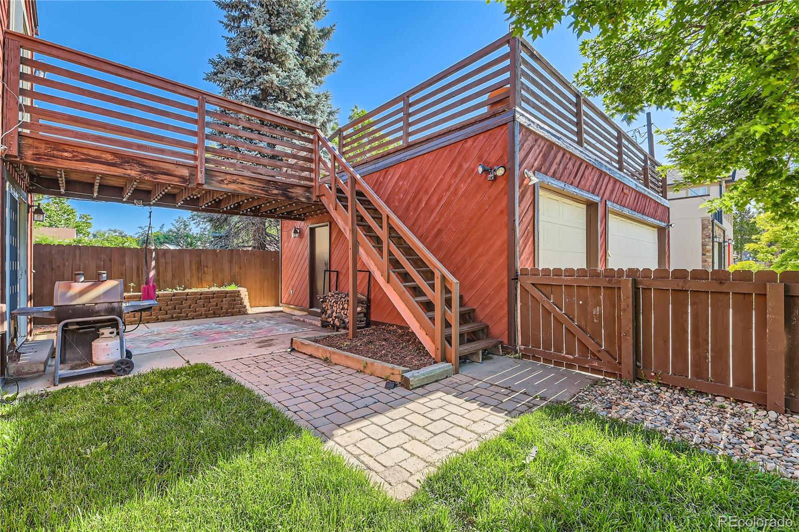 Beautiful park-side home with three-car garage & 800 square foot rooftop deck! As you step inside, you’ll notice the home boasts modern aesthetics & functional design. The open-concept main floor captivates with its vaulted ceilings, abundance of natural light, & stunning floor-to-ceiling wood burning fireplace. The seamless flow between the living, dining, kitchen & outdoor areas are perfect for both daily living & entertaining guests. The beautifully renovated kitchen has endless storage, a large island & expansive counter space for your culinary creations. On the home’s second level is the primary bedroom. A serene retreat with a private balcony that has park views to enjoy your morning coffee. The second bedroom is on the same level, as well as a freshly updated full bathroom with a deep soaking tub to relax in after a long day. Head downstairs & you’ll find the second full bath, laundry & a large rec-room which could easily be converted back to a third bedroom. The sunlit third level loft overlooks the living room, has built-ins & a patio door giving additional access to the rooftop deck. The space makes a great office, game room, art studio, gym or family room. Step outside for indoor-outdoor living at its best. The private, fully fenced yard has mature-trees, a patio perfect for grilling out, a fenced-in dog run, sprinkler systems & irrigated landscaping. The oversized three-car garage is complete with a workbench & ample storage. Next to the garage you’ll find the garden & follow the staircase above the garage to the party-worthy deck with spanning park views & additional privacy, providing the perfect setting for al fresco dining & entertaining. Easy access to I-25 & Cherry Creek bike path. You'll enjoy the convenience of being a short drive to DTC, Downtown Denver, Cherry Creek & within an hour's drive of various outdoor activities, including hiking, mtn biking, skiing, & year-round mountain adventures. This property is everything you’ve been looking for!
