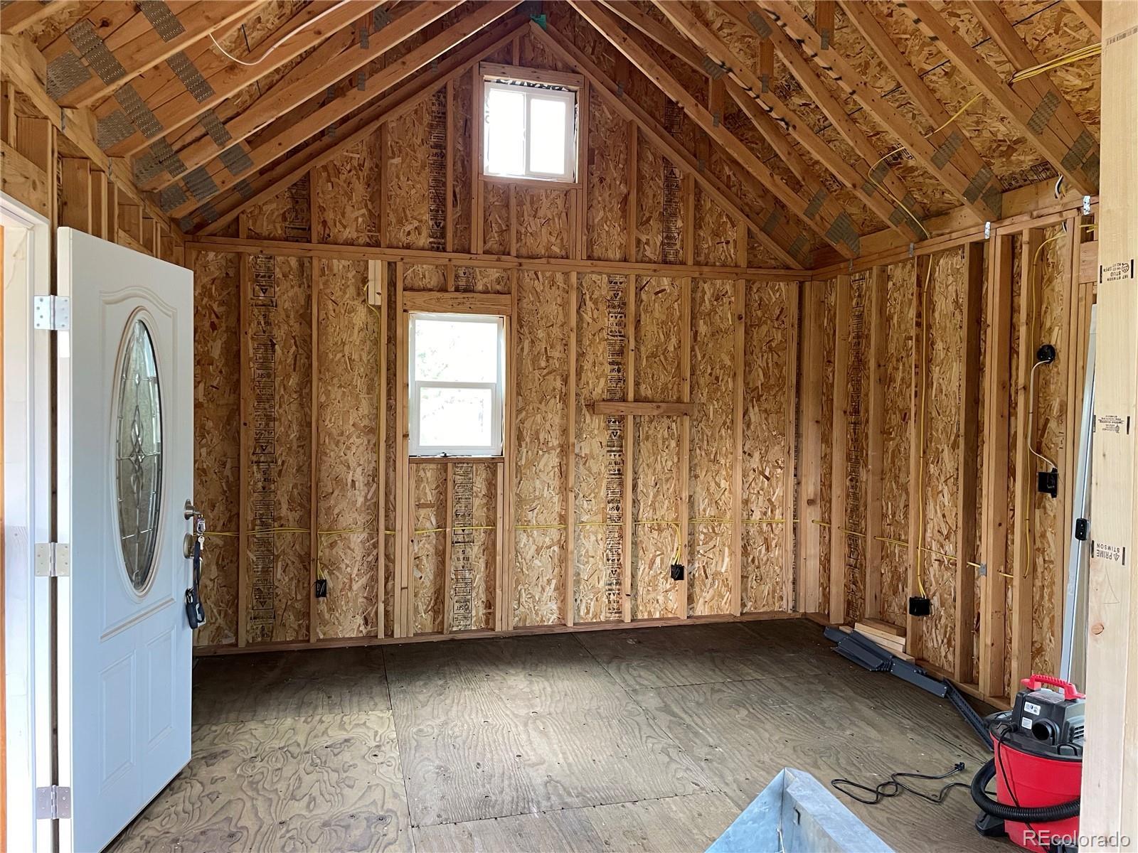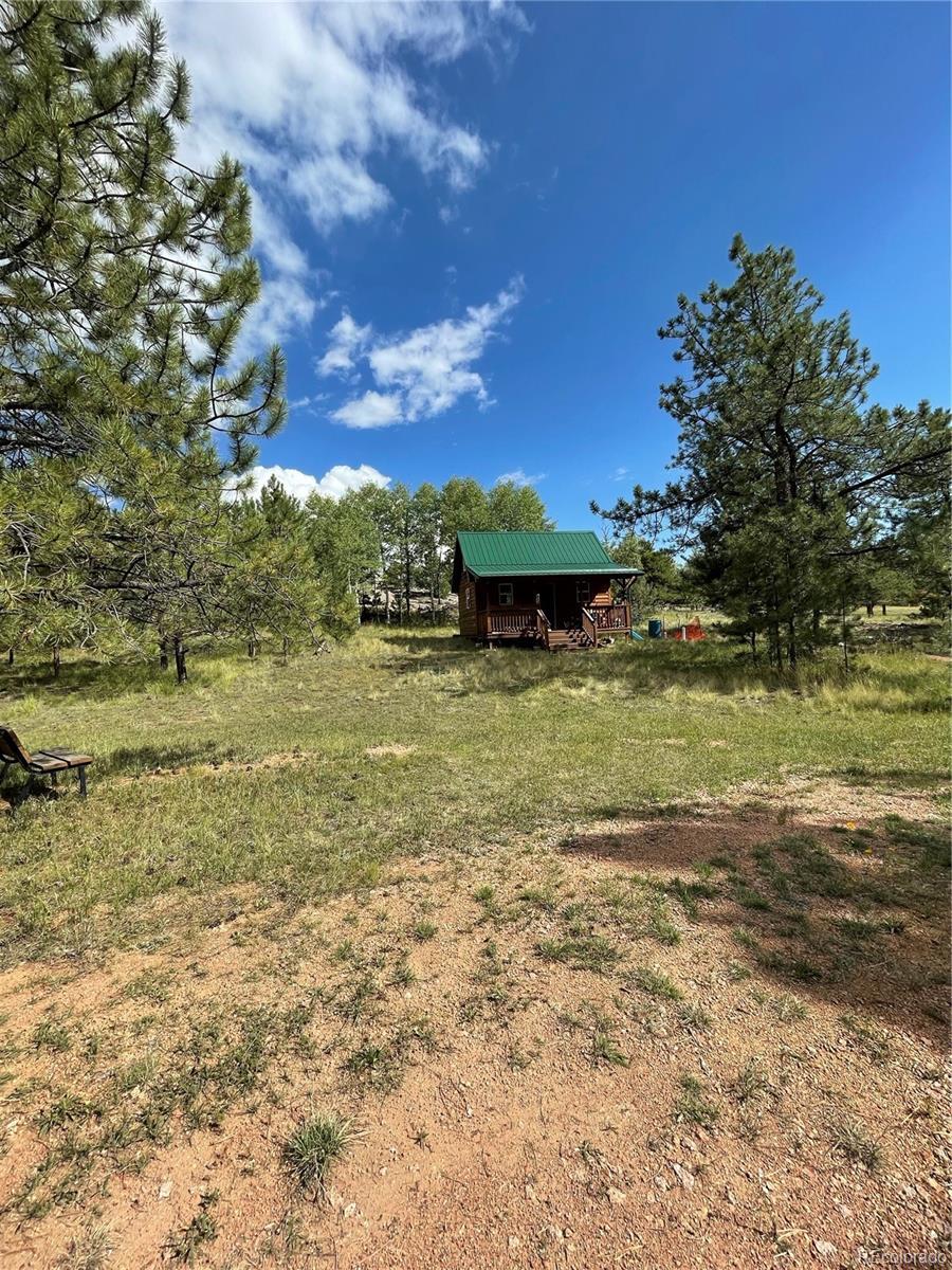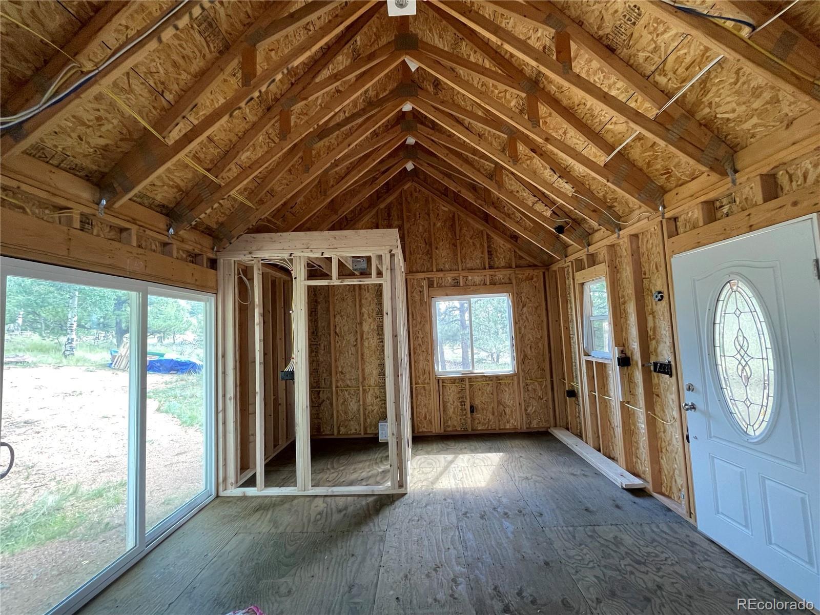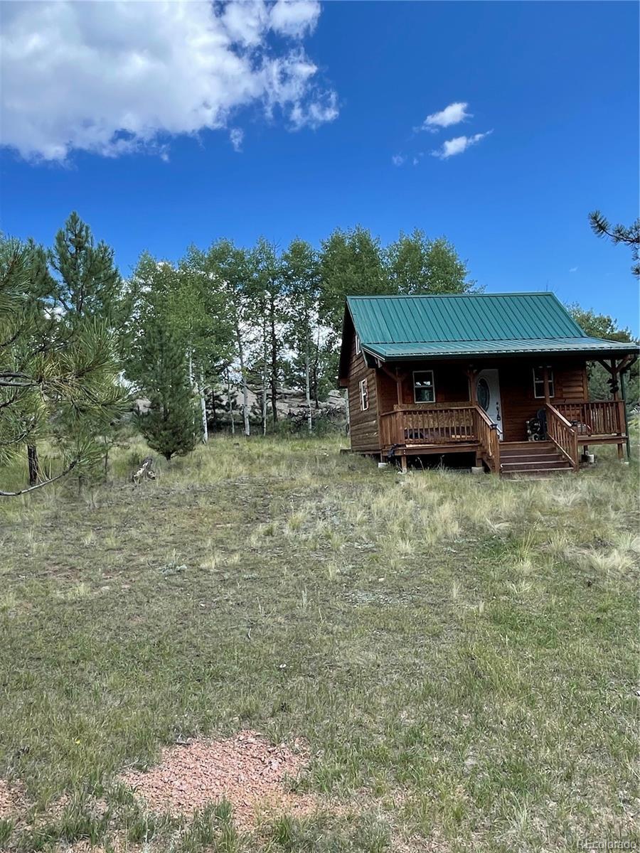 Rustic and Cozy, escape to this charming one-room cabin with classic log siding, a sturdy metal roof, and vinyl windows to keep the elements at bay. A welcoming covered front deck is the perfect spot to sip coffee and take in the beautiful views. Inside, the cabin is fully wired and ready for cove heaters and appliances, making it easy to finish to your taste or complete as your next project! With a permitted septic system already installed and power on site, the heavy lifting is done thus eliminating major infrastructure costs. Situated on a level lot with beautiful view, this property offers strong potential as a weekend retreat, short-term rental, or long-term investment. Enclosed area is set up for a water cistern and tankless water heater. Lots of building supplies still on site