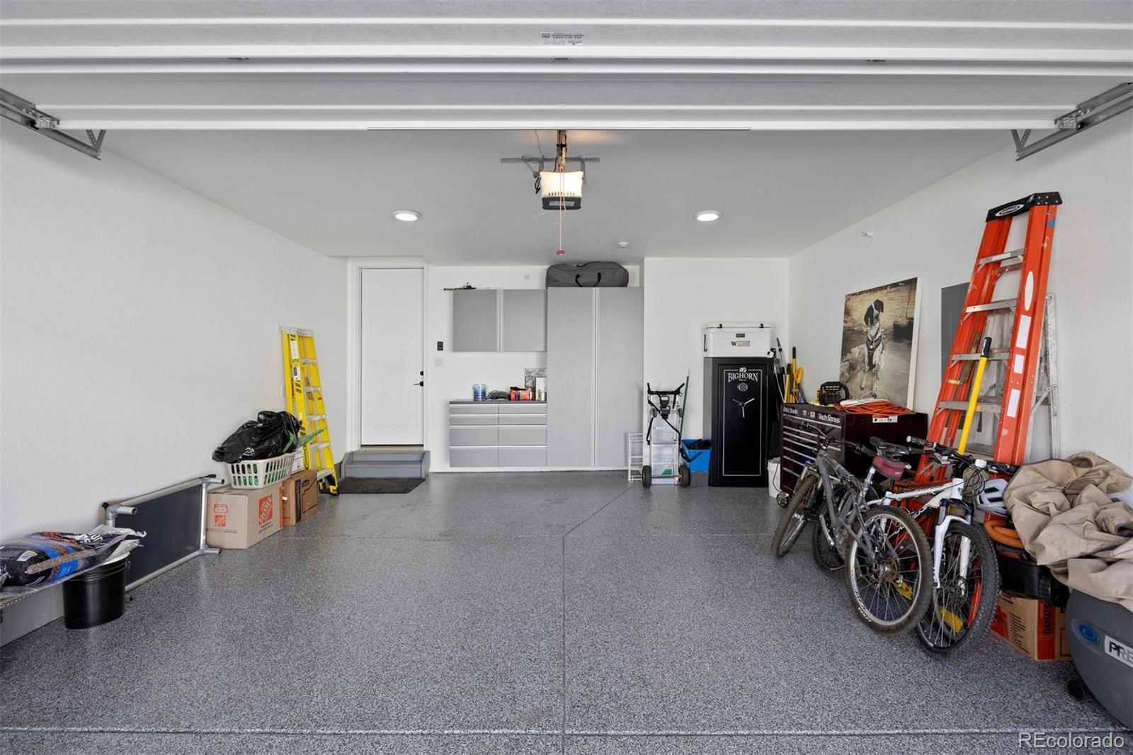 Concrete, Dry Walled, Finished Garage, Floor Coating, Insulated Garage, Smart Garage Door
