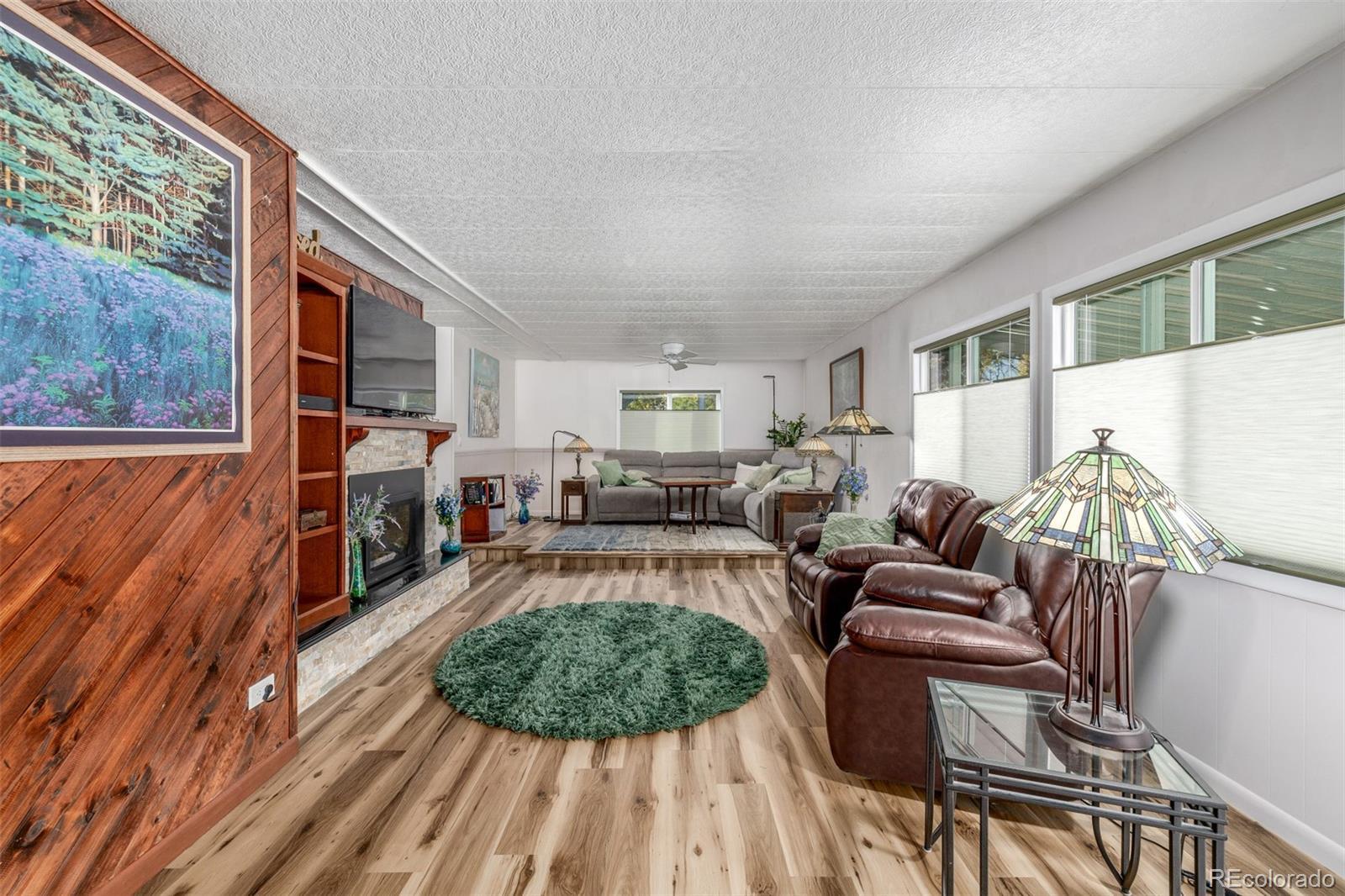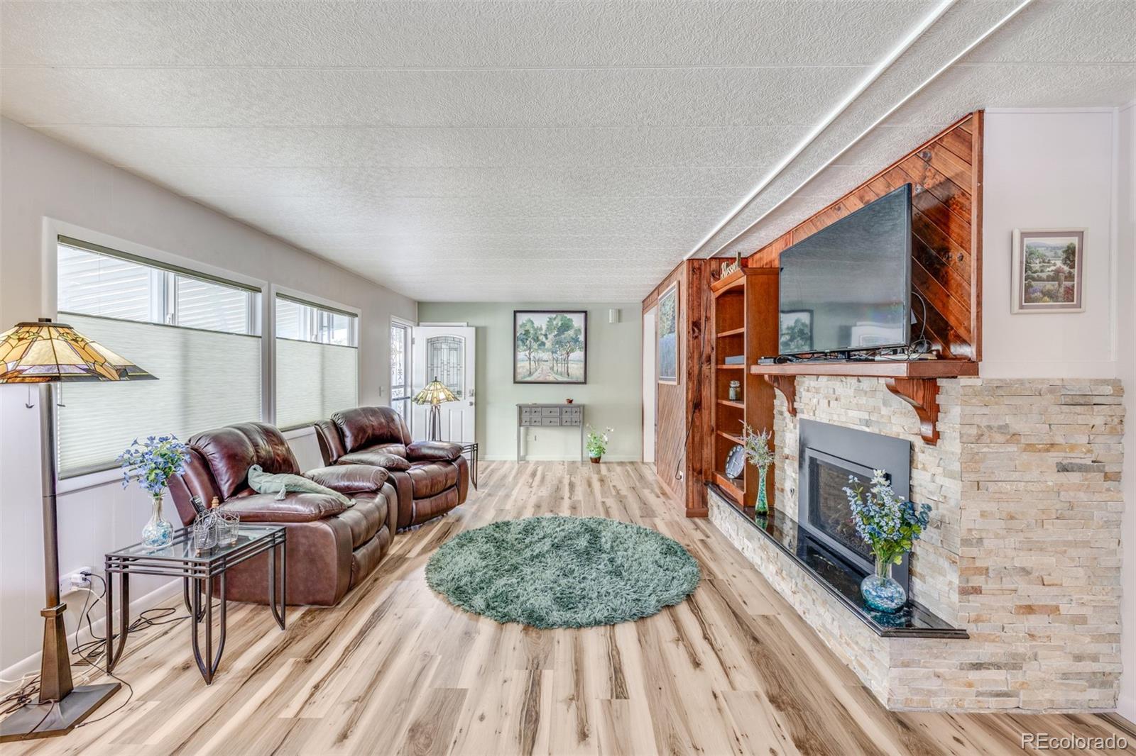 Welcome to this beautifully updated 3-bedroom, 2-bath home in the Wolhurst Lake community! From the moment you arrive, you’ll love the inviting curb appeal featuring a covered carport, easy-care landscaping, and a cozy front porch perfect for enjoying your morning coffee. Enter inside to discover a bright and open floor plan filled with natural light and fresh modern touches. The spacious living room offers a welcoming atmosphere with new luxury vinyl plank flooring, a custom accent wall, and a charming gas fireplace with natural stone surround plus there is a raised seating area. The adjoining dining area flows effortlessly into the kitchen—complete with updated countertops, custom decorative backsplash, and ample cabinetry for all your storage needs. Both bedrooms are generously sized, with the primary suite offering a private en suite and beautiful vanity cabinetry with linen storage. The second bath has been updated with tile floor to ceiling around the whole bathroom area with an oversized vanity and mirror for additional storage. Enjoy brand new windows, a new furnace and new hot water heater and a water purification system. A separate laundry room with extra storage adds to the home’s convenience and can double as a mudroom with access to the side of the home. Love your outdoor living area with the covered front and side patio or enjoy the large side and backyard. This home blends comfort, style, and functionality in one package. Enjoy your community amenities such as a clubhouse that has pool tables, a banquet hall with a commercial kitchen, a cozy bar lounge, a well-stocked library and a laundry room. Plus horseshoes, swimming pool, a community garden and access to the private lake, walking trails. Extra bonus, there is RV Parking! Divinely located just minutes from downtown Littleton, light rail access, parks, and shopping.