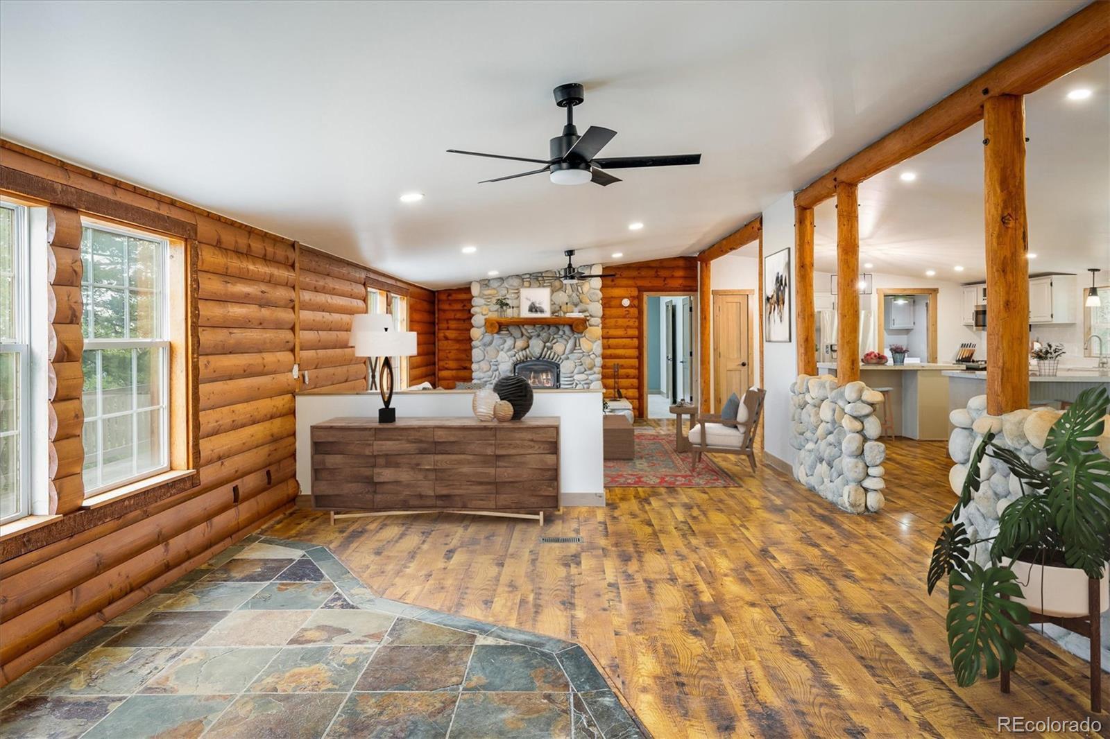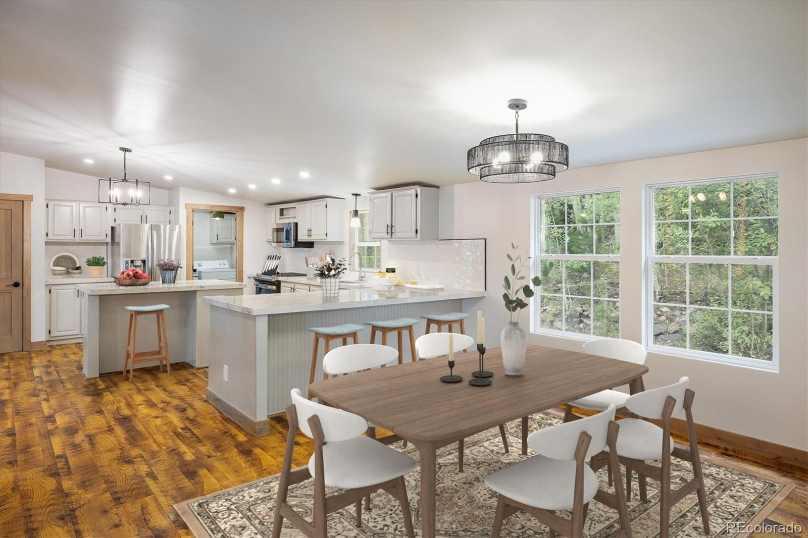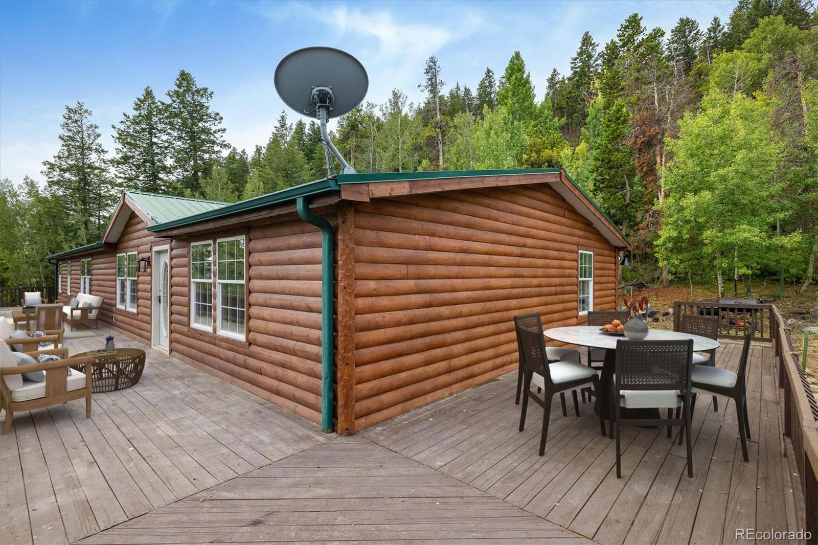 Colorado Mountain Home | This beautifully remodeled ranch-style home offers the best in one-level living, with breathtaking views and an unbeatable location just 30 minutes from Boulder, Golden, and Arvada. Every detail has been thoughtfully updated—new finishes throughout, blending mountain charm with modern comfort. Inside, the open floor plan continues across slate tile and wood floors, with vaulted ceilings, stone accents and a stunning river rock fireplace that invites cozy evenings on snowy days. Expansive windows frame forested hillsides, fiery sunsets, and dazzling night skies with stars that seem touchable. High-speed fiber optic internet can be connected to ensure you can work or connect seamlessly from your mountain retreat. The brand-new kitchen is a showstopper, featuring stainless appliances, bright countertops, a spacious island with counter seating and an open layout flowing effortlessly into the dining and family rooms—ideal for gatherings both large and small. The spacious primary bedroom offers a true retreat with a new 5-piece en-suite bath. Relax in the luxurious soaking tub and watch as the moon rises above the treetops. Step outside onto the wraparound deck—perfect for dining, entertaining or simply soaking in panoramic views of the Continental Divide, Longs Peak, Eldorado Canyon and twinkling city lights. Adventure is just minutes away: hike in Golden Gate Canyon State Park, paddle at Gross Reservoir, snowshoe at Walker Ranch or hit the slopes at Eldora Ski Resort. Come live where you play—this mountain retreat offers the perfect blend of serenity, style and convenience.