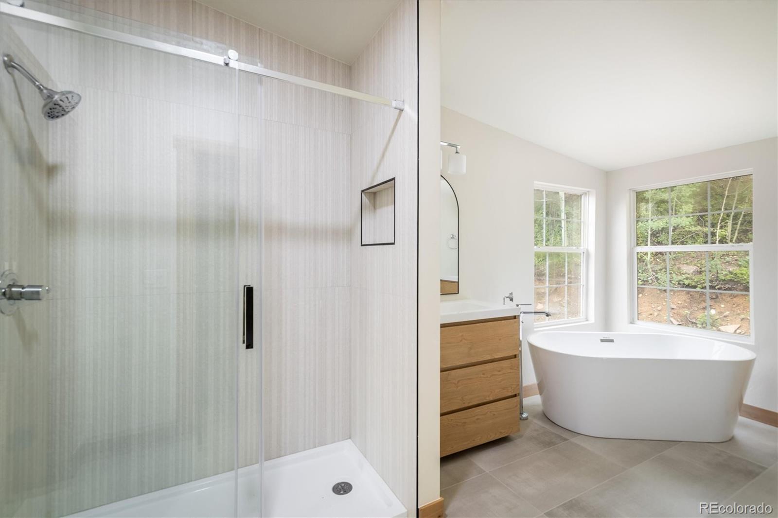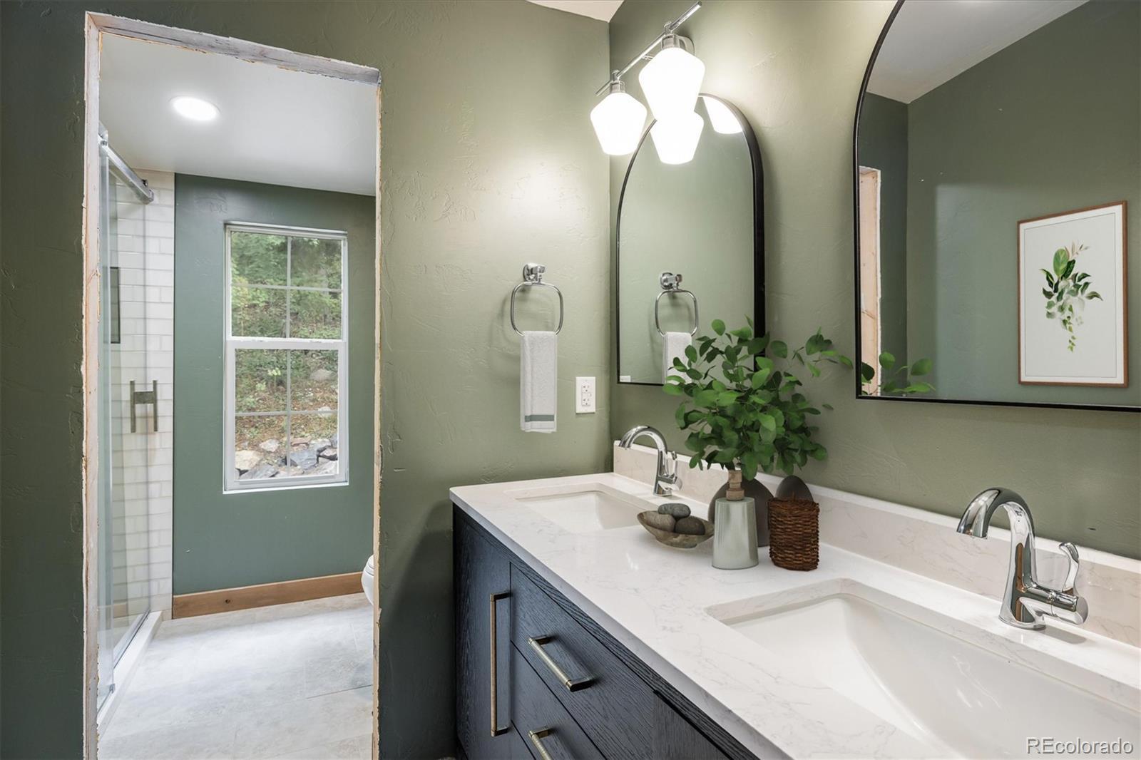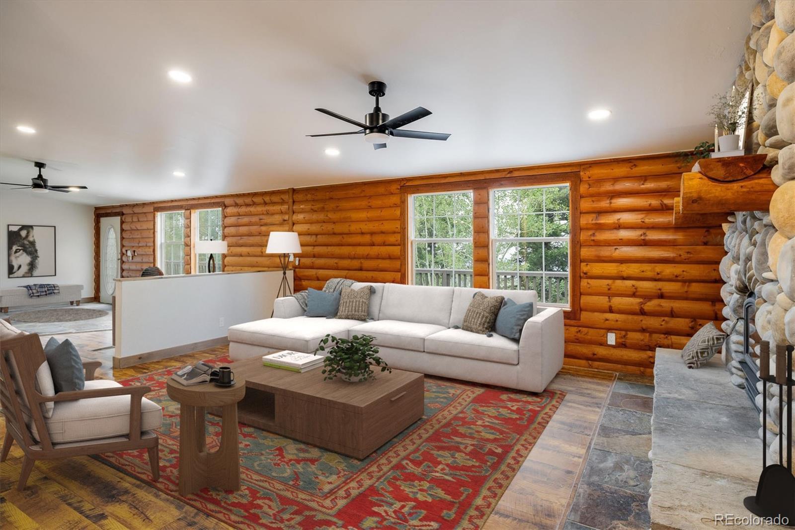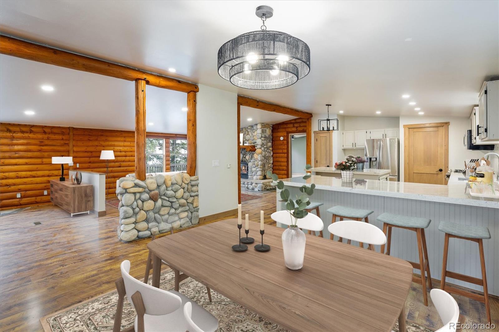 Colorado Mountain Home | This beautifully remodeled ranch-style home offers the best in one-level living, with breathtaking views and an unbeatable location just 30 minutes from Boulder, Golden, and Arvada. Every detail has been thoughtfully updated—new finishes throughout, blending mountain charm with modern comfort. Inside, the open floor plan continues across slate tile and wood floors, with vaulted ceilings, stone accents and a stunning river rock fireplace that invites cozy evenings on snowy days. Expansive windows frame forested hillsides, fiery sunsets, and dazzling night skies with stars that seem touchable. High-speed fiber optic internet can be connected to ensure you can work or connect seamlessly from your mountain retreat. The brand-new kitchen is a showstopper, featuring stainless appliances, bright countertops, a spacious island with counter seating and an open layout flowing effortlessly into the dining and family rooms—ideal for gatherings both large and small. The spacious primary bedroom offers a true retreat with a new 5-piece en-suite bath. Relax in the luxurious soaking tub and watch as the moon rises above the treetops. Step outside onto the wraparound deck—perfect for dining, entertaining or simply soaking in panoramic views of the Continental Divide, Longs Peak, Eldorado Canyon and twinkling city lights. Adventure is just minutes away: hike in Golden Gate Canyon State Park, paddle at Gross Reservoir, snowshoe at Walker Ranch or hit the slopes at Eldora Ski Resort. Come live where you play—this mountain retreat offers the perfect blend of serenity, style and convenience.