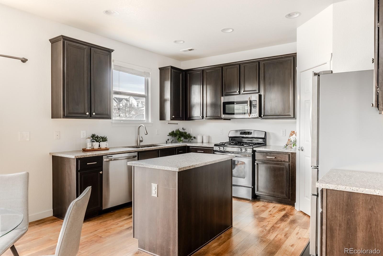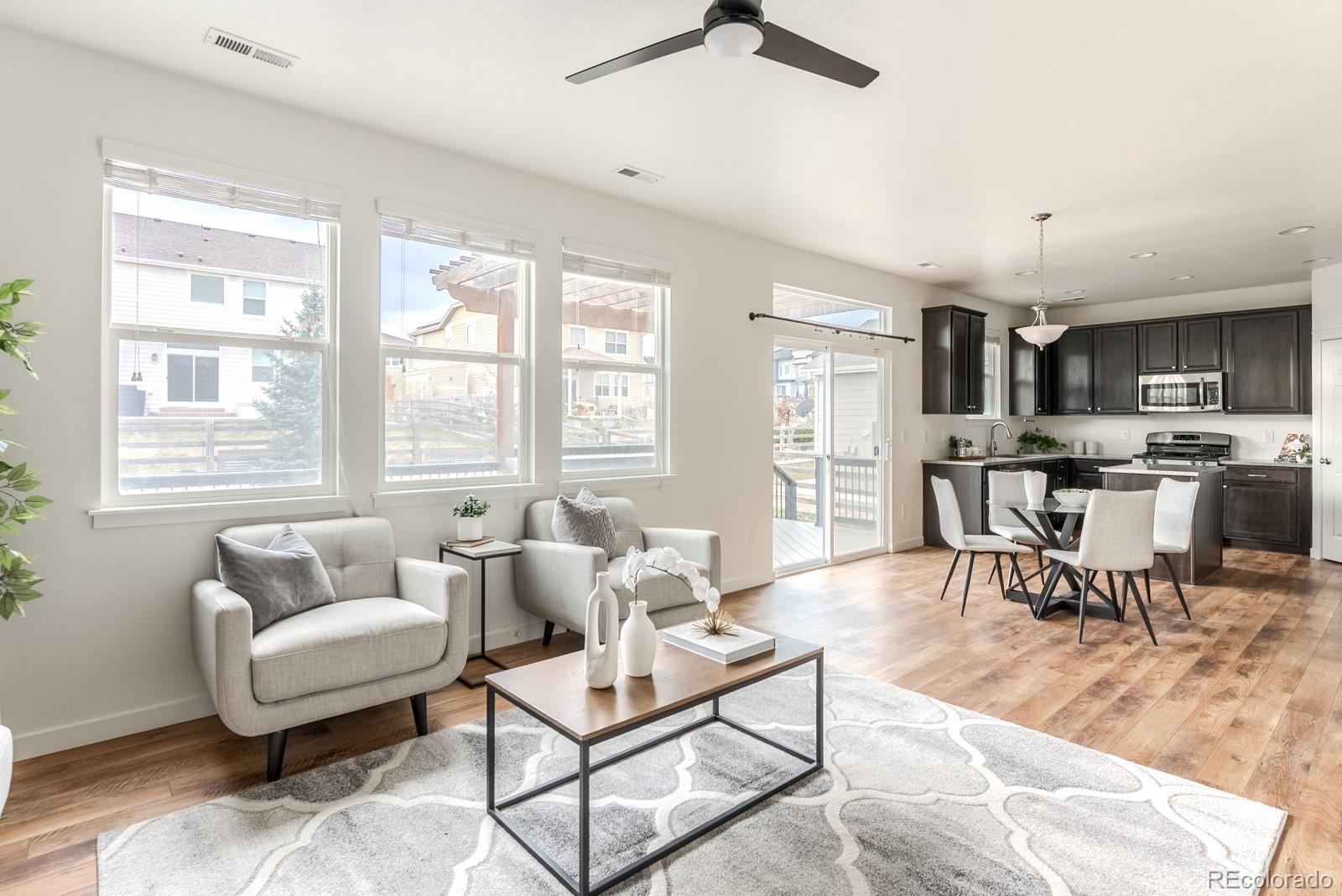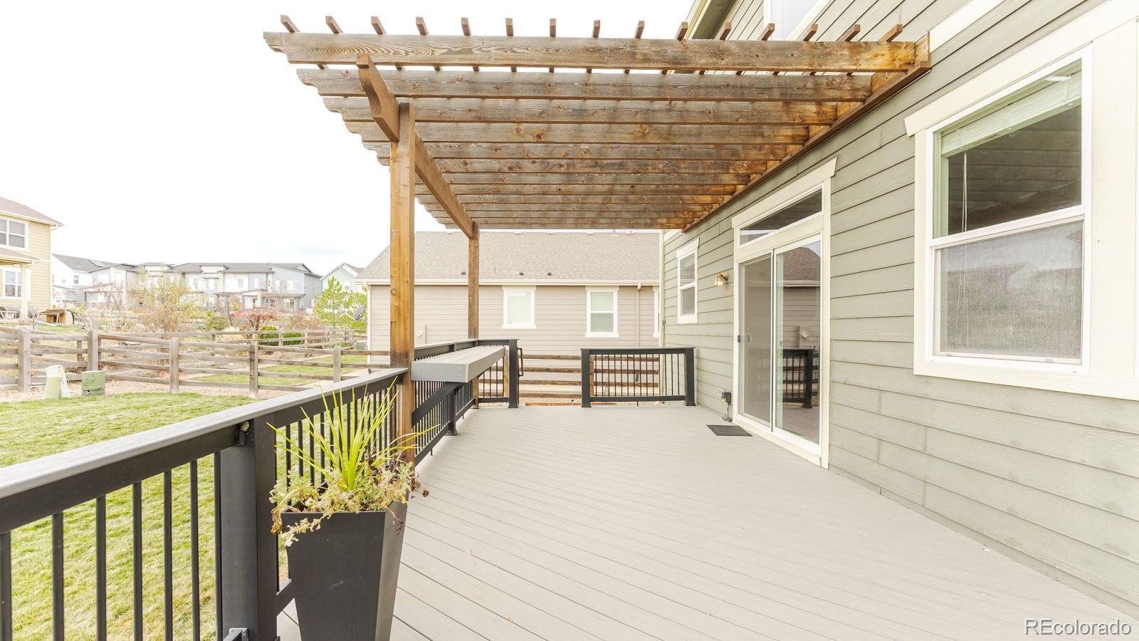 Balancing style with functionality, this freshly updated home captures the essence of Colorado living. Set in the coveted Whisper Creek community—where mountain vistas, meandering trails and neighborhood camaraderie define the lifestyle—it offers an ideal blend of space, design and value in one of Arvada’s most sought-after enclaves. With stone accents, timeless hues and a front porch framing spectacular Flatirons views, this home is as captivating from the street as it is livable within. The light-filled main level unfolds in an open plan designed for connection and flow. Wide-plank wood-style floors lend warmth, while fresh paint and generous windows create a bright, modern aesthetic. Where daily life naturally gathers, the kitchen unites beauty and function with expansive granite counters and gleaming stainless appliances that set a sophisticated tone, while abundant cabinetry and a center island anchor the space with purpose and poise. The adjoining dining and living areas allow cooking, conversation and laughter to move easily from one space to the next, while a versatile front room adapts beautifully as a formal dining area, home office or relaxed lounge. Upstairs, the thoughtful floor plan with brand new carpet places all four bedrooms and a spacious loft on one level—a rare and sought-after layout that enhances livability, keeping everyone close while allowing each space to feel personal and private. The primary suite is generous in scale with a luxurious bath featuring dual sinks, a soaking tub and glass-enclosed shower. An upstairs laundry adds convenience right where it’s needed most. Outdoors, a full-width deck extends the living space beneath a pergola that filters sunlight across a clever drink bar—perfect for gatherings that linger into golden hour. A lush lawn beyond invites play, pets and summer evenings under the stars. Whisper Creek offers top-rated schools, a pool, clubhouse, courts and walkable access to Starbucks, restaurants and conveniences.