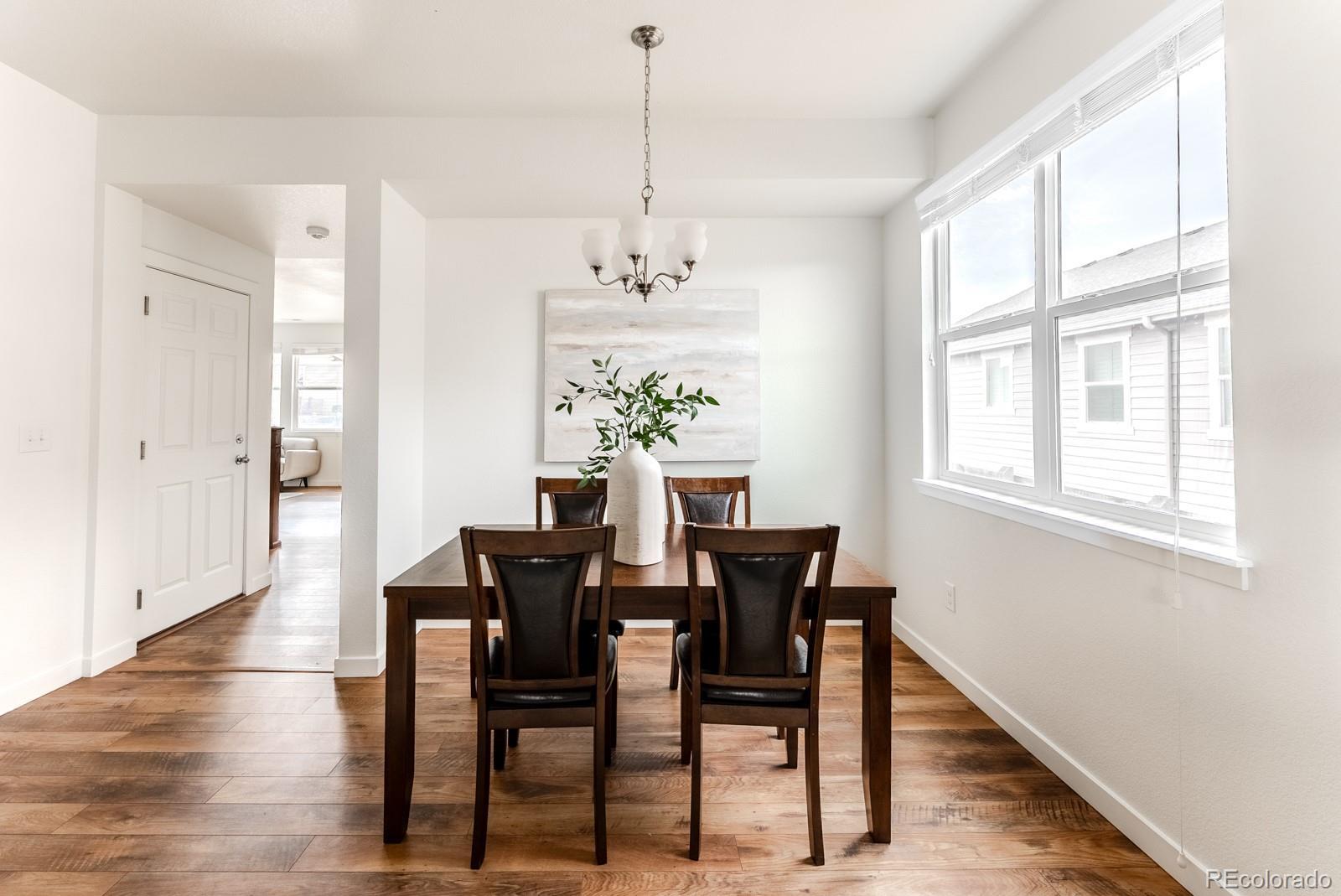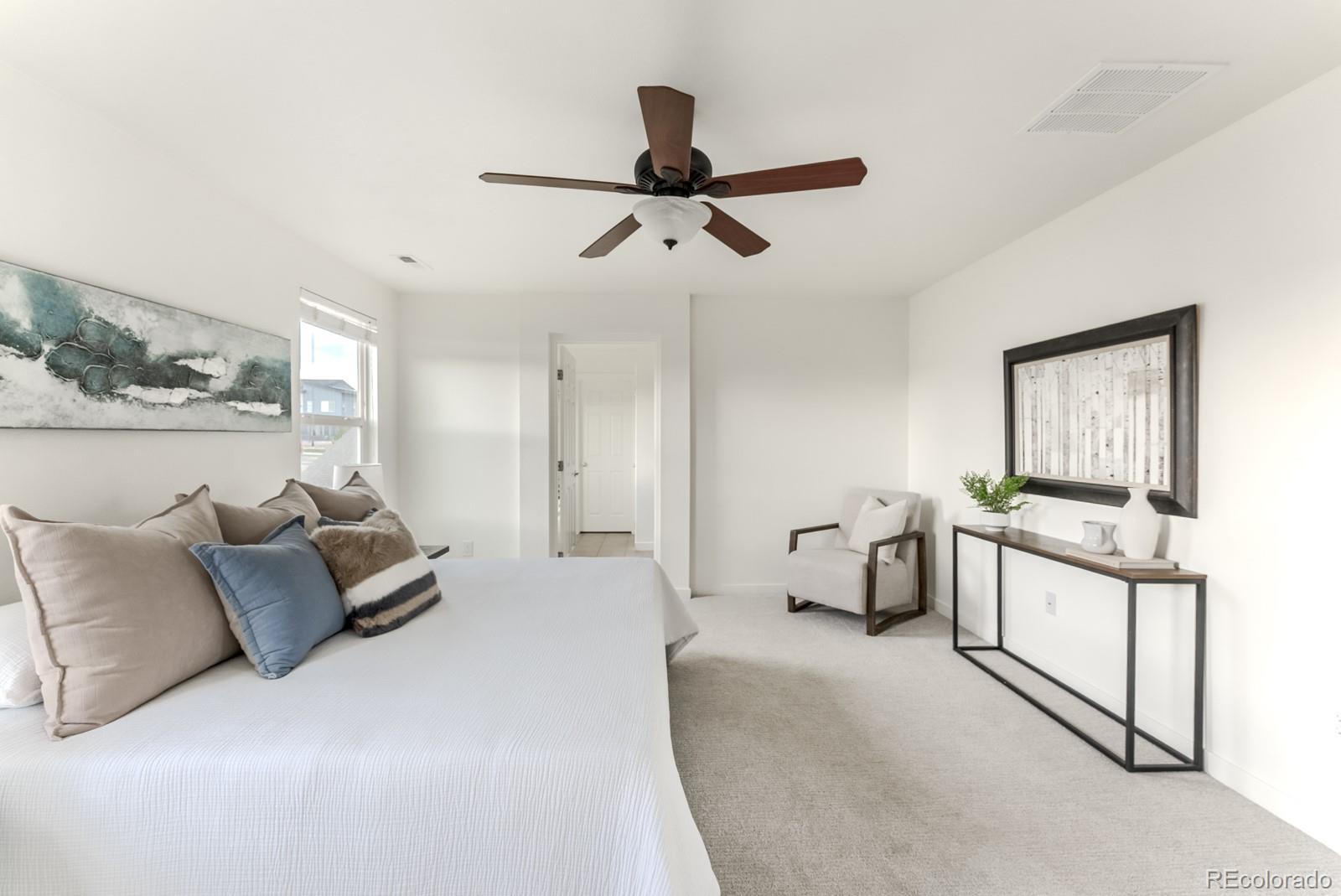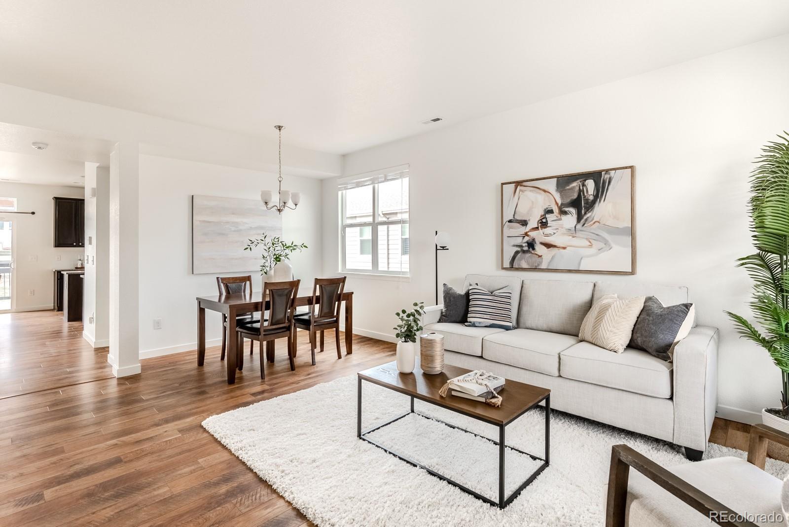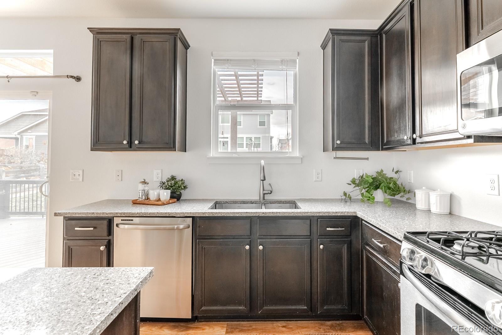 Balancing style with functionality, this freshly updated home captures the essence of Colorado living. Set in the coveted Whisper Creek community—where mountain vistas, meandering trails and neighborhood camaraderie define the lifestyle—it offers an ideal blend of space, design and value in one of Arvada’s most sought-after enclaves. With stone accents, timeless hues and a front porch framing spectacular Flatirons views, this home is as captivating from the street as it is livable within. The light-filled main level unfolds in an open plan designed for connection and flow. Wide-plank wood-style floors lend warmth, while fresh paint and generous windows create a bright, modern aesthetic. Where daily life naturally gathers, the kitchen unites beauty and function with expansive granite counters and gleaming stainless appliances that set a sophisticated tone, while abundant cabinetry and a center island anchor the space with purpose and poise. The adjoining dining and living areas allow cooking, conversation and laughter to move easily from one space to the next, while a versatile front room adapts beautifully as a formal dining area, home office or relaxed lounge. Upstairs, the thoughtful floor plan with brand new carpet places all four bedrooms and a spacious loft on one level—a rare and sought-after layout that enhances livability, keeping everyone close while allowing each space to feel personal and private. The primary suite is generous in scale with a luxurious bath featuring dual sinks, a soaking tub and glass-enclosed shower. An upstairs laundry adds convenience right where it’s needed most. Outdoors, a full-width deck extends the living space beneath a pergola that filters sunlight across a clever drink bar—perfect for gatherings that linger into golden hour. A lush lawn beyond invites play, pets and summer evenings under the stars. Whisper Creek offers top-rated schools, a pool, clubhouse, courts and walkable access to Starbucks, restaurants and conveniences.