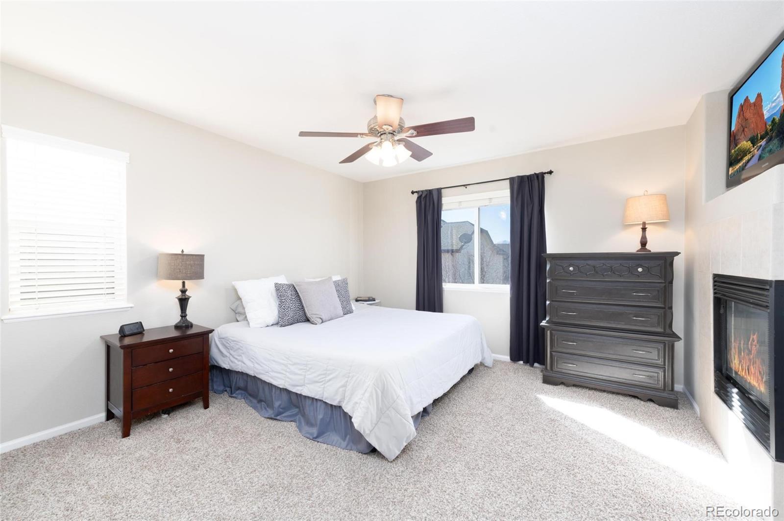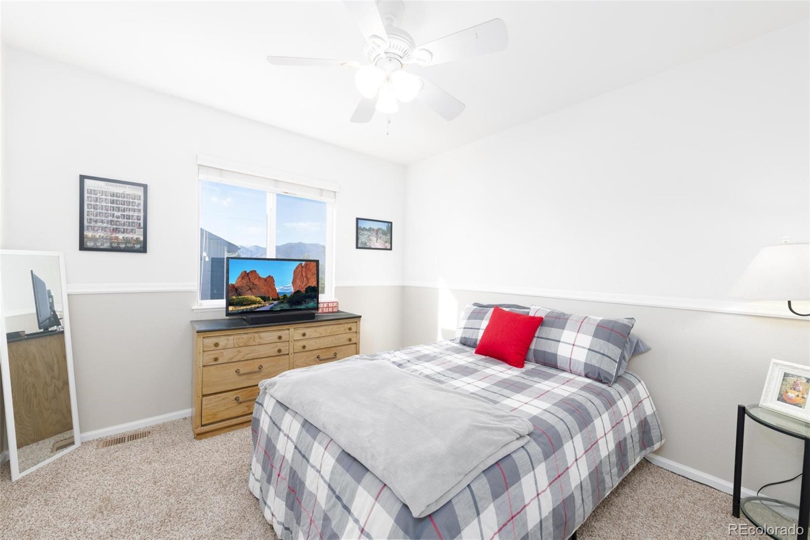 Located next to open space and just minutes from schools, shopping, parks, and easy access to I-25, this beautifully updated home offers the perfect blend of comfort and convenience. Featuring 3 bedrooms, 3 baths, and a two-car garage with Pikes Peak and mountain views, this property is designed for both everyday living and effortless entertaining. The main level showcases an open great-room layout that includes the kitchen, dining area, and living room. Upstairs, the expansive primary suite offers a cozy sitting area separated by a 3-way fireplace and a luxurious 5-piece bath with double vanities, a soaking tub, and a free-standing shower. Two additional bedrooms and a full bath complete the upper level. The HOA covers lawn care, snow removal, and trash service, giving you more time to enjoy the miles of nearby hiking and biking trails less than half a block away. Ideally situated near shopping, restaurants, the Air Force Academy, and major commuting routes, this home provides exceptional convenience in a highly desirable location.