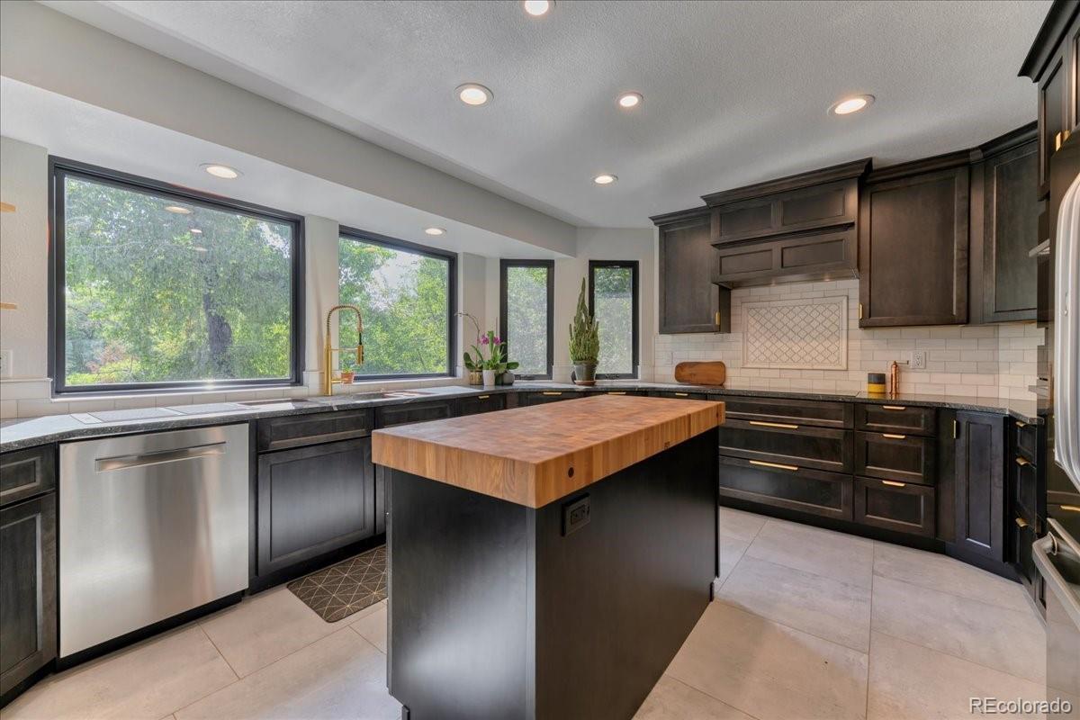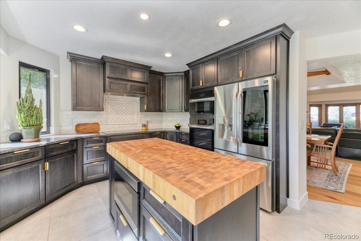 This Colorado Contemporary, in coveted Trophy Club, celebrates bold design while boasting modern updates that make it move in ready. The home is cozy yet expansive, flows beautifully, feels incredibly open, with a ton of natural light. Inside, you’ll find 5 beds, 2 offices, 3 living spaces, and 3.5 baths, including a primary suite with private balcony, vaulted ceilings, soaking tub, and Toto Integrated Bidet Toilets. The sunken living room sets the stage for dramatic entrances, while new coordinating light fixtures, fresh interior paint, and Robbins Armor Wood flooring adding real wood warmth & pet-proof durability. The kitchen is the crown jewel. Fully renovated in 2023, it showcases granite counters, a custom marble backsplash, Boos butcher block island, and all smart appliances including Miele combi and steam double ovens, induction cooktop, and Sharp drawer microwave. Soft close cabinetry by Coggin Brothers provides ample storage, complemented by additional matching cabinetry in the laundry/mudroom. This chef’s kitchen blends high style with thoughtful function at every turn. Additional upgrades include a new roof and 6” gutters (2025), new basement bathroom (2020), and smart features like Lutron Caséta switches & garage door opener. Energy conscious buyers will love the Breezair cooling system, a whole house fan, and efficient smart sprinkler & drip irrigation systems. Ting fiber internet provides 1 GB up and down. Outdoor living shines with a beautiful deck off the kitchen/family room shaded by mature trees, with an additional private balcony off the main floor office, and a walkout basement w/ patio. The home also features a new front walkway, professional landscaping, and drip lines to keep it lush. This home is truly one of a kind, boldly 80s yet thoughtfully modernized, ready to impress at every angle.