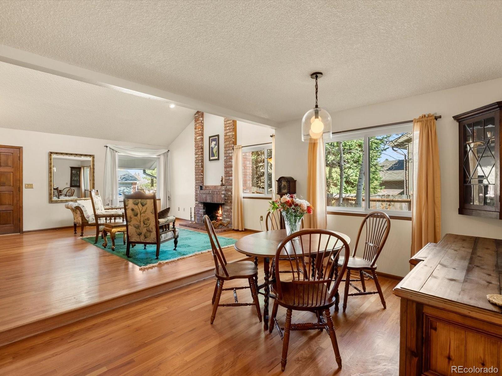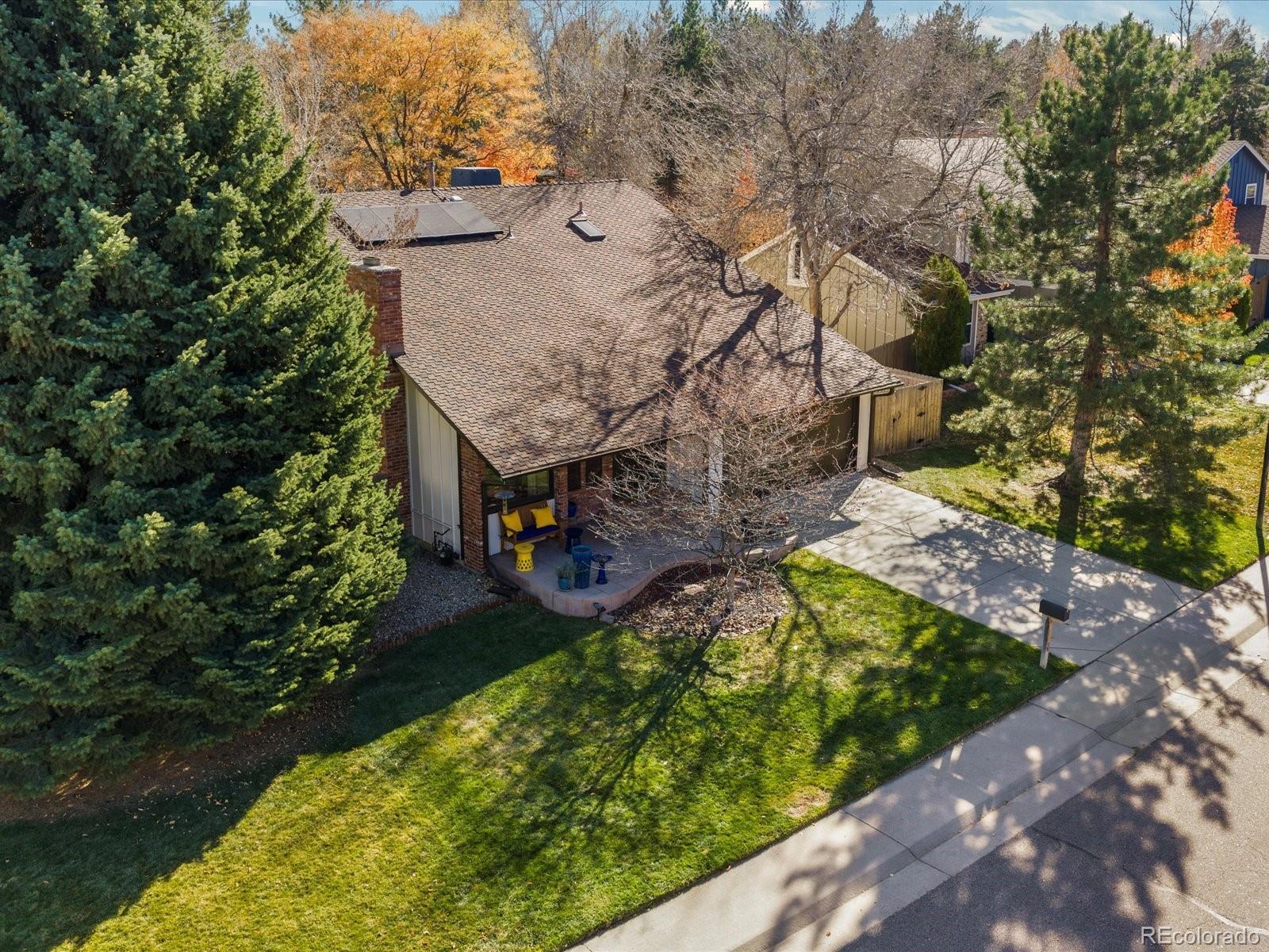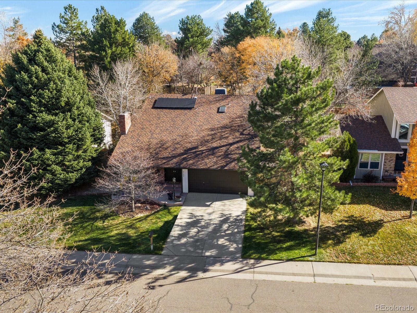 Welcome to 6166 E Mineral Place! This well-maintained Foxridge home brings together the feel of Colorado’s outdoors with a versatile floor plan offering true main-floor living and everyday functionality. This 4-bedroom, 3-bath home has been thoughtfully updated with newer windows, a Class 4 roof, exterior paint, a newer evaporative cooler, and fully paid-off solar panels that help keep monthly bills low. Inside, vaulted ceilings, solid oak floors, and a two-story brick fireplace with a gas insert create a warm center to the main living and dining area. The eat-in kitchen features solid maple cabinets, granite countertops, black appliances, a movable island, and it opens directly to the backyard through a set of beautiful French doors. The main-floor primary suite is a rare find in this neighborhood and offers hardwood floors, a custom walk-in closet, an updated 3/4 bath, and French doors that open to the garden and hot tub. An open loft upstairs adds a great flex space for work or play, and the fully finished basement provides an additional living area along with generous storage and a large laundry room. The backyard is one you have to see, with mature landscaping, multiple patio areas, and a mossy water feature that brings a little mountain feel to the space. The outdoor kitchen includes a built-in grill, a wood-fired pizza oven, and a gas chiminea, and the hot tub stays. A powered workshop shed offers extra room for projects or storage. With close access to Park Meadows, DTC, I-25, and convenient routes to Downtown and DIA, this home delivers comfort, flexibility, and an outdoor setting that’s easy to enjoy year-round.